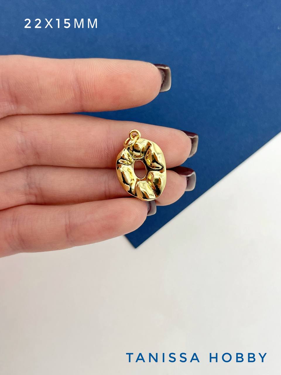 Подвеска овал мятый металл, 22х15мм, позолота, А334