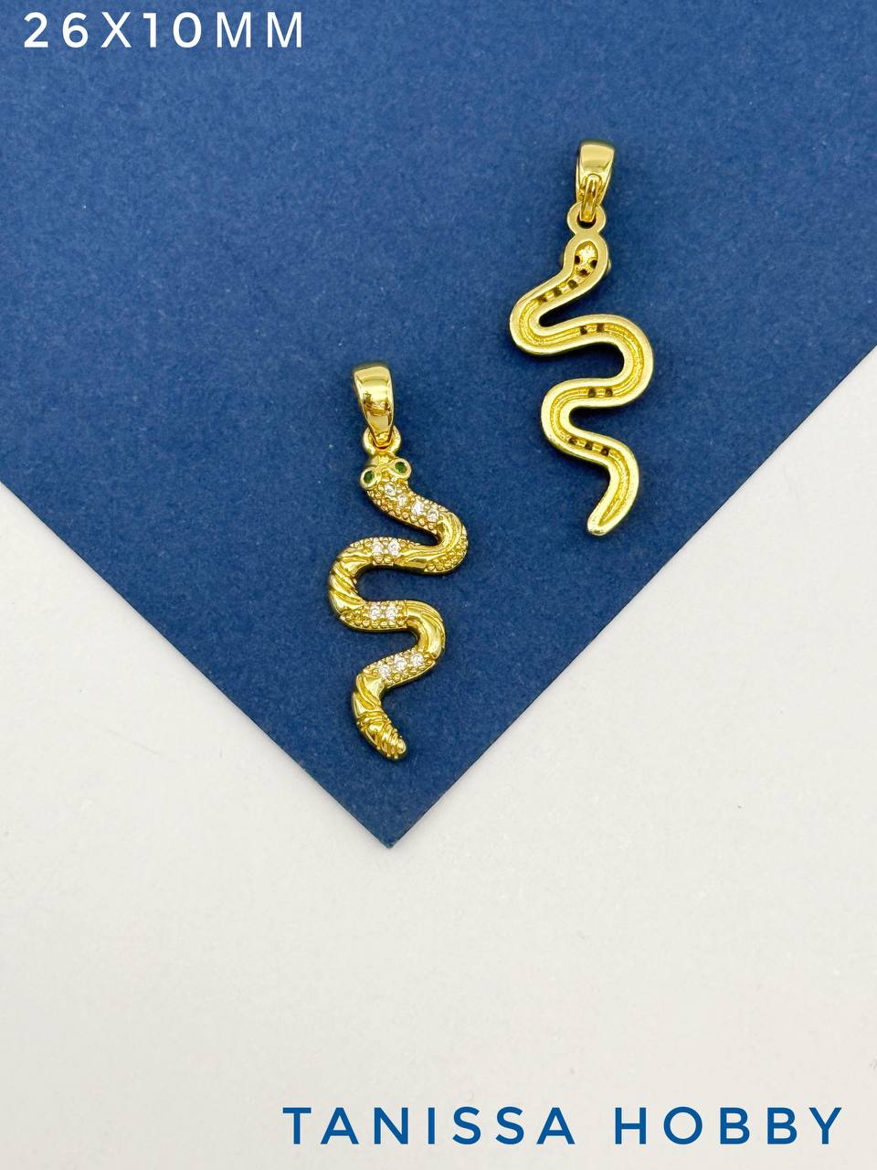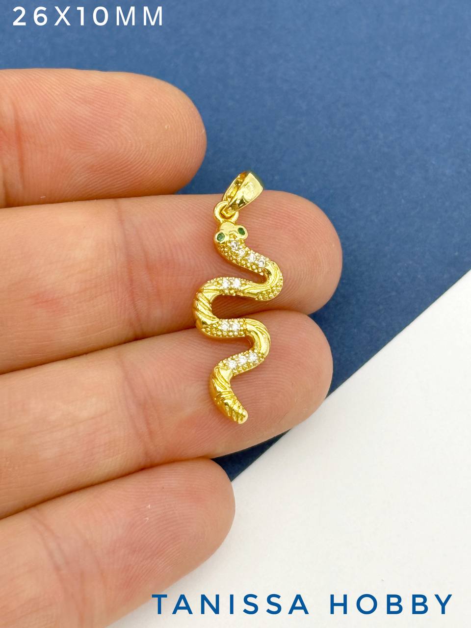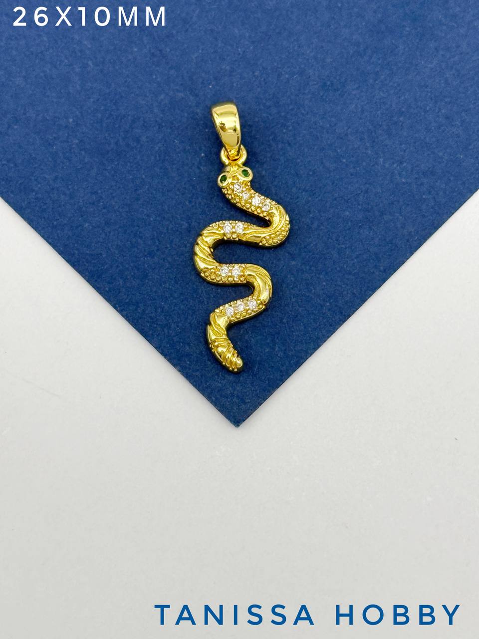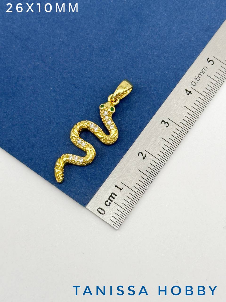 Подвеска змея с фианитами, 26х10мм, позолота, А307