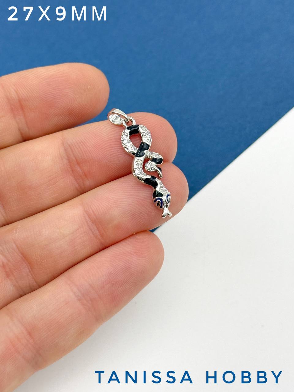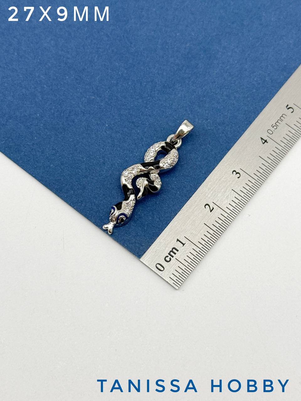 Подвеска змея черная эмаль, 27х9мм, родий, А716