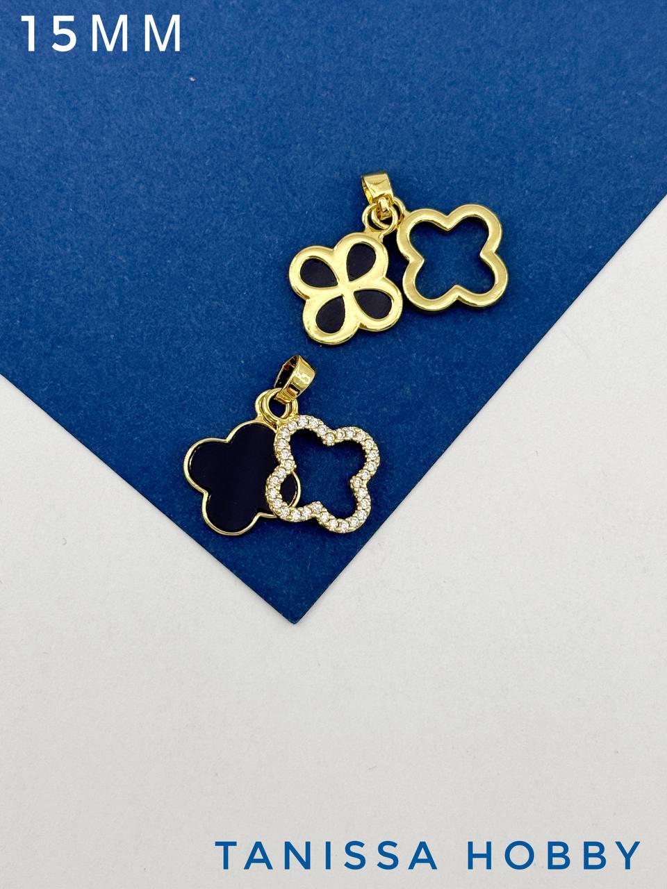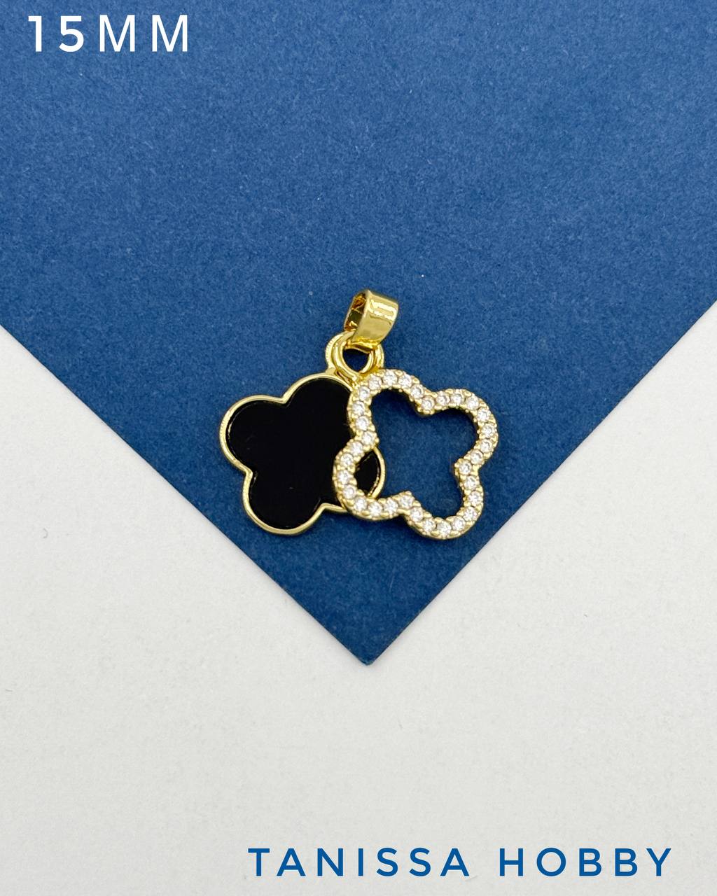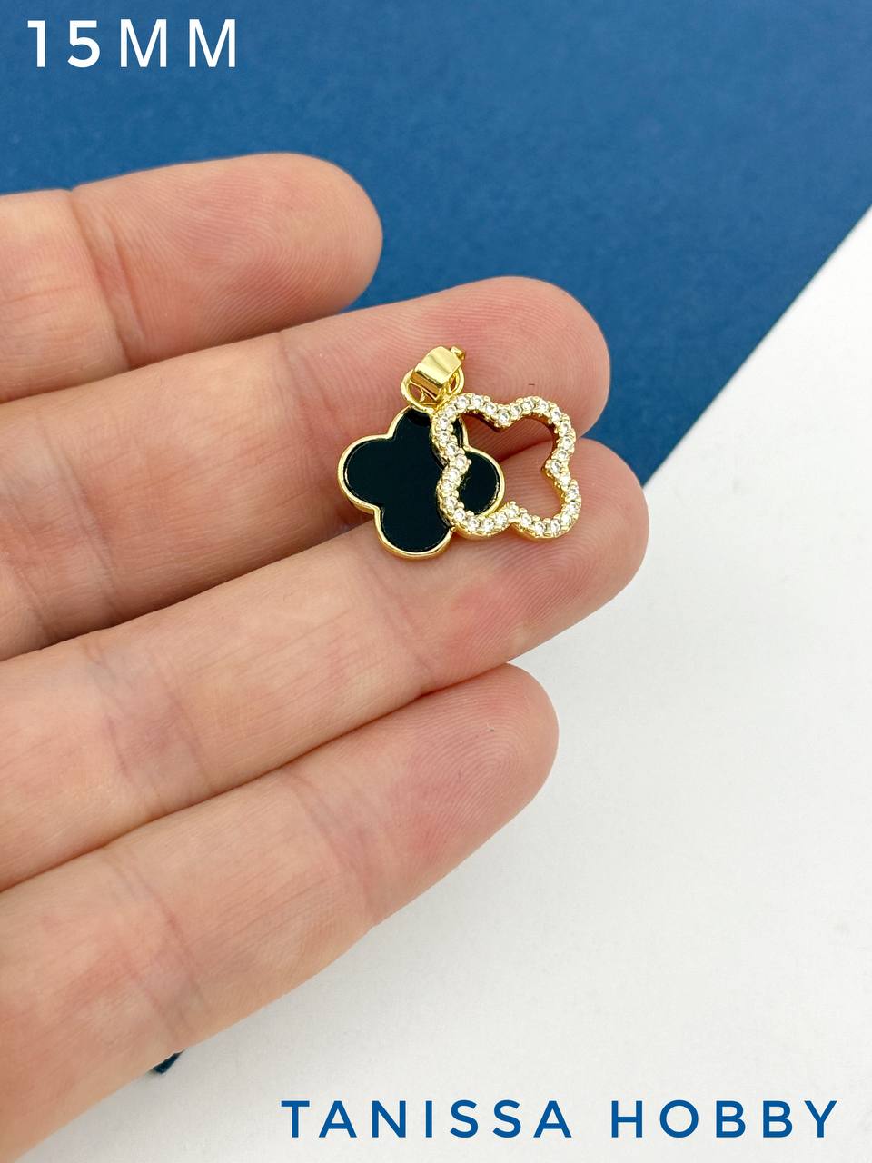 Две подвески на одном бейле - клевер с фианитами и клевер с вставкой из черной эмали