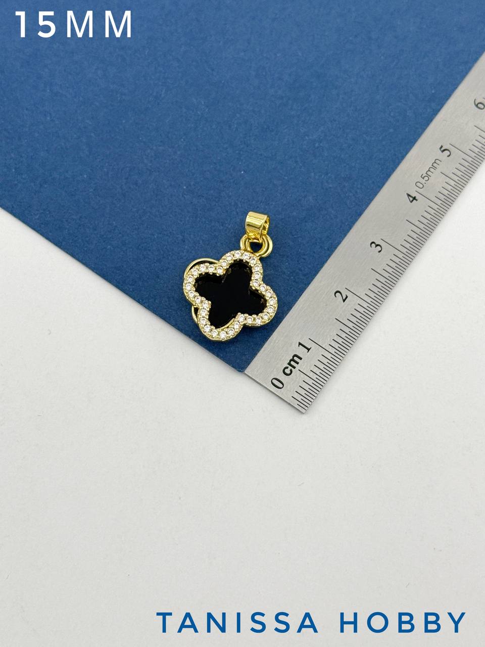 -Подвеска клевер фианиты, черная эмаль, 15мм, позолота, Ю636