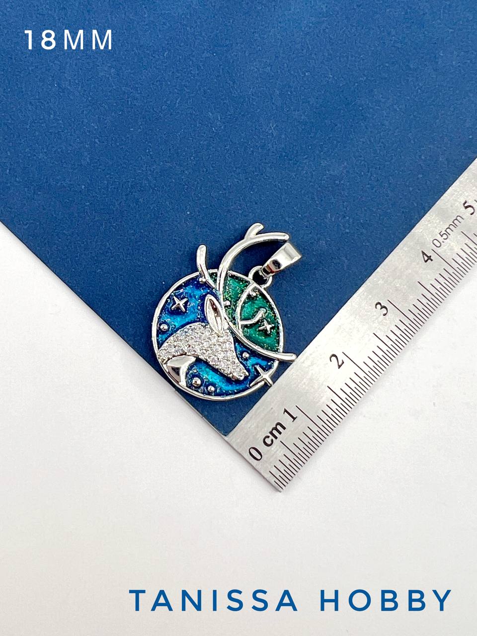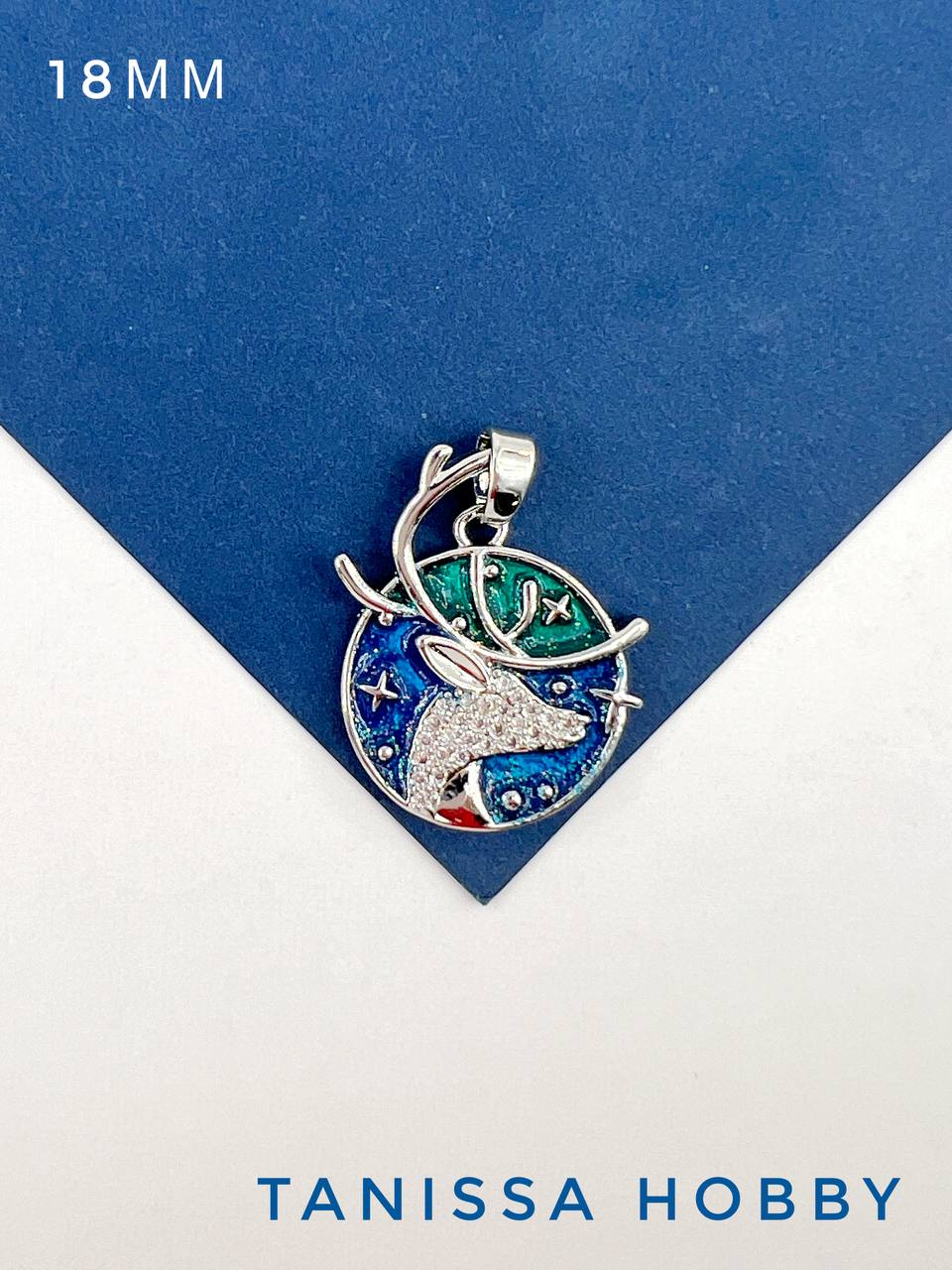 Подвеска северный олень 18мм, эмаль, родий, Ю627