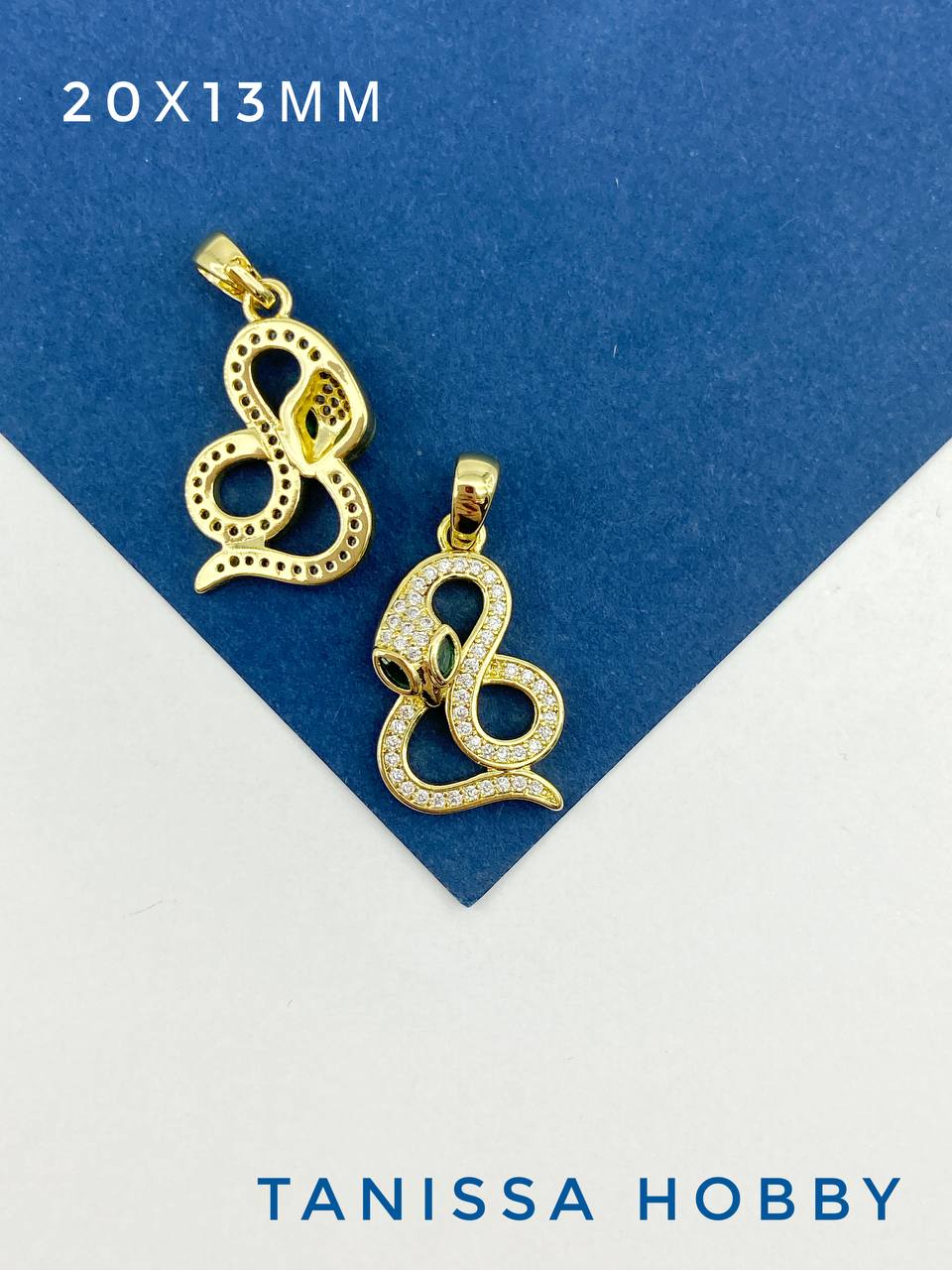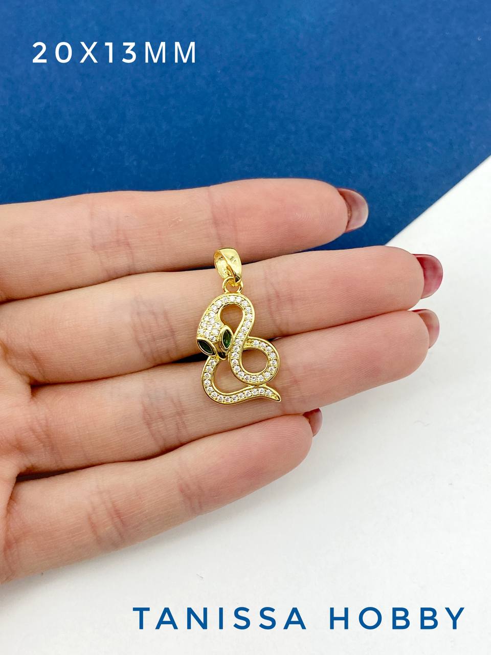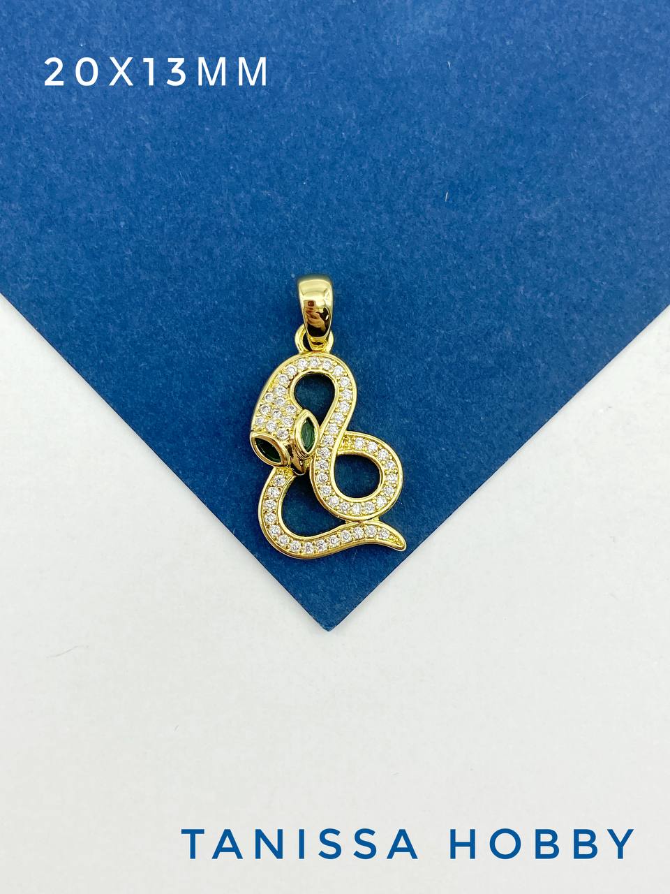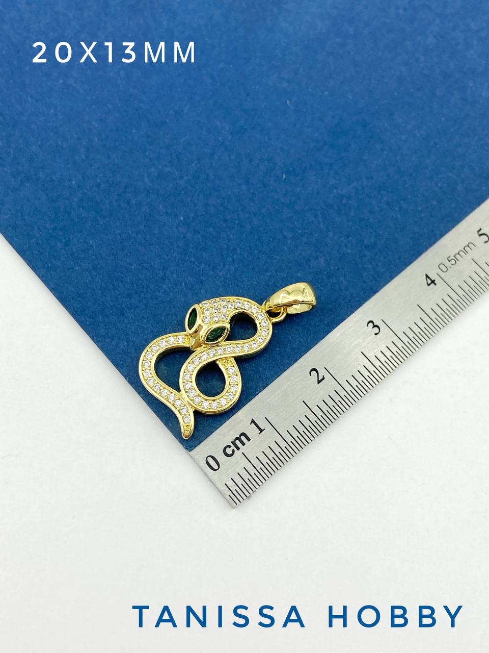Подвеска змея с зелеными фианитами, 20х13мм, позолота, С135