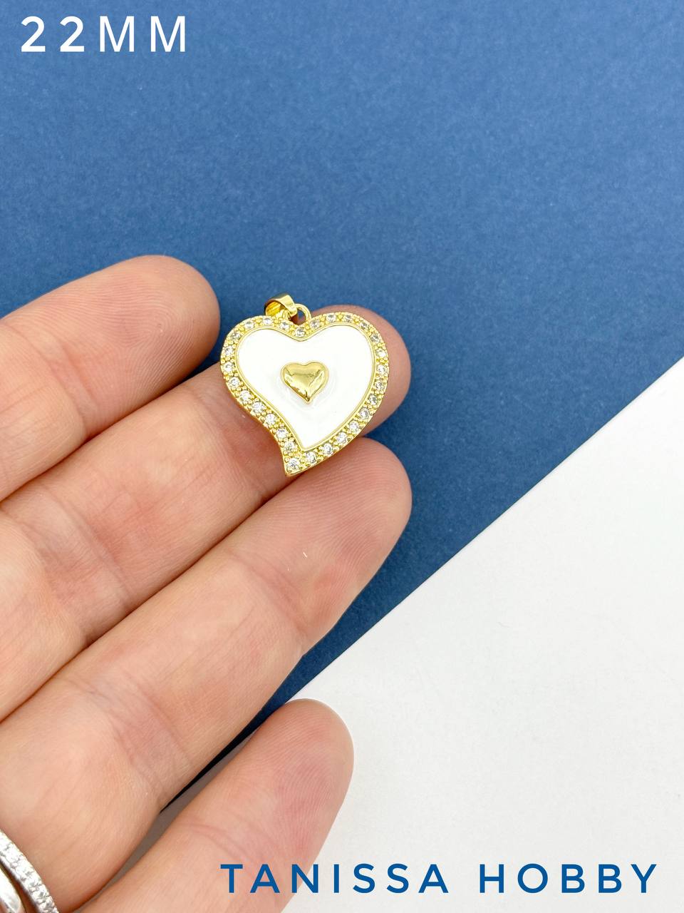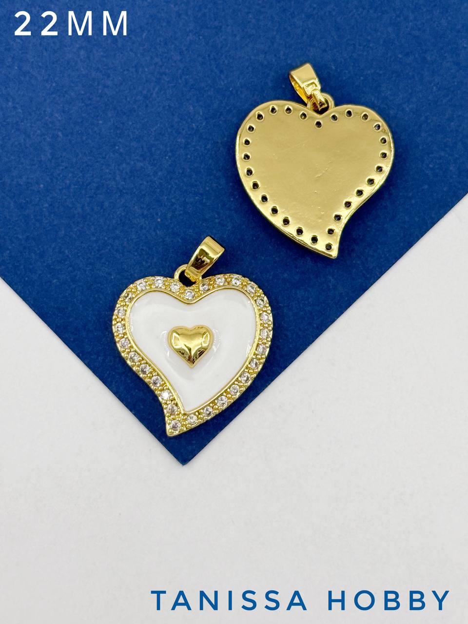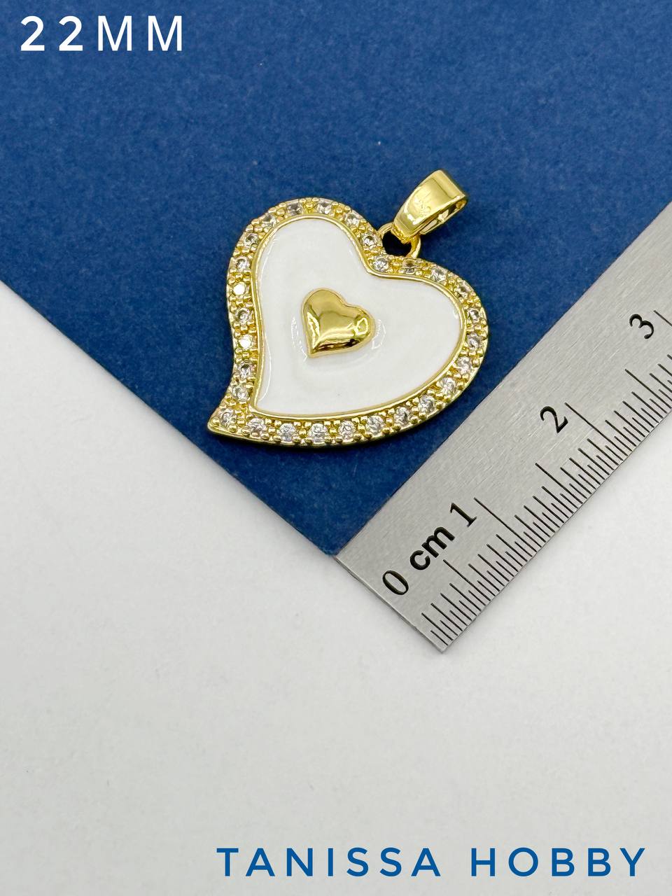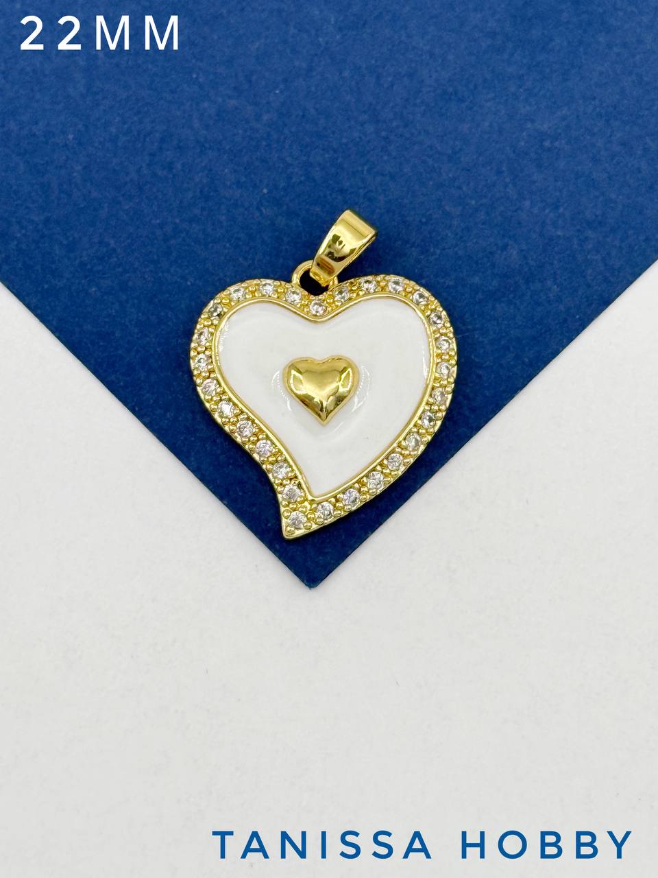 -Подвеска сердце белая эмаль, 22мм, позолота, С521
