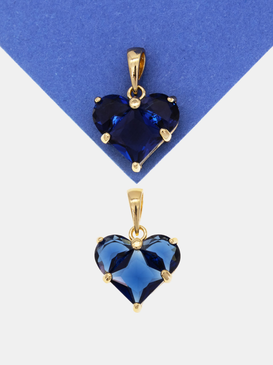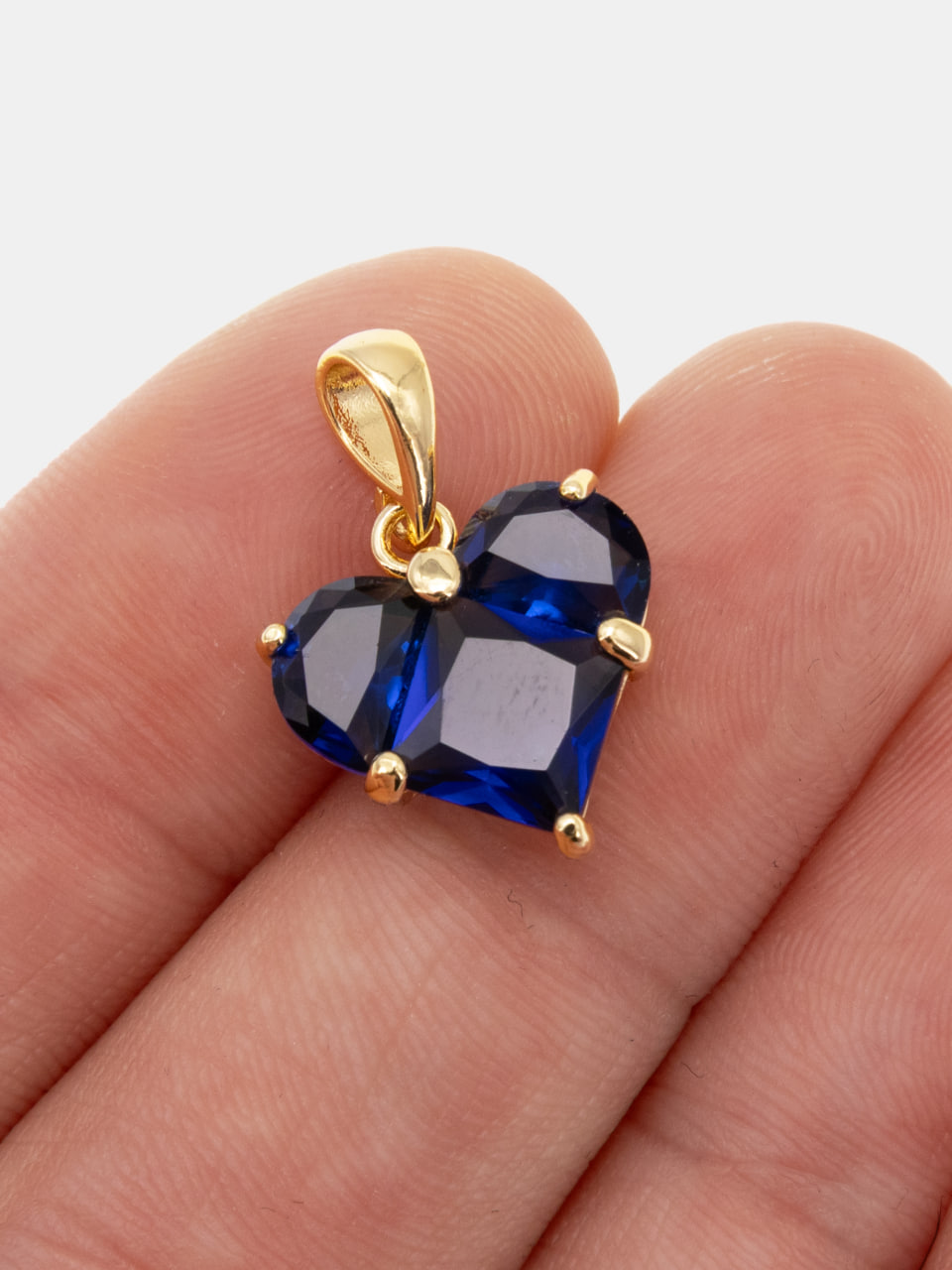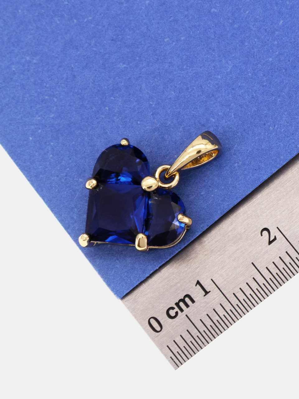 Подвеска сердце фианит синий 14мм, позолота, Ю323