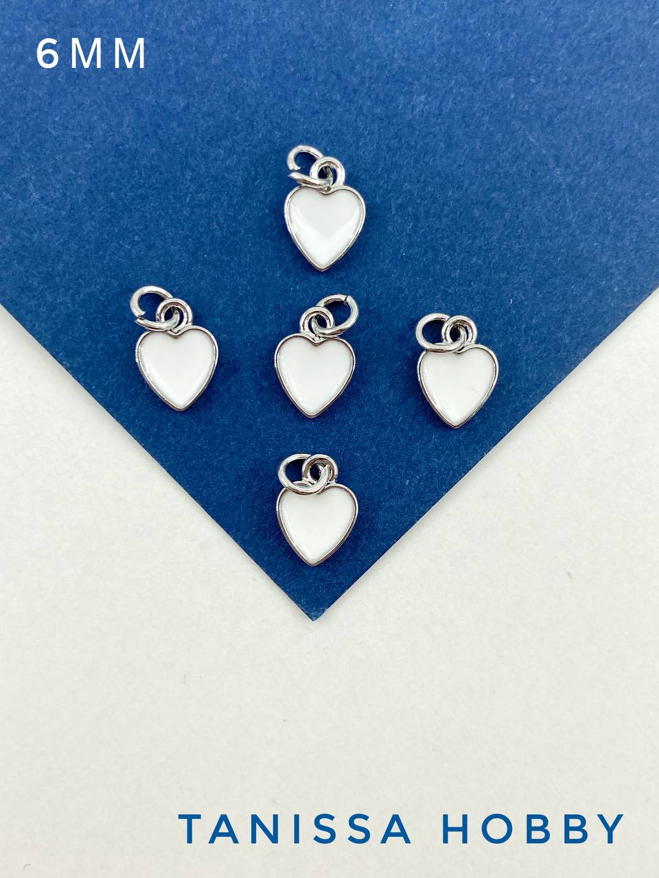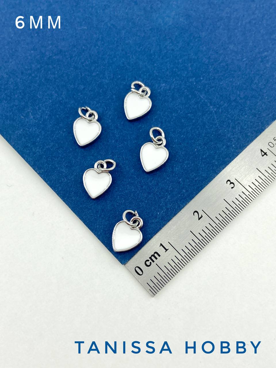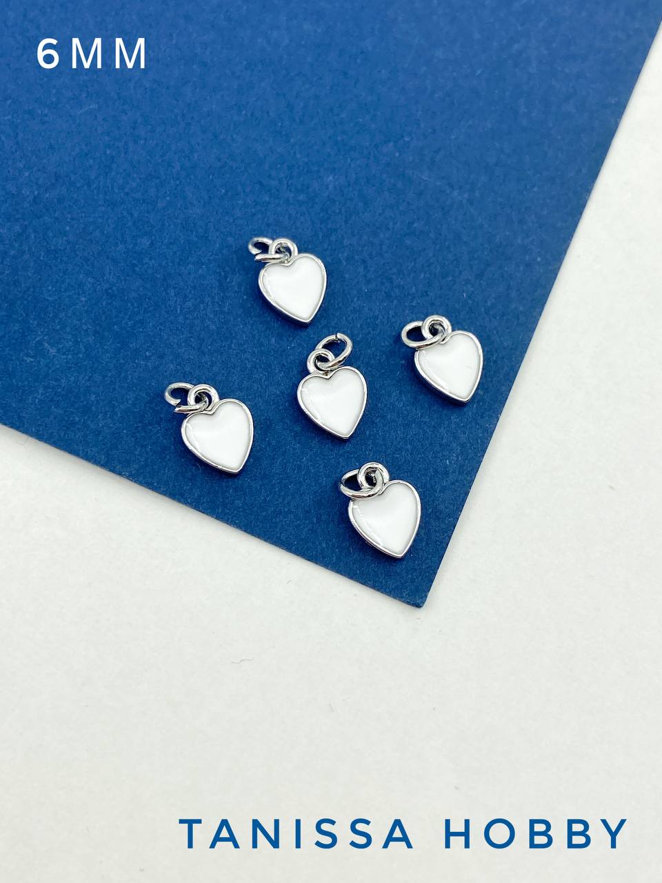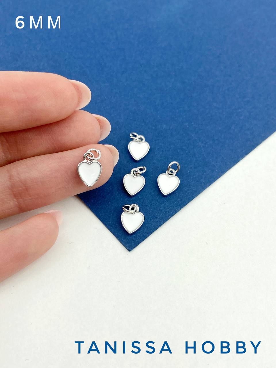 Подвеска сердце белая эмаль, родий, 5шт, ОПТ036
