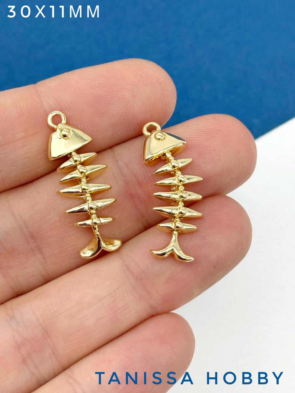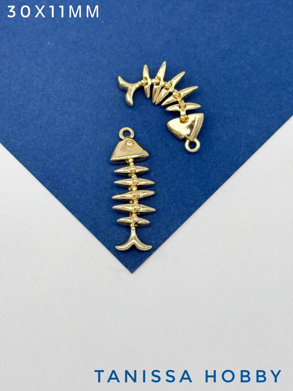 -Подвеска рыба скелет, 30х11мм, позолота, А922