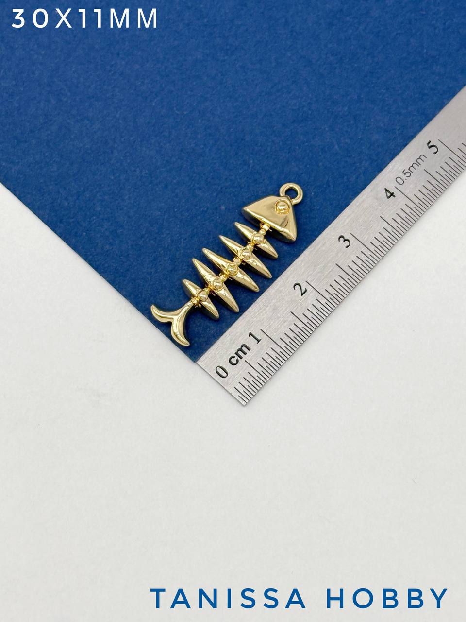 Подвеска рыба скелет, 30х11мм, позолота, А922