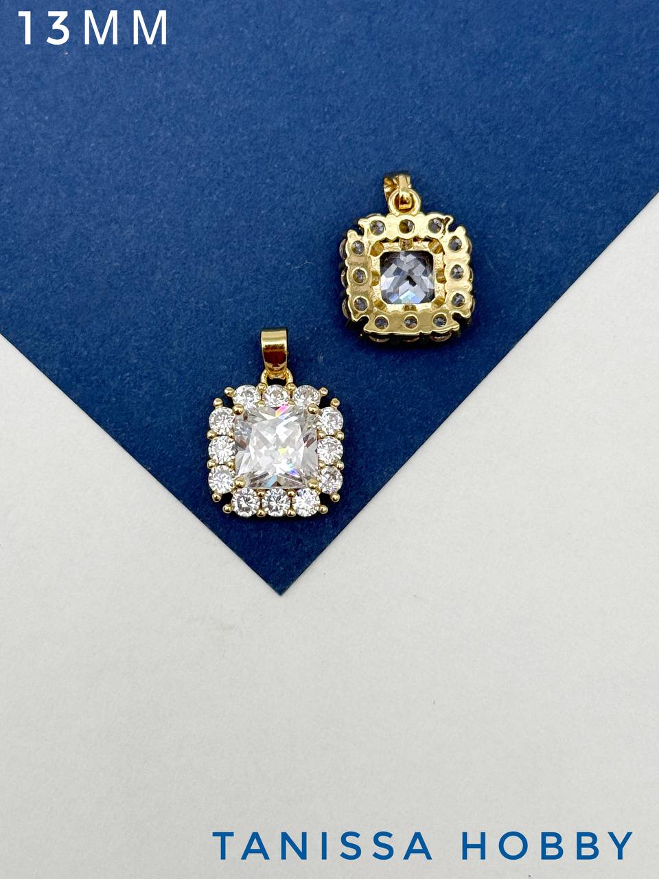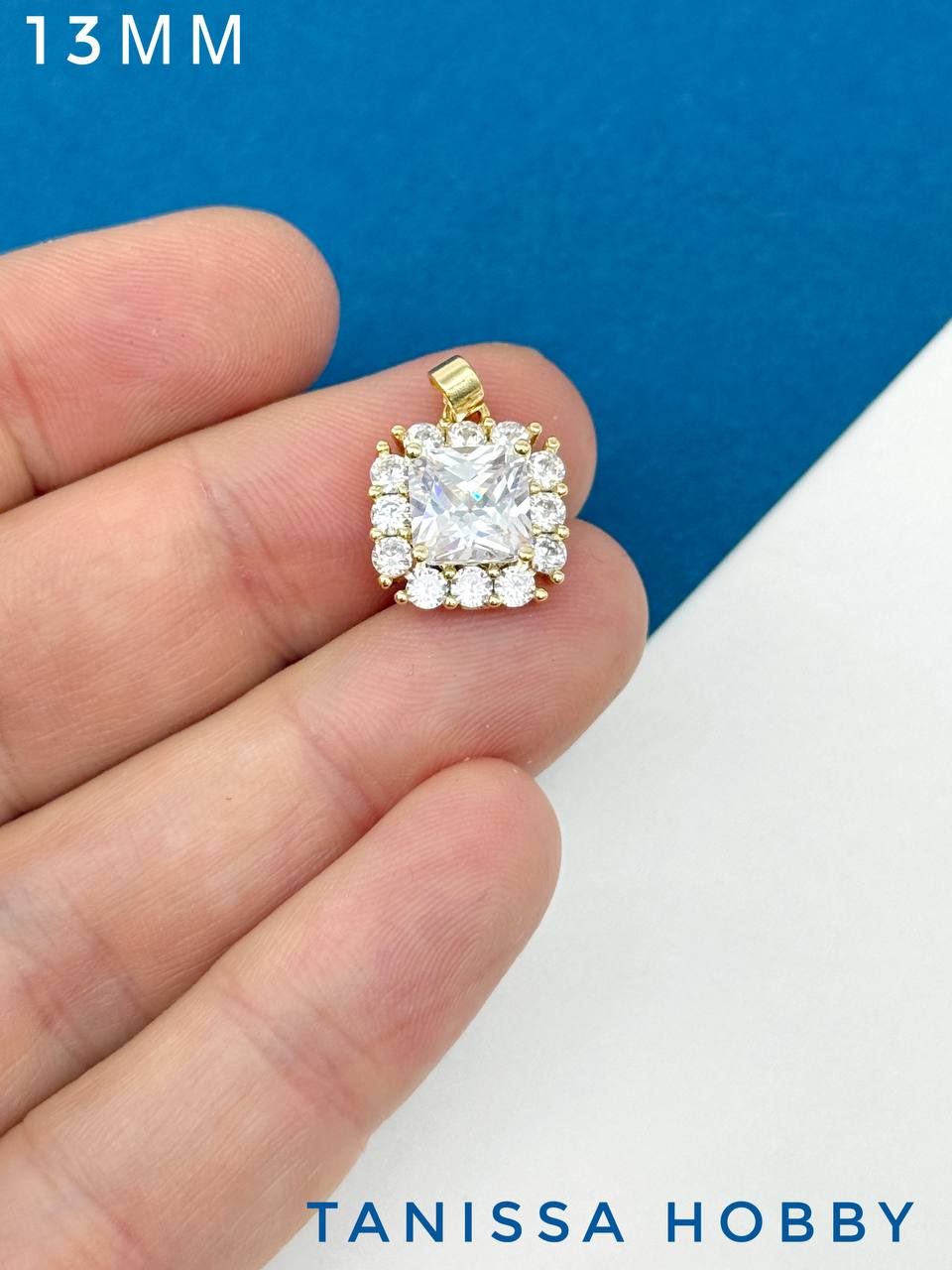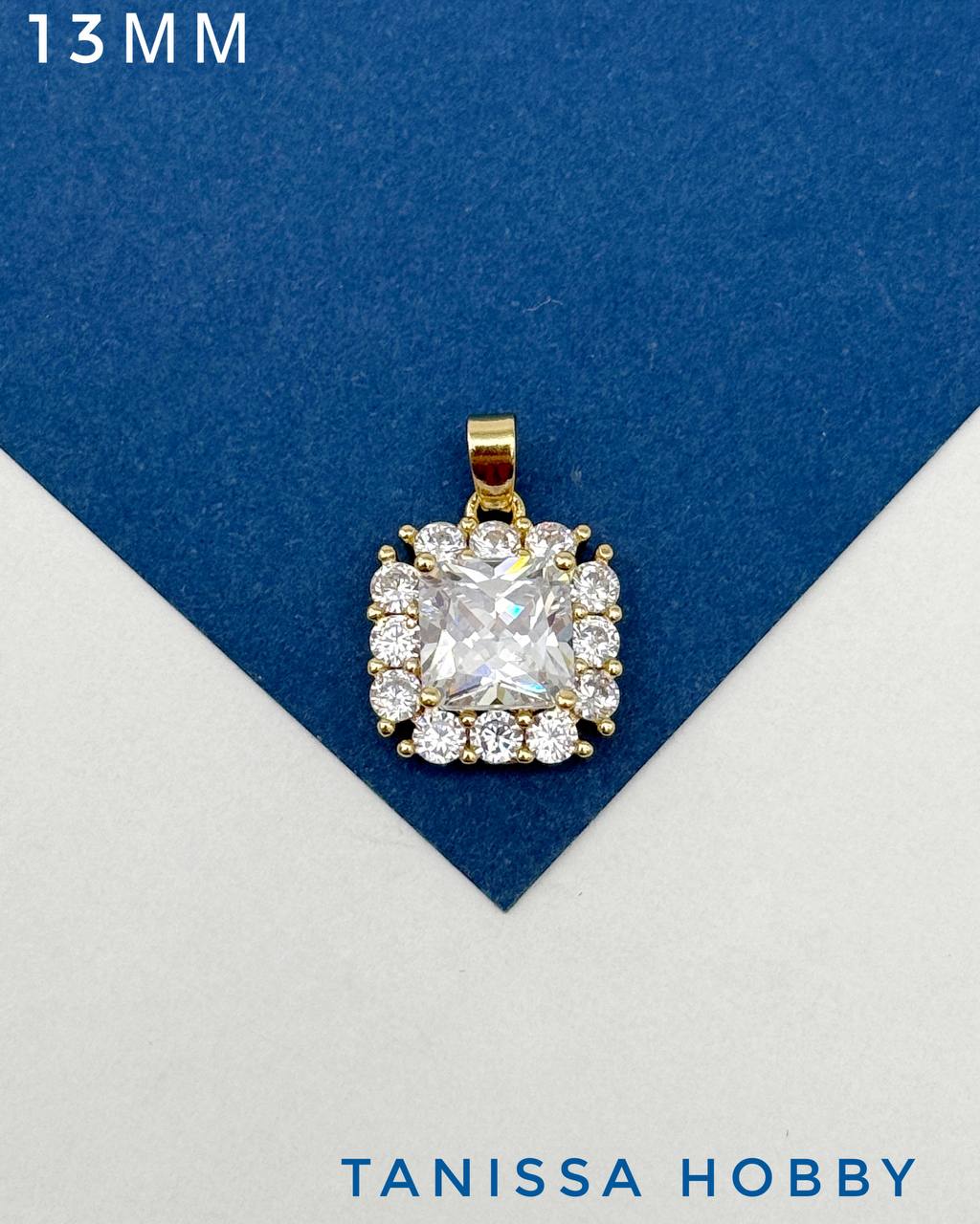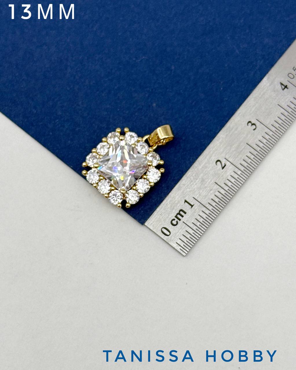 Подвеска квадрат фианит в оправе, 13мм, позолота, С721