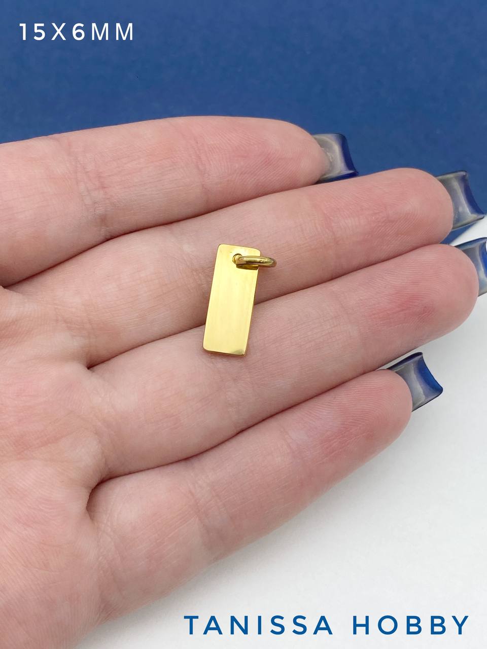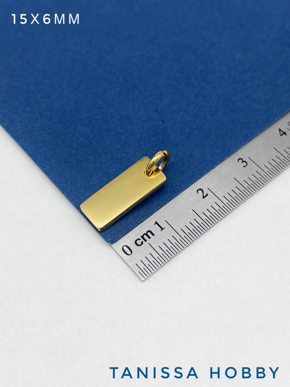 Подвеска прямоугольник шильдик, 15х6мм, сталь, позолота, Ш219