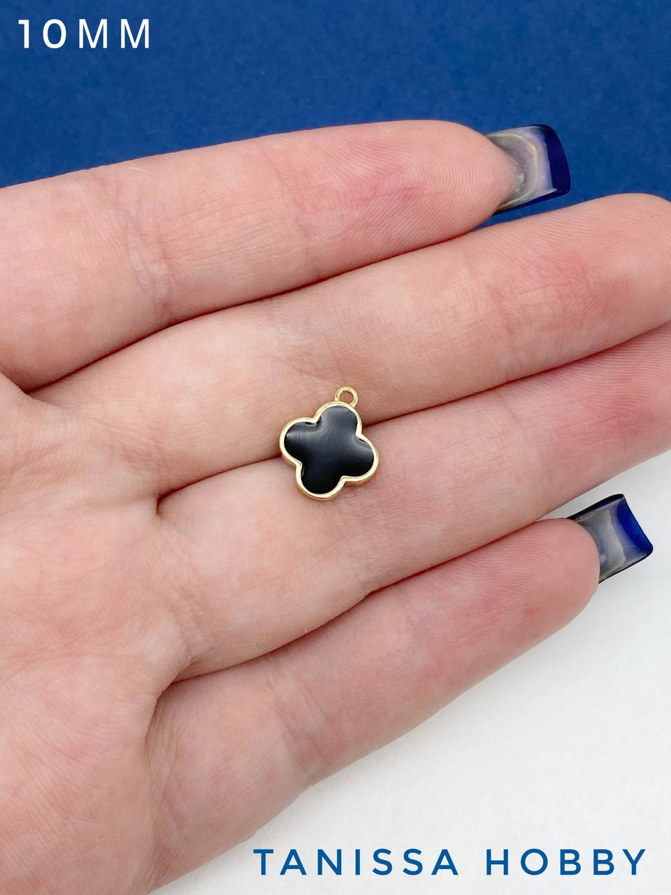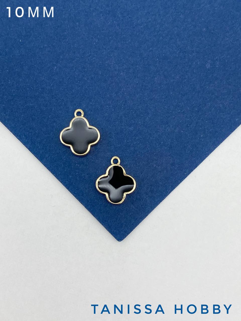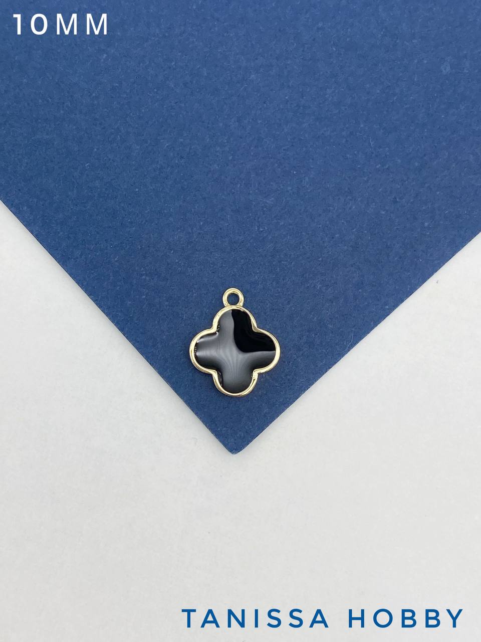 Подвеска клевер 10мм, черная эмаль, позолота, С531