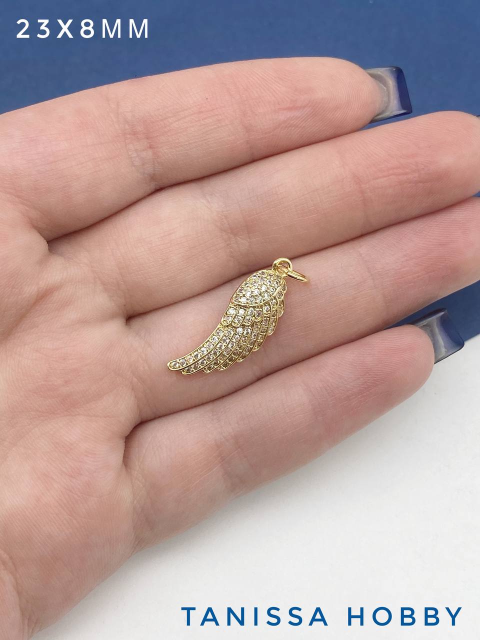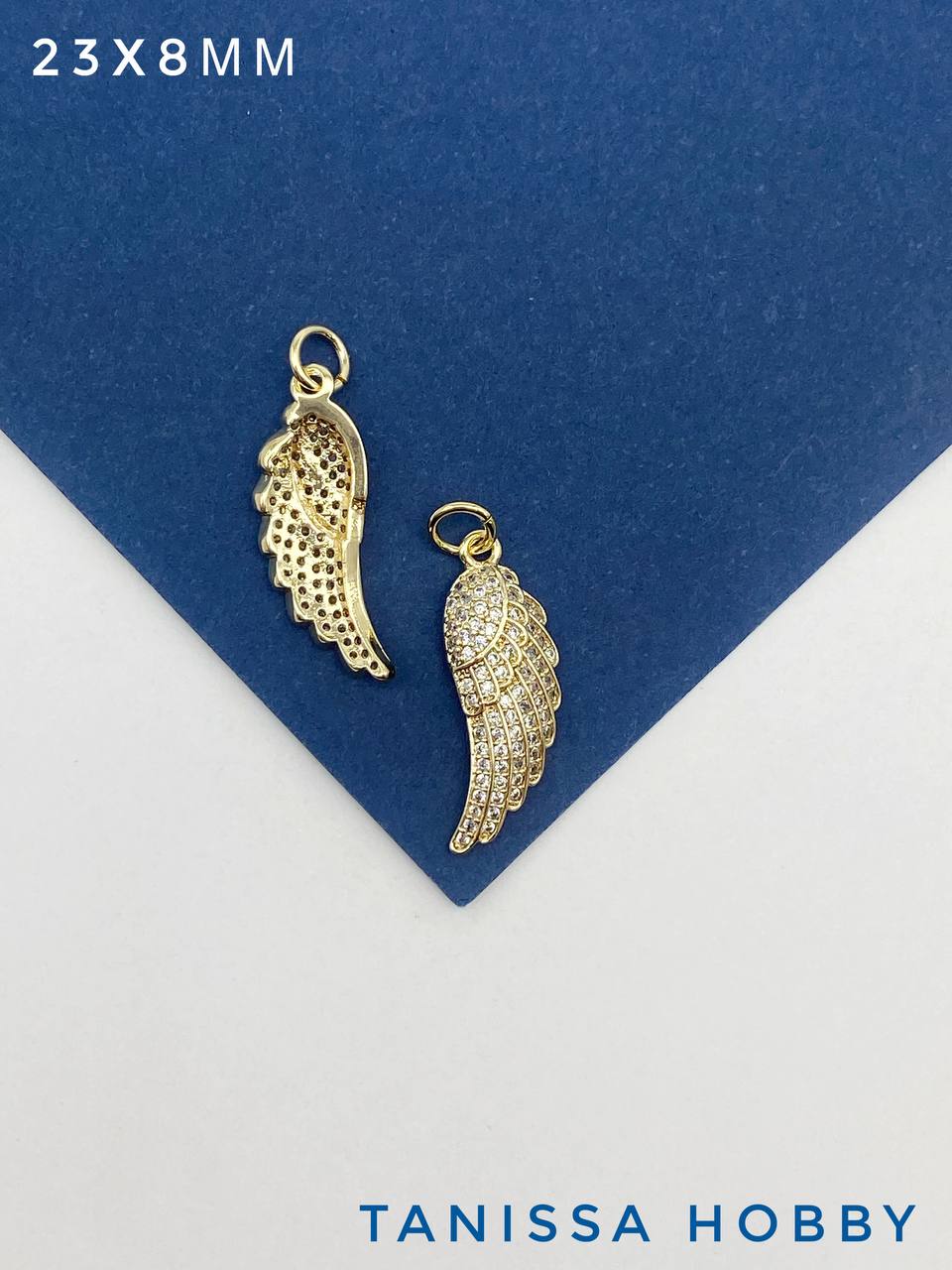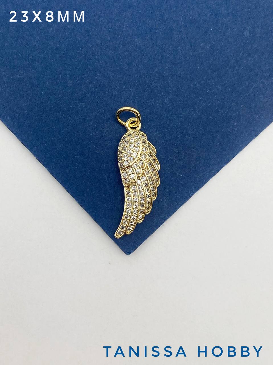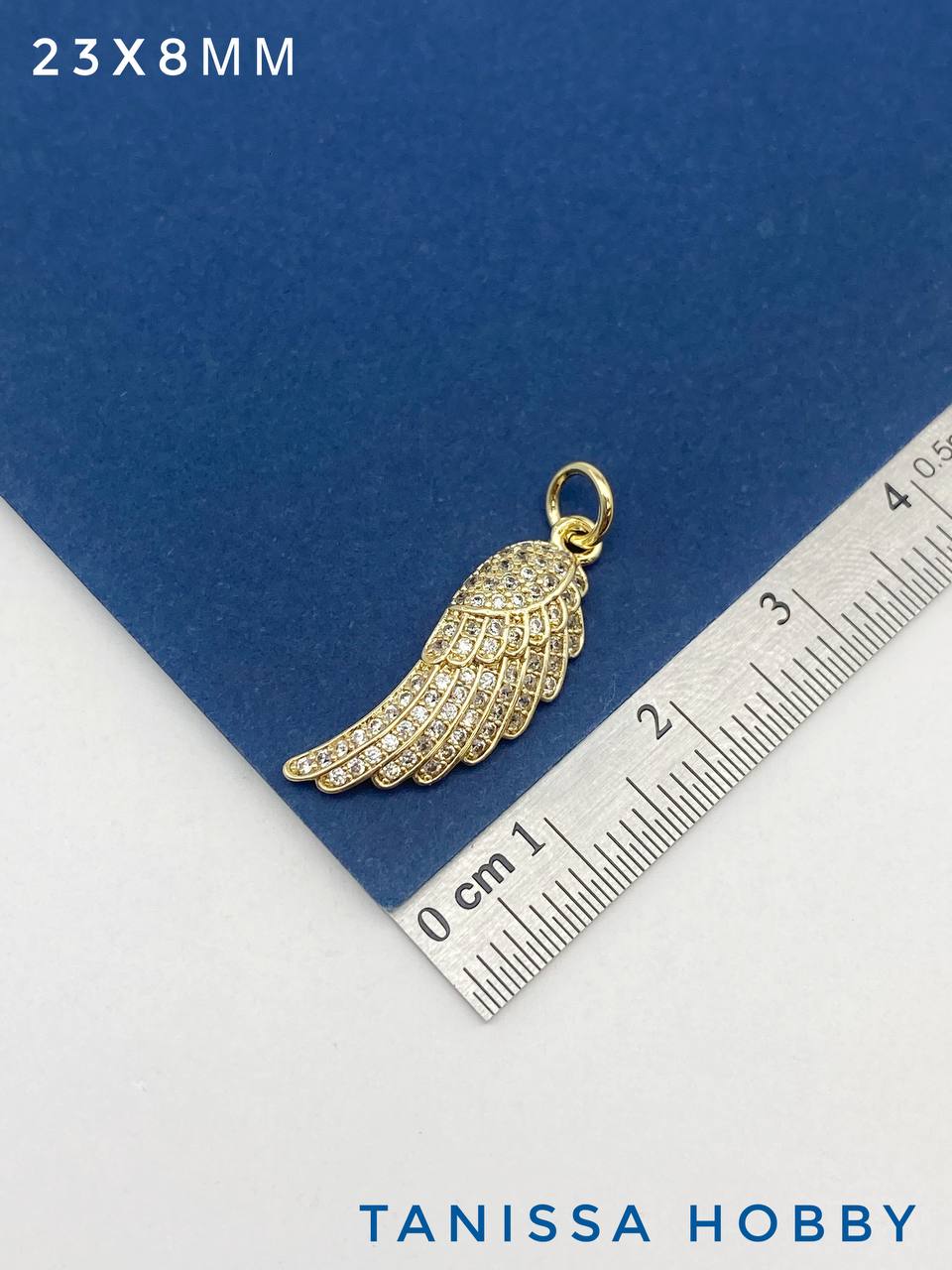 Подвеска крыло ангела с фианитами 23х8мм, позолота, А611