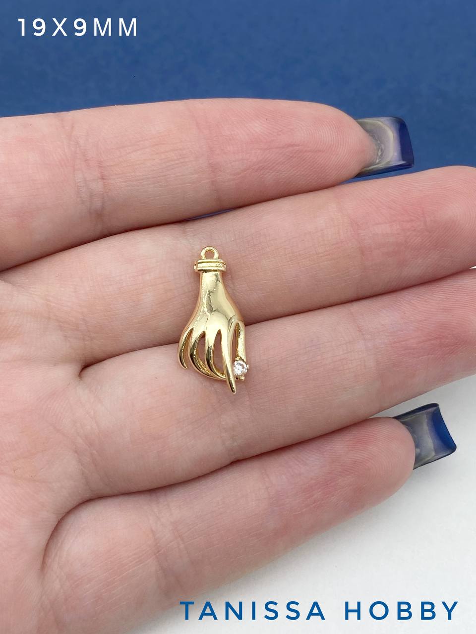 -Подвеска рука с фианитом, 19х9мм, позолота, А907