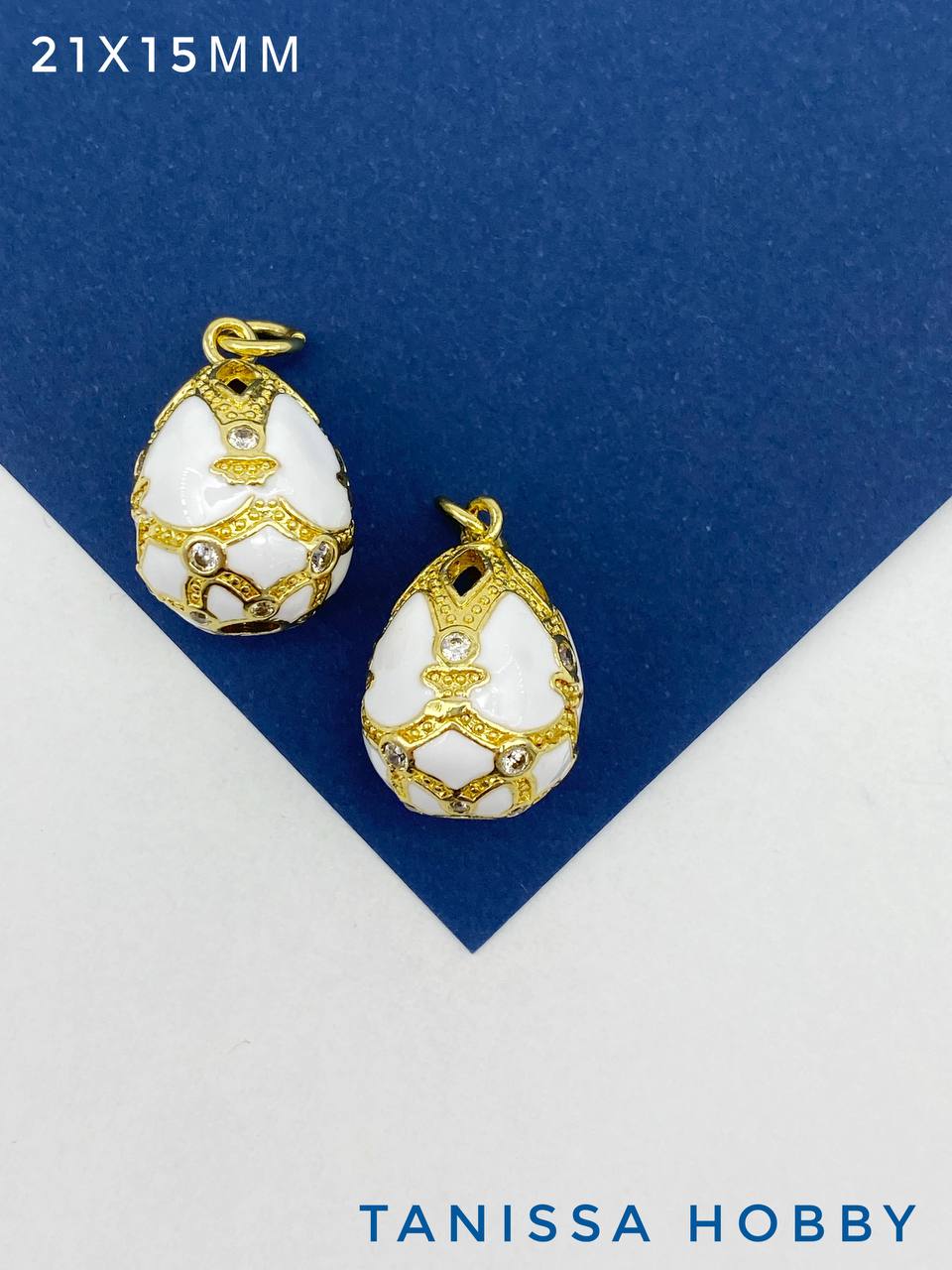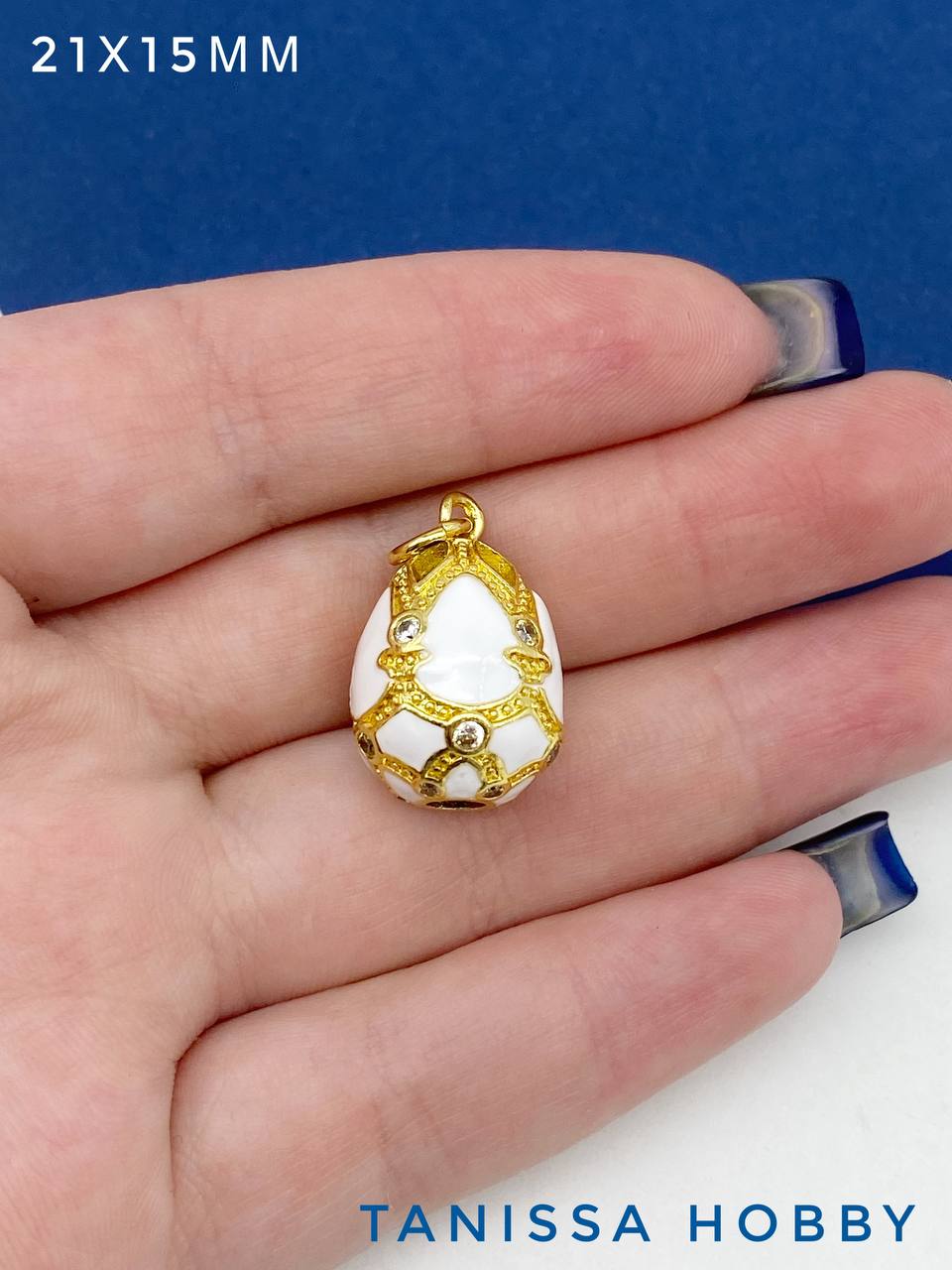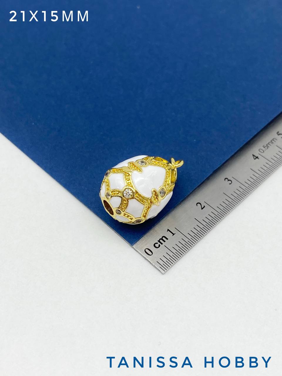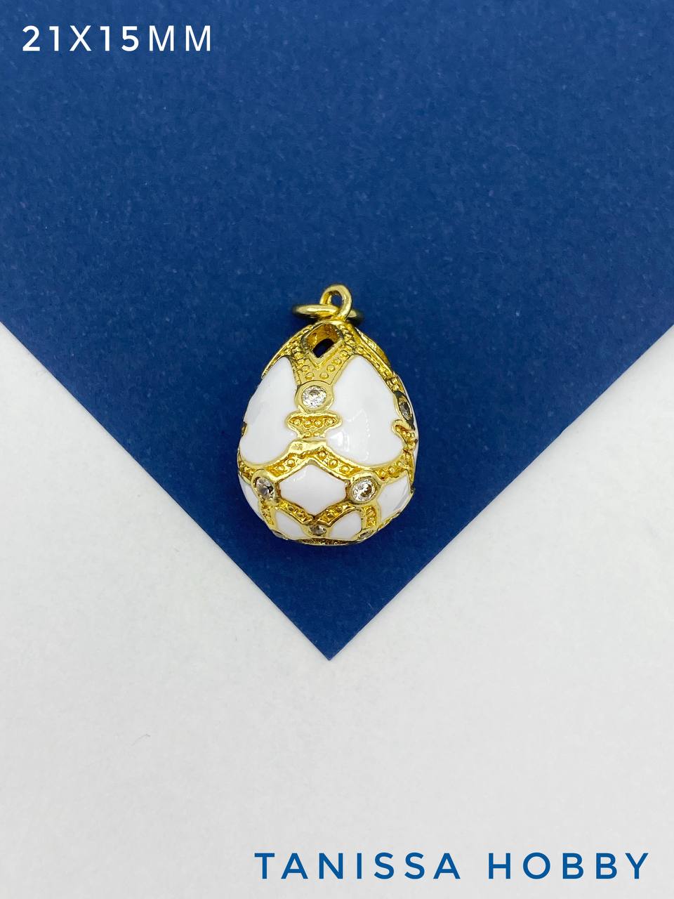 Подвеска пасхальное яйцо Фаберже, эмаль, белый, 21х15мм, позолота, Д166
