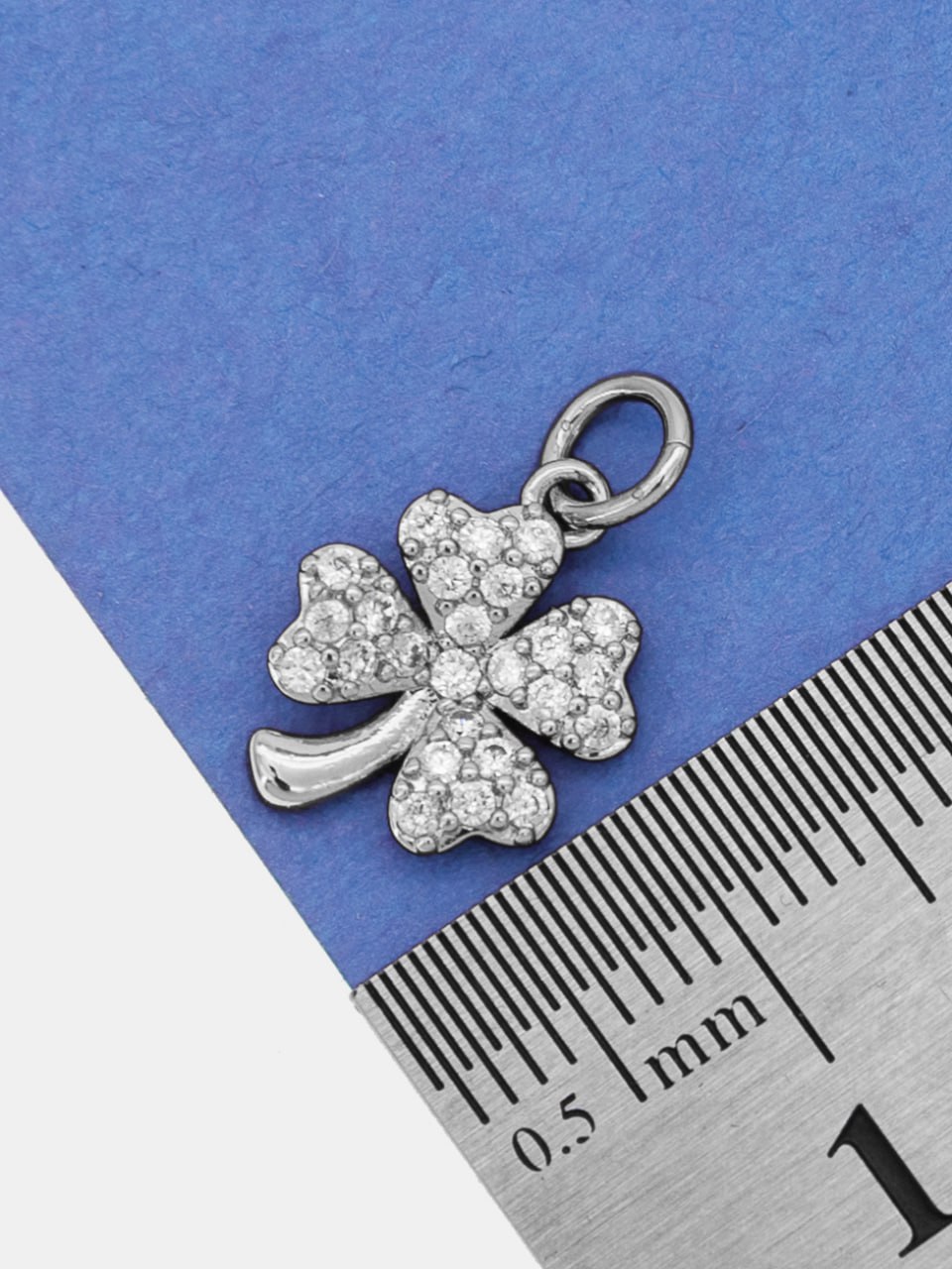 Подвеска клевер с фианитами, 11мм, родий, Ю701