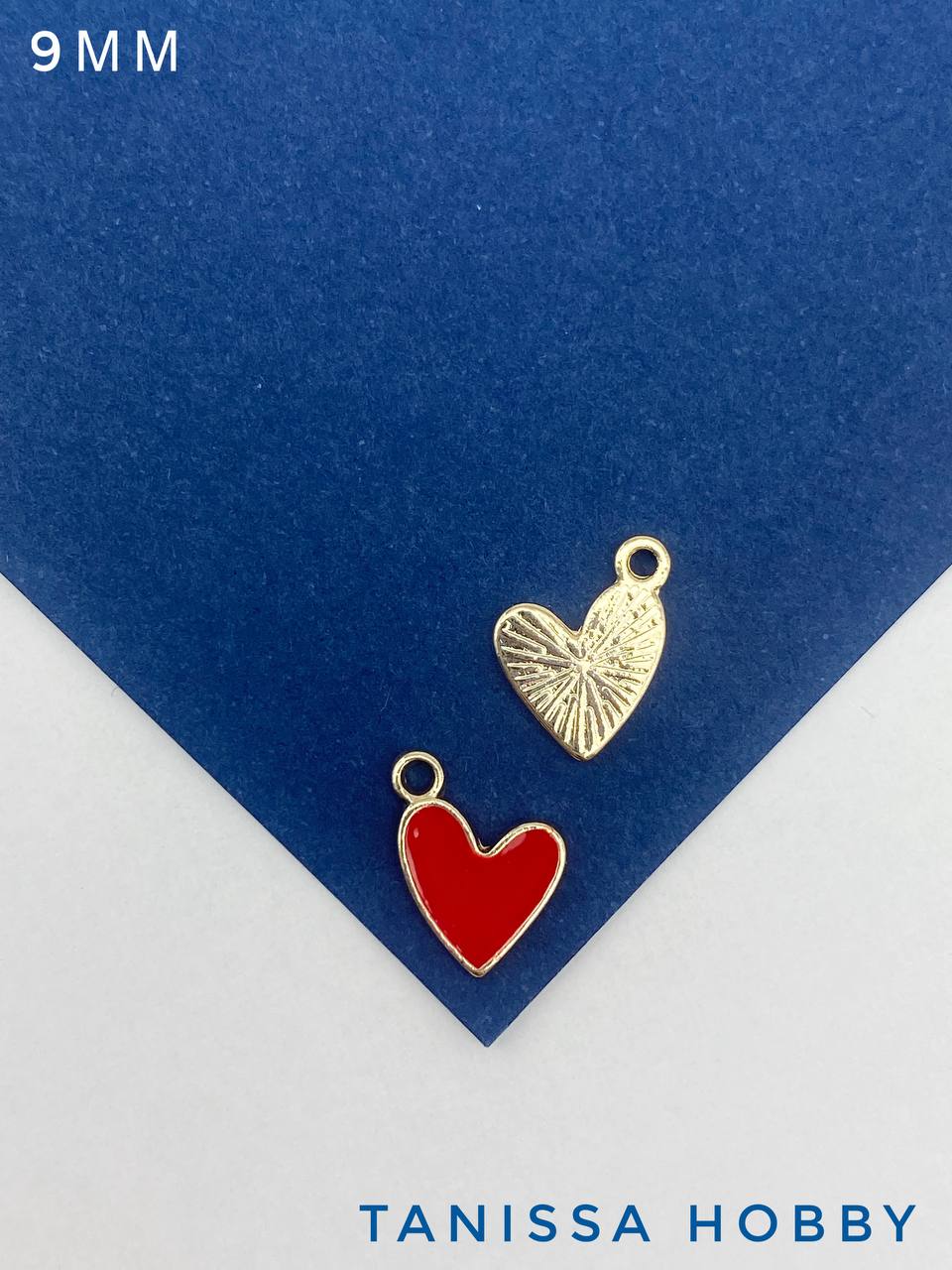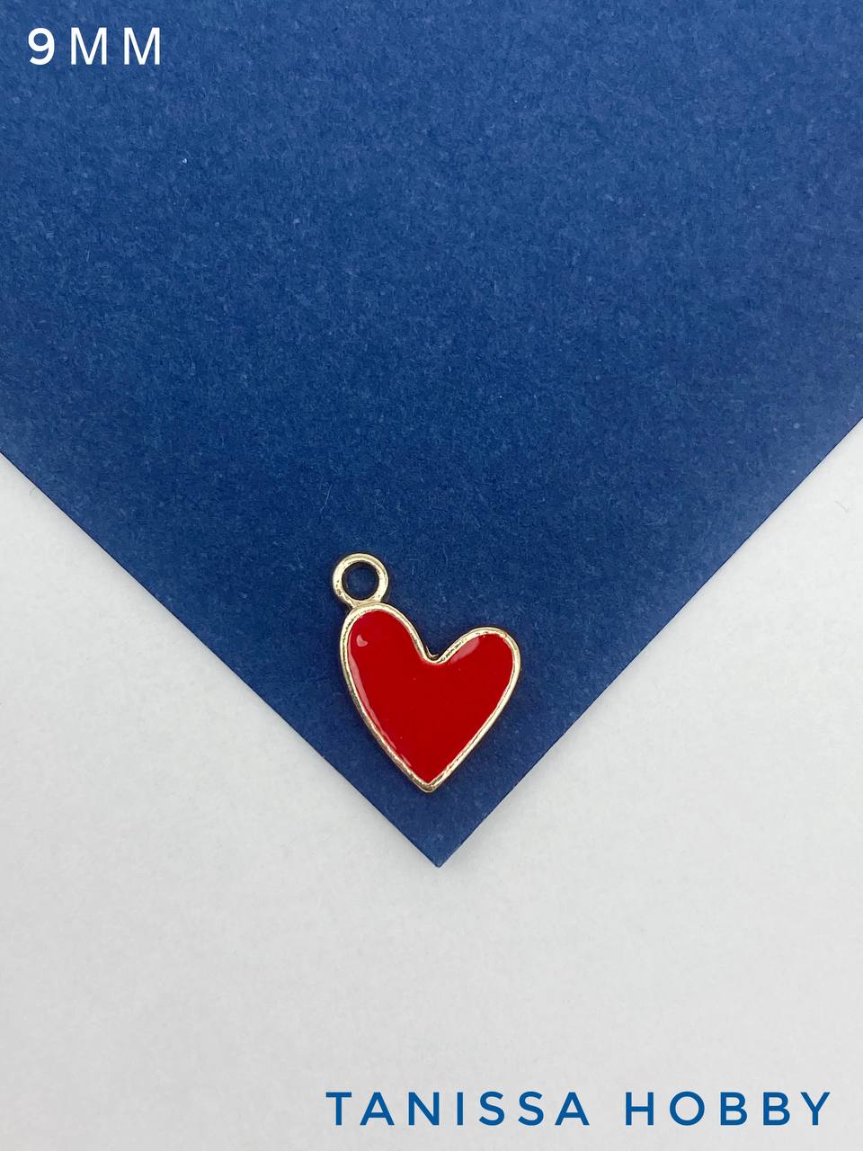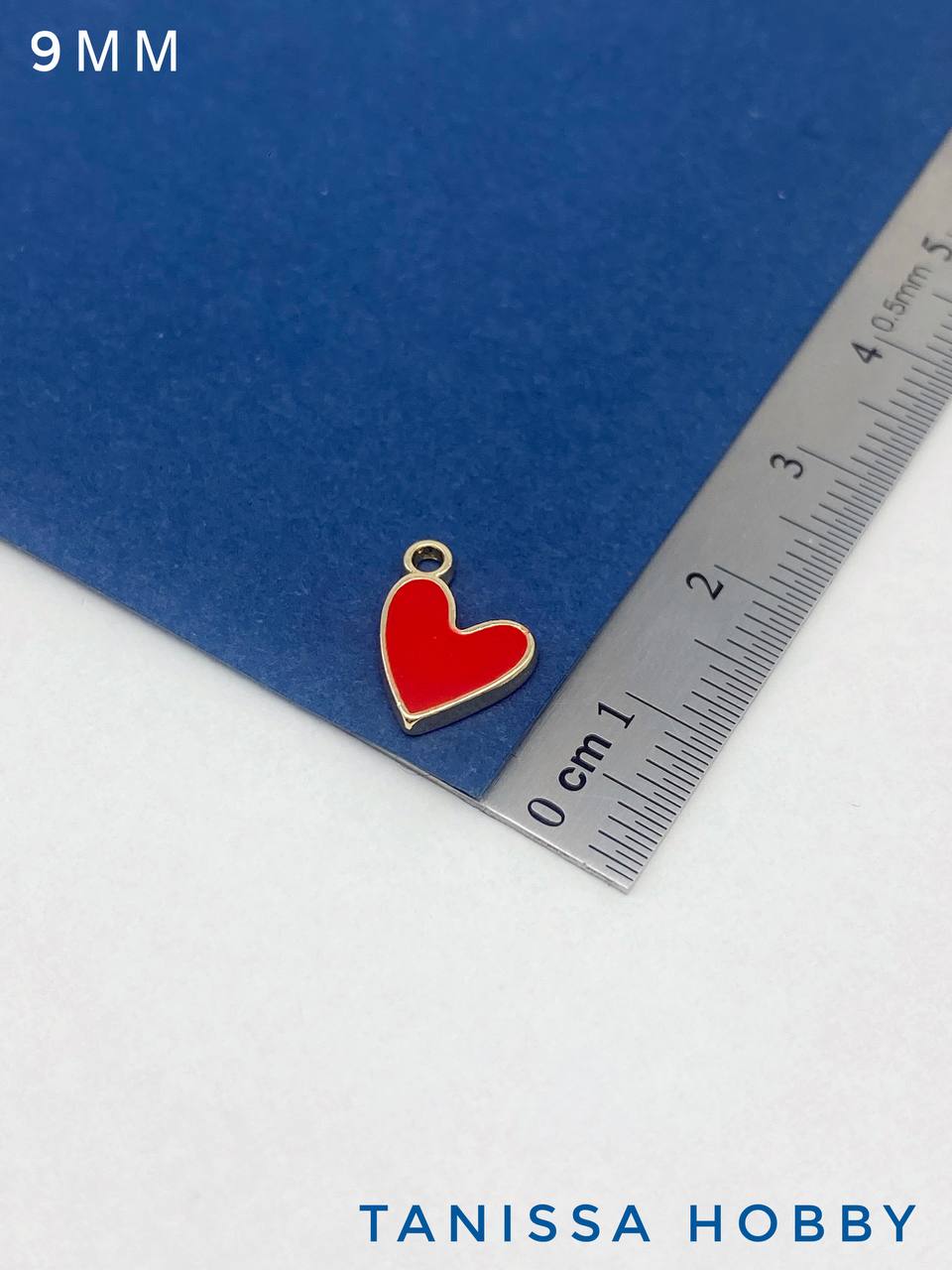 Подвеска сердце, 9мм, красная эмаль, позолота, Ю710