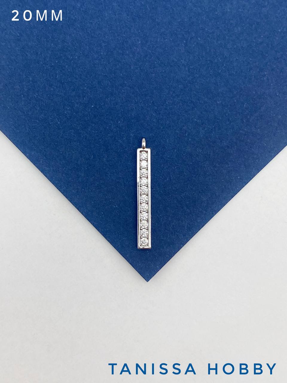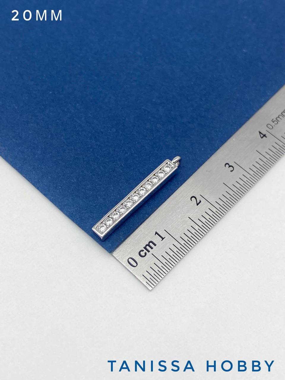 Подвеска палочка с фианитами 20мм, родий, Ю713