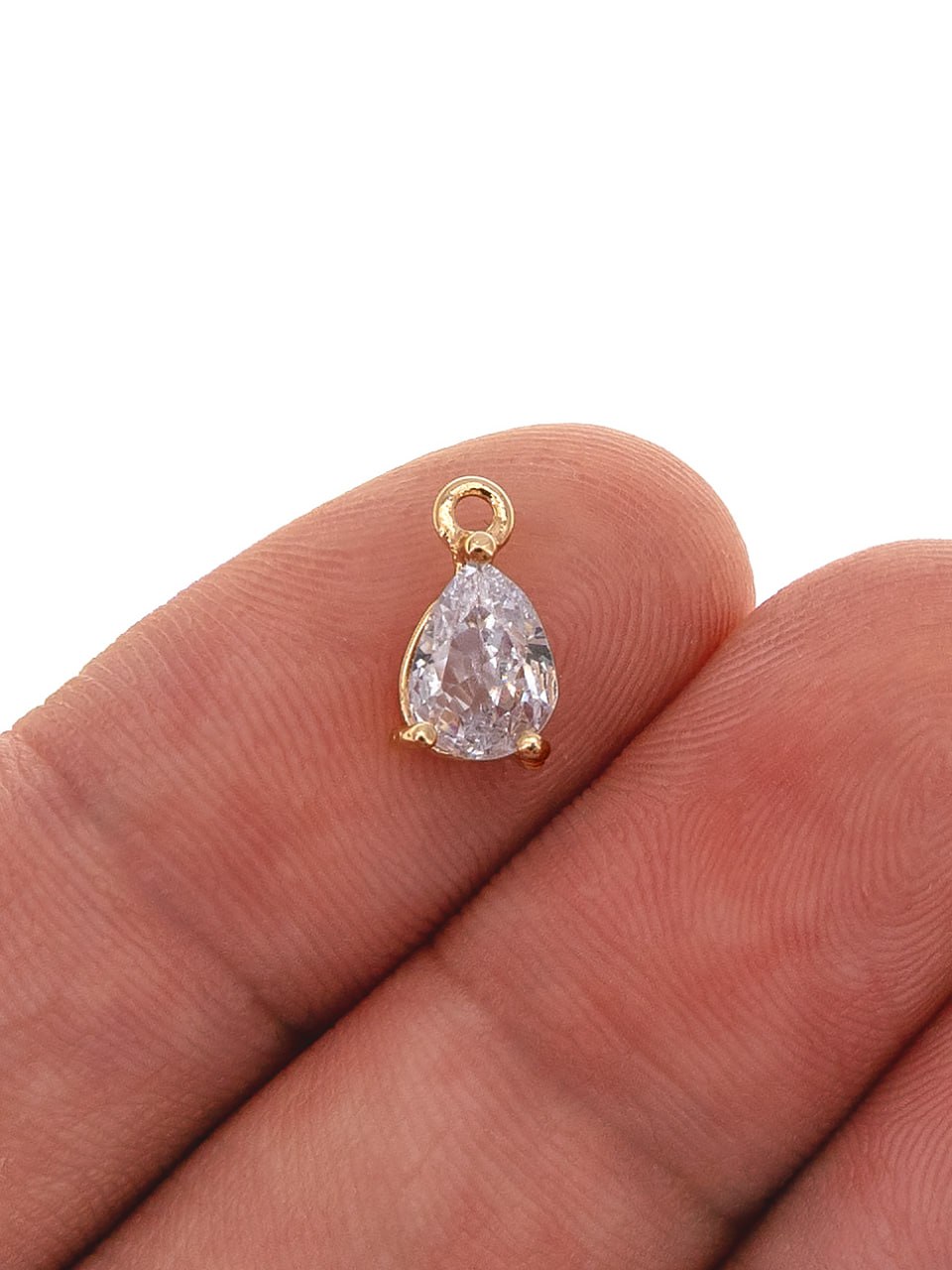 Подвеска капля с фианитом 8х5мм, позолота, Ю720