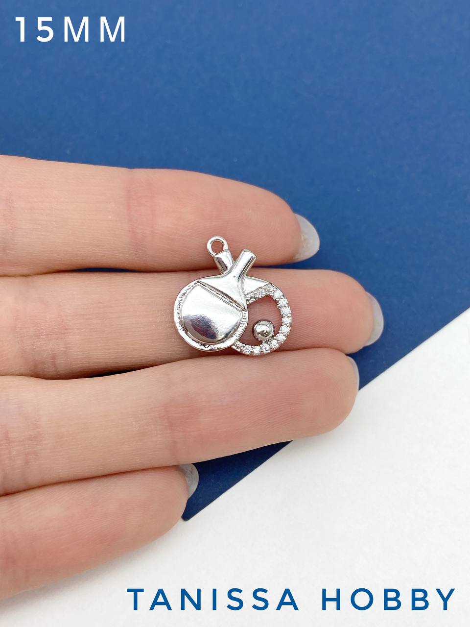 Подвеска настольный теннис, пинг понг, спорт, 15мм, родий, Ю729