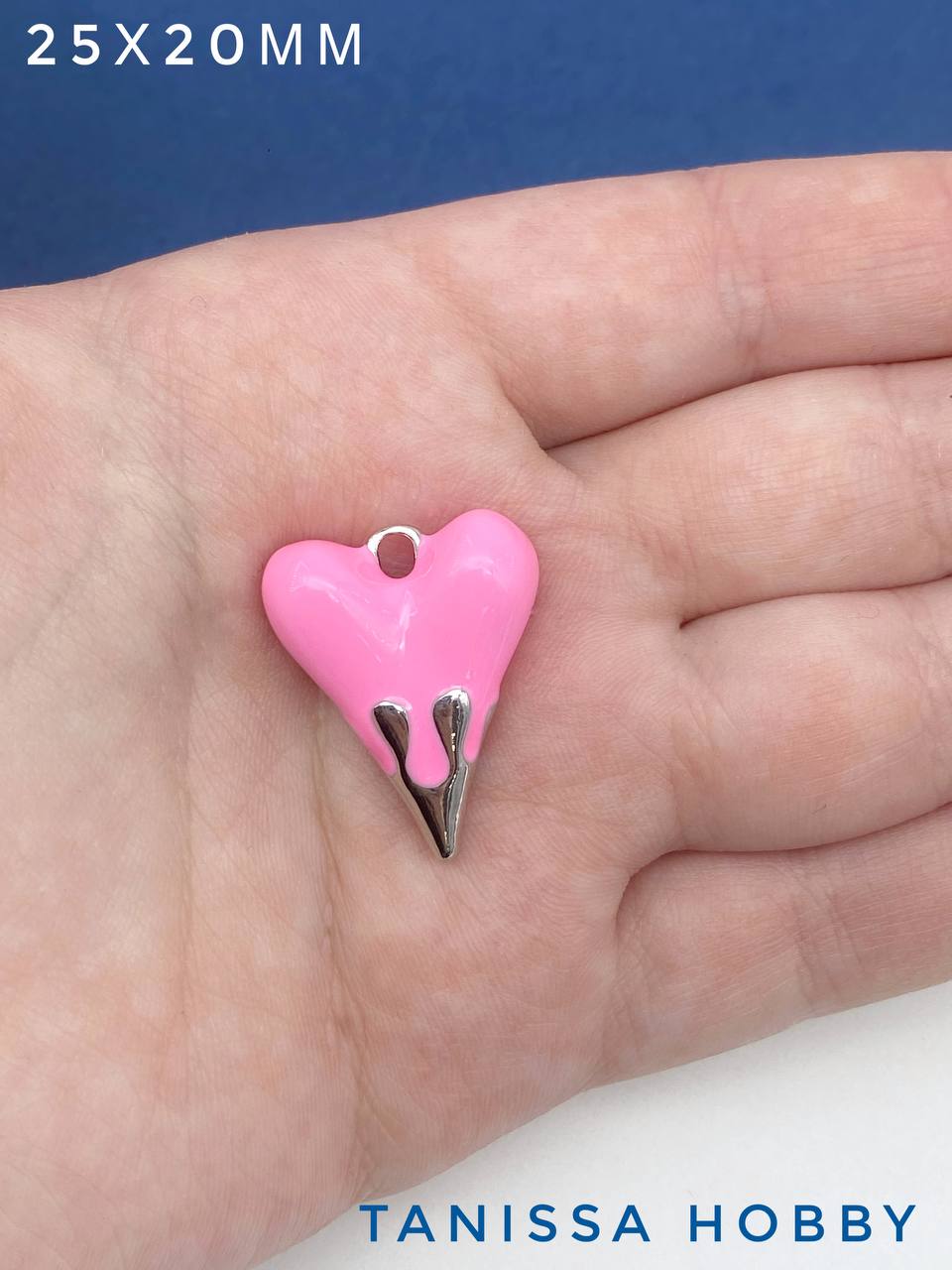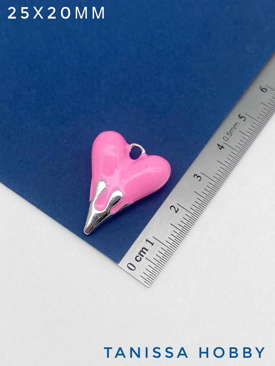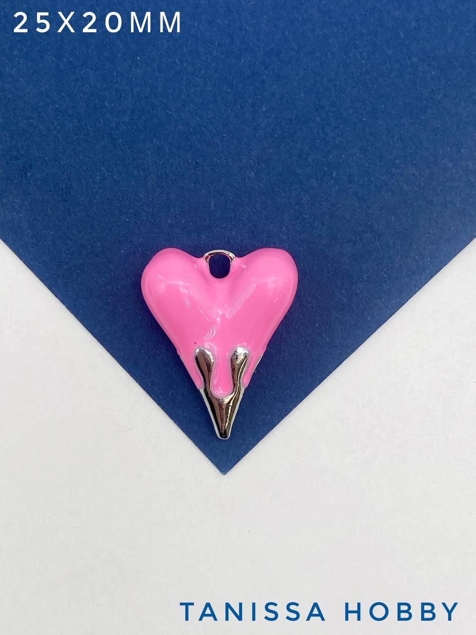 Подвеска сердце 25х20мм, розовая эмаль, родий, Д403