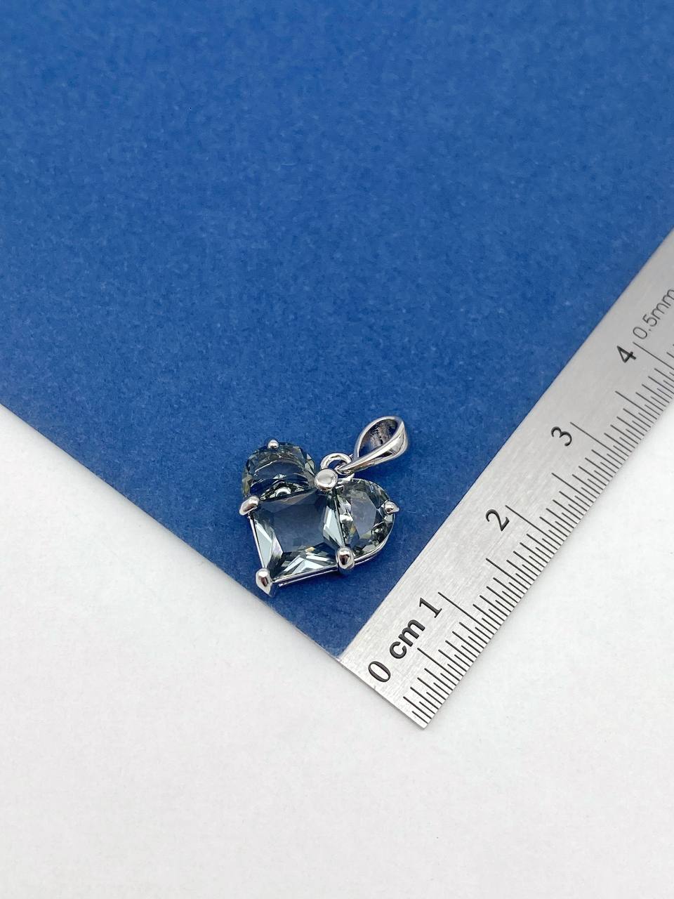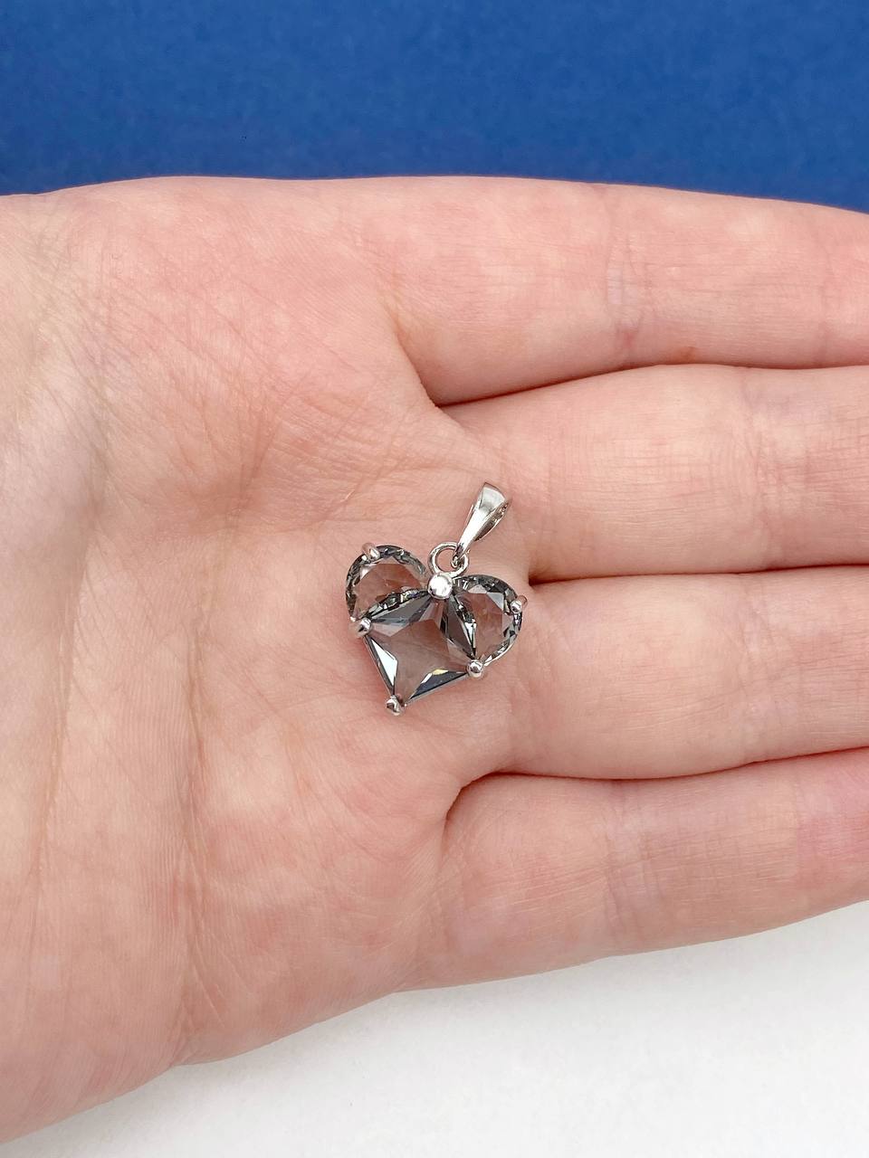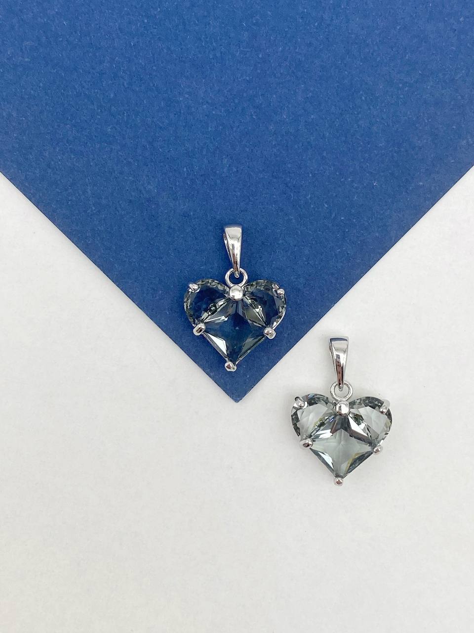 Подвеска сердце фианит серый 14мм, родий, Ю926