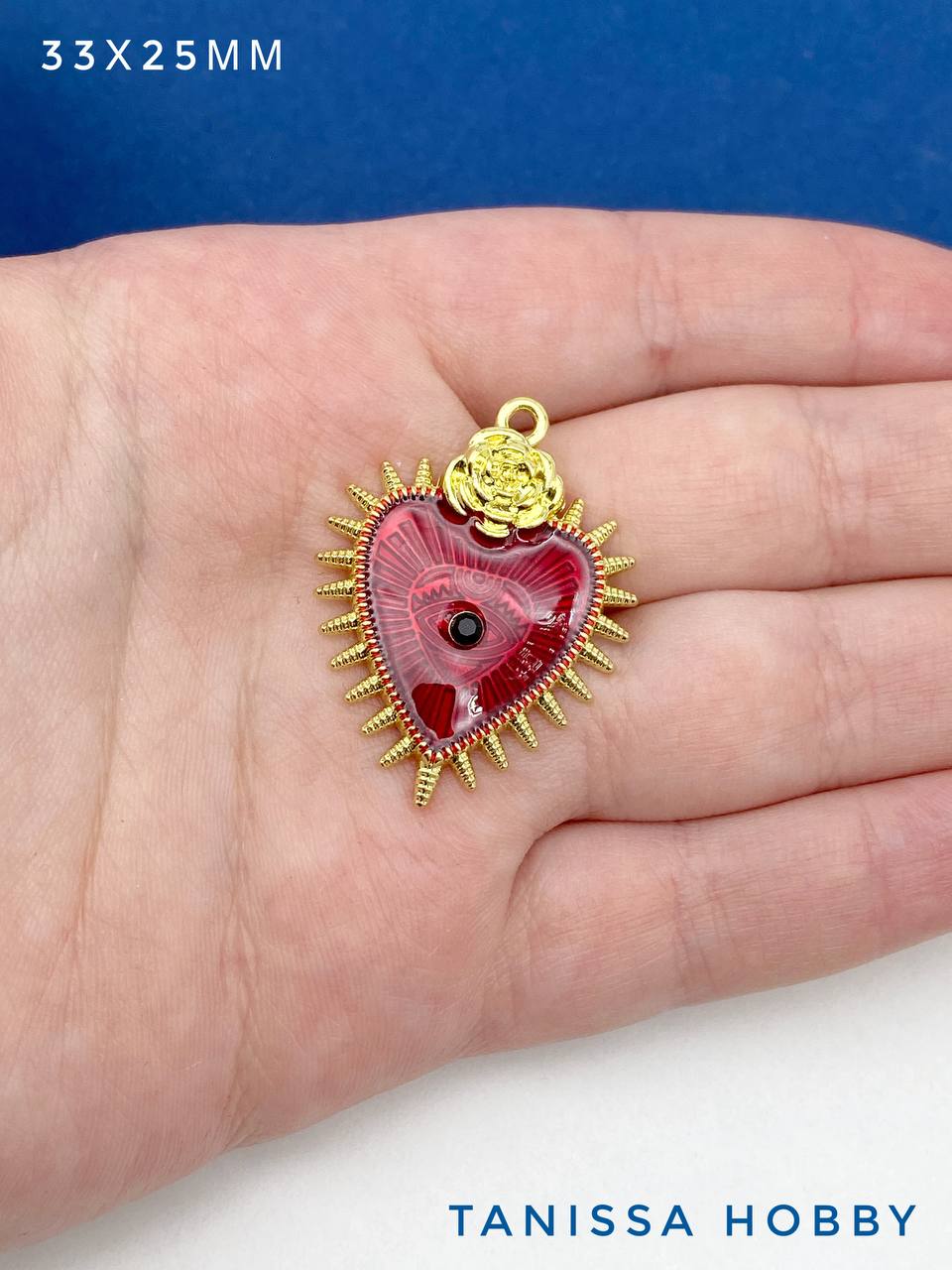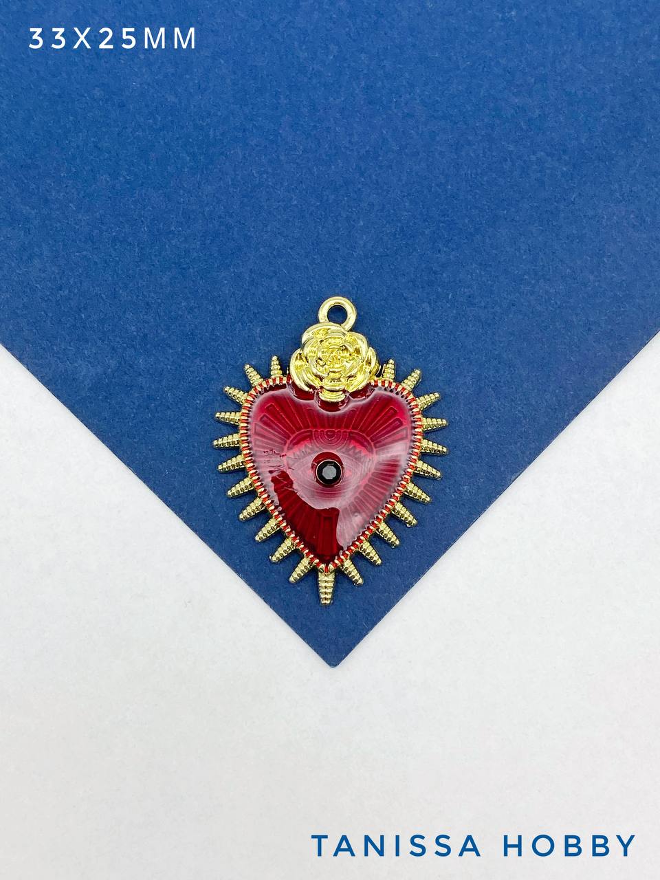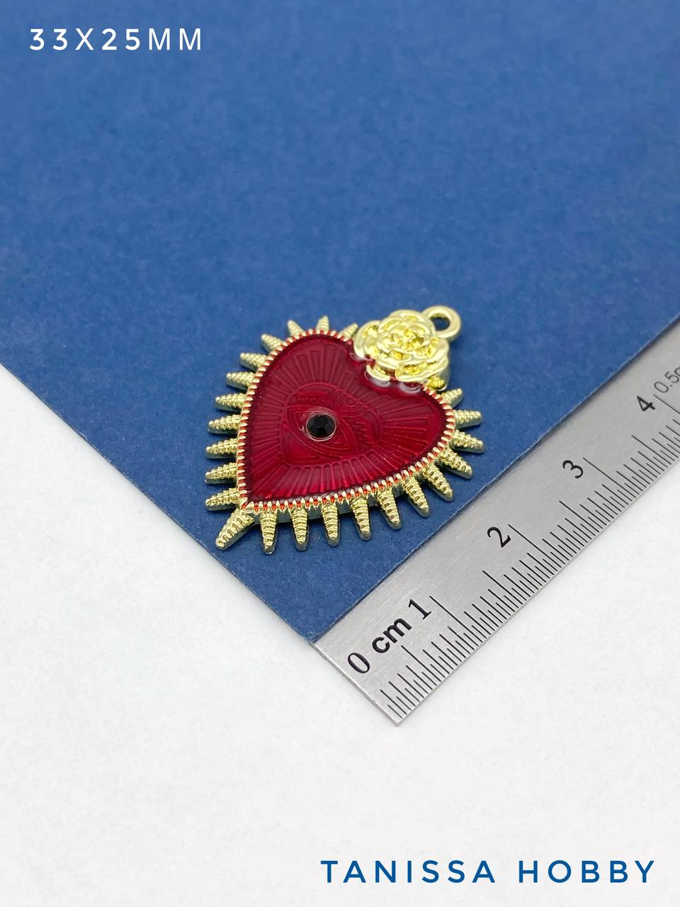 Подвеска сердце, роза и шипы, красный, позолота, Ю914