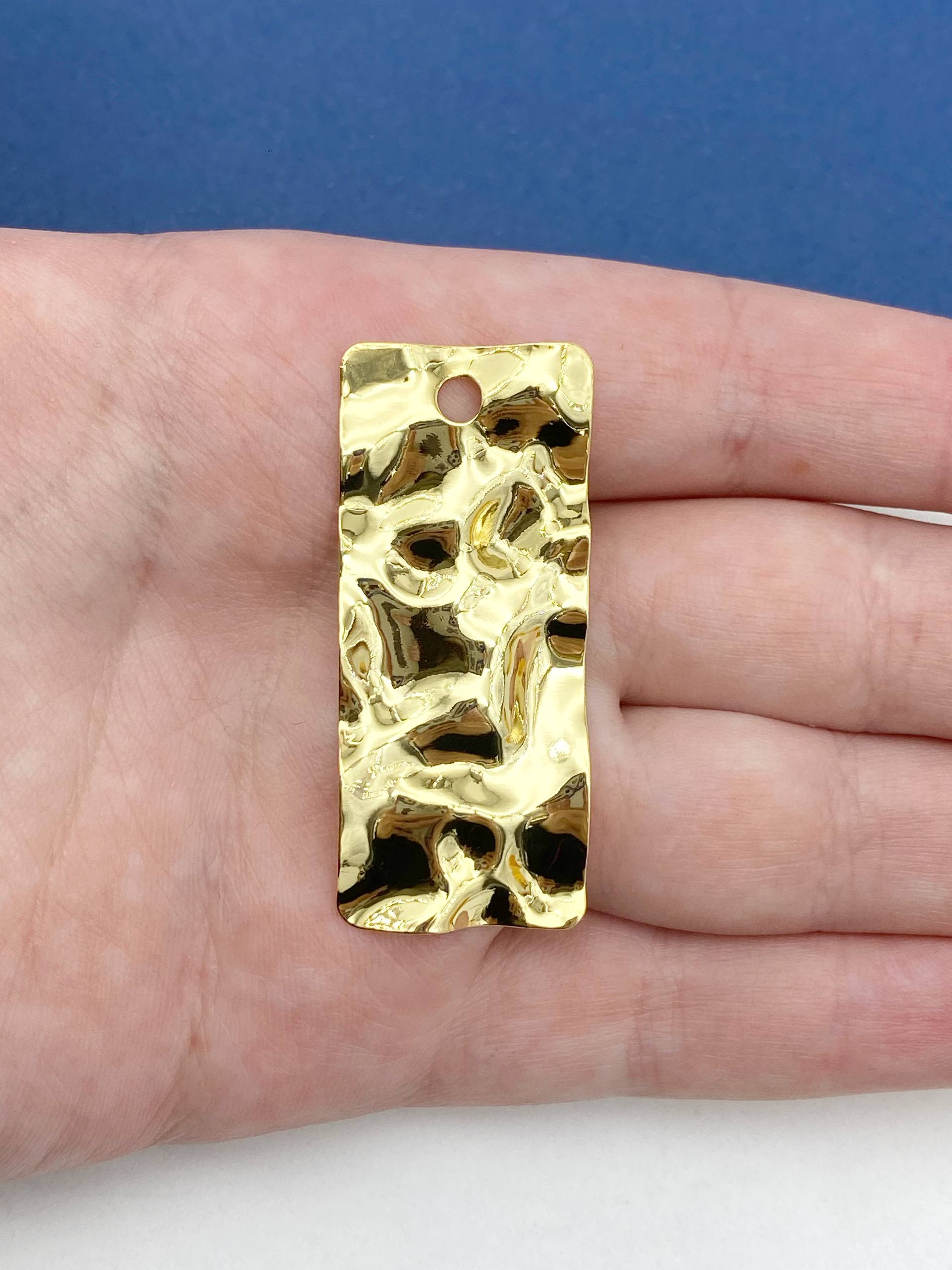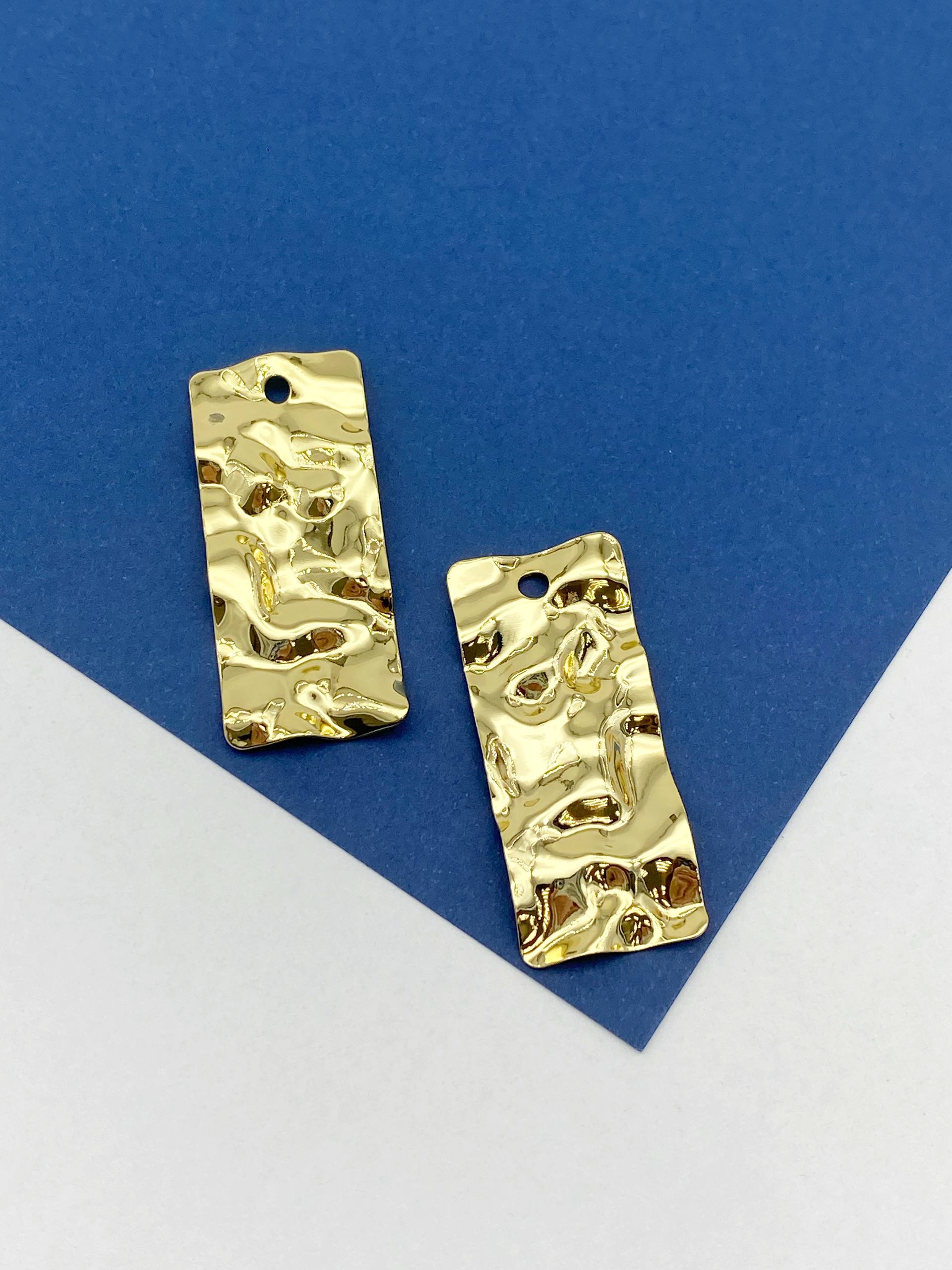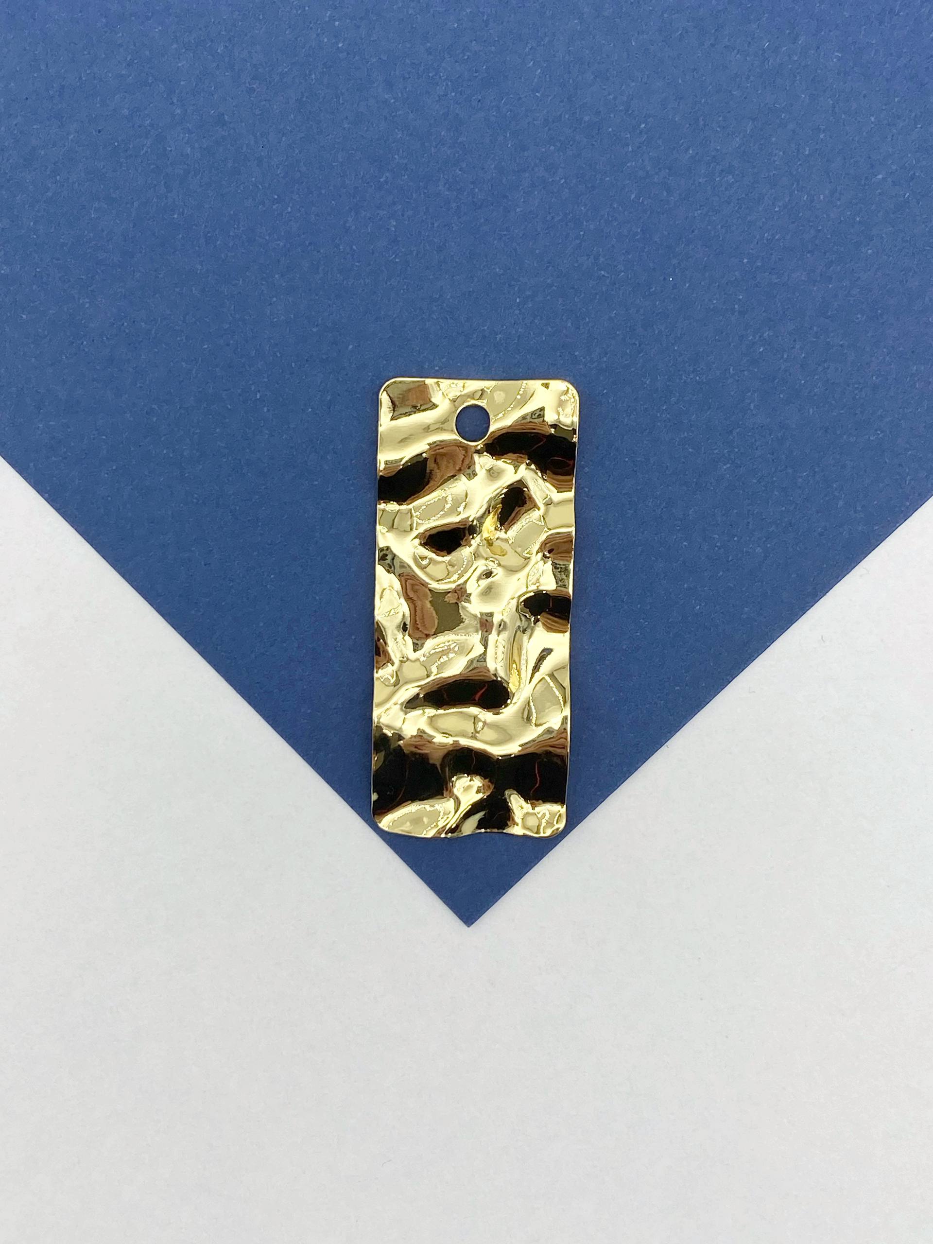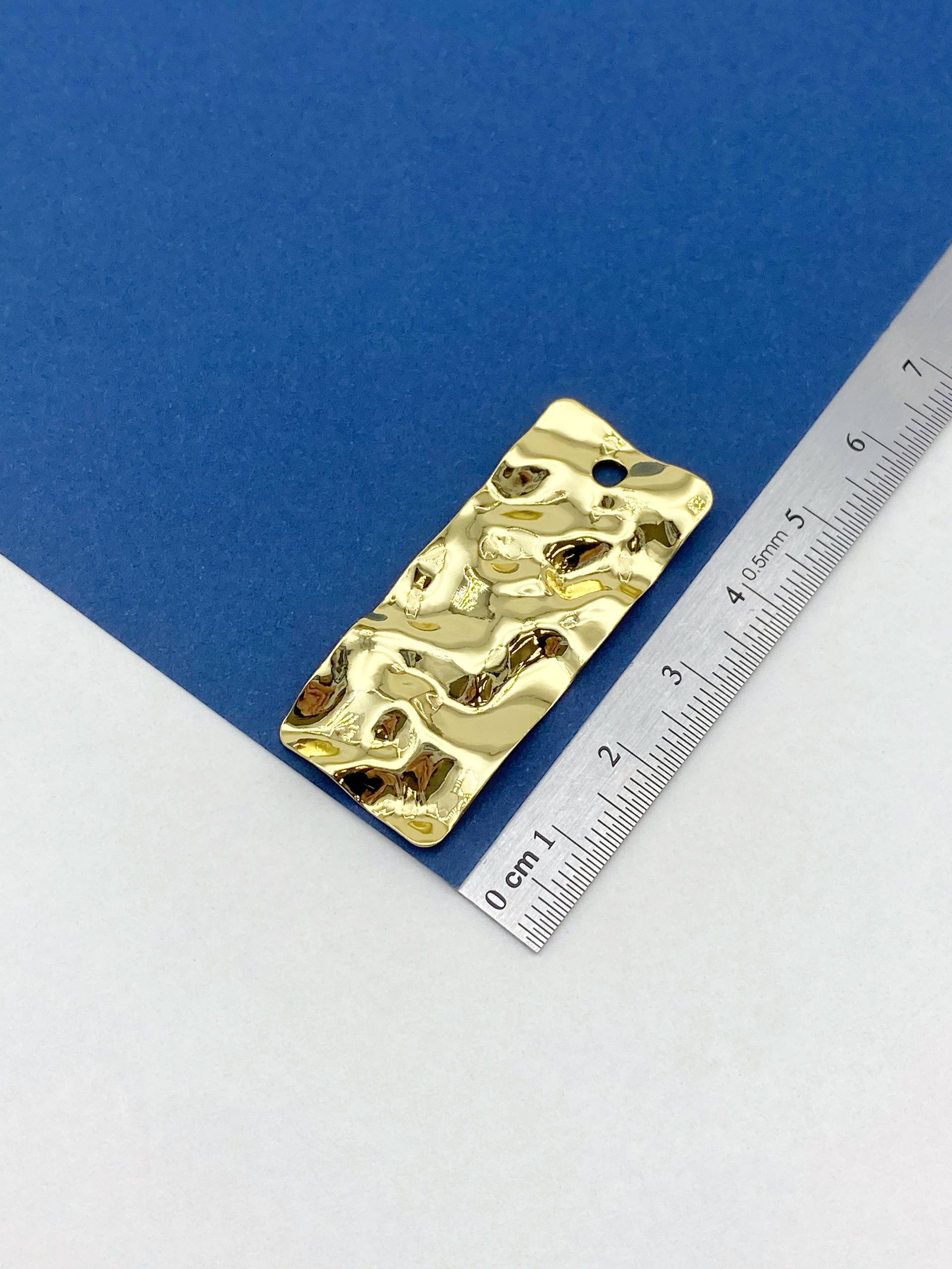 Подвеска прямоугольник, мятый металл, 44х19мм, позолота, Д507