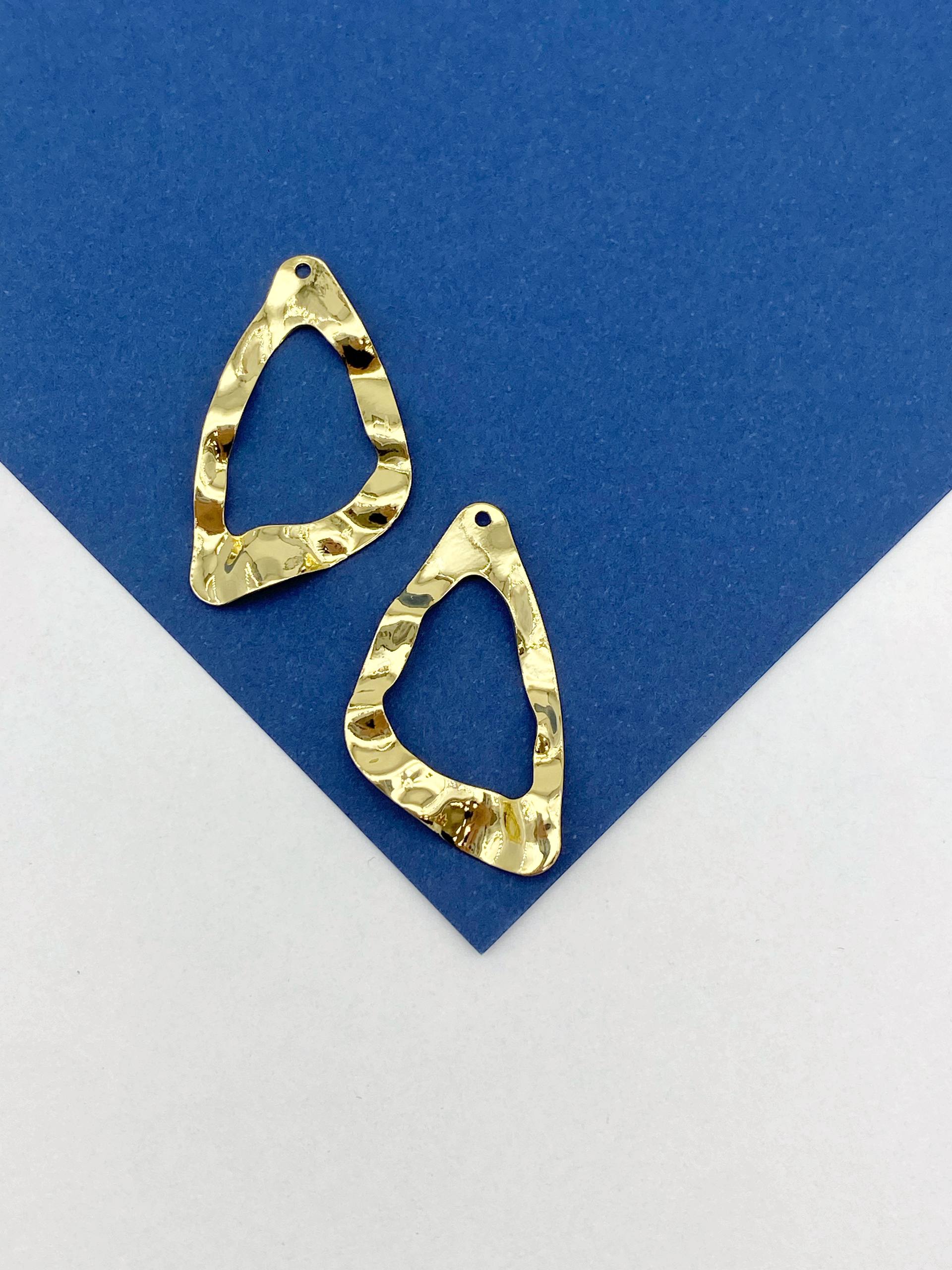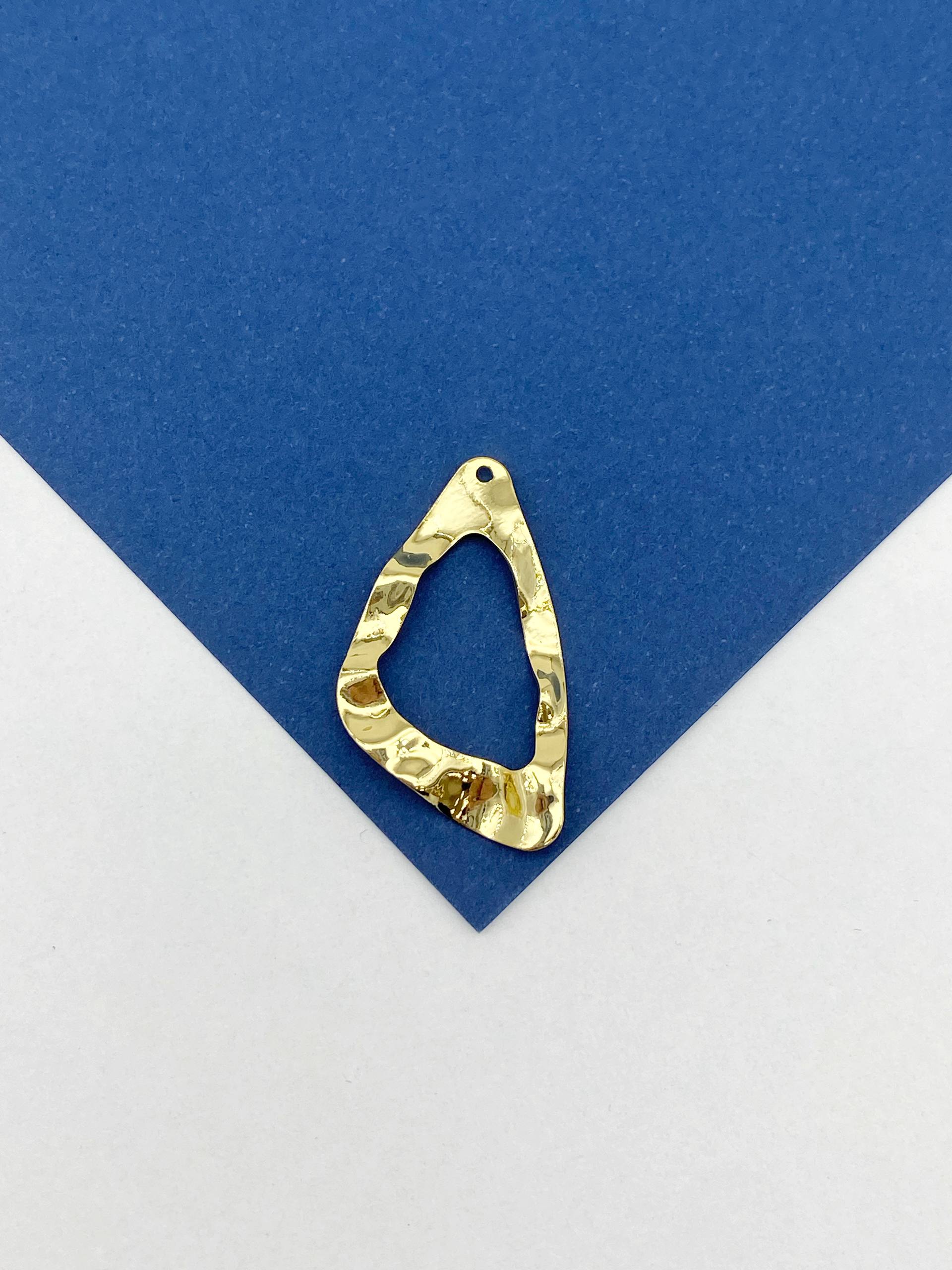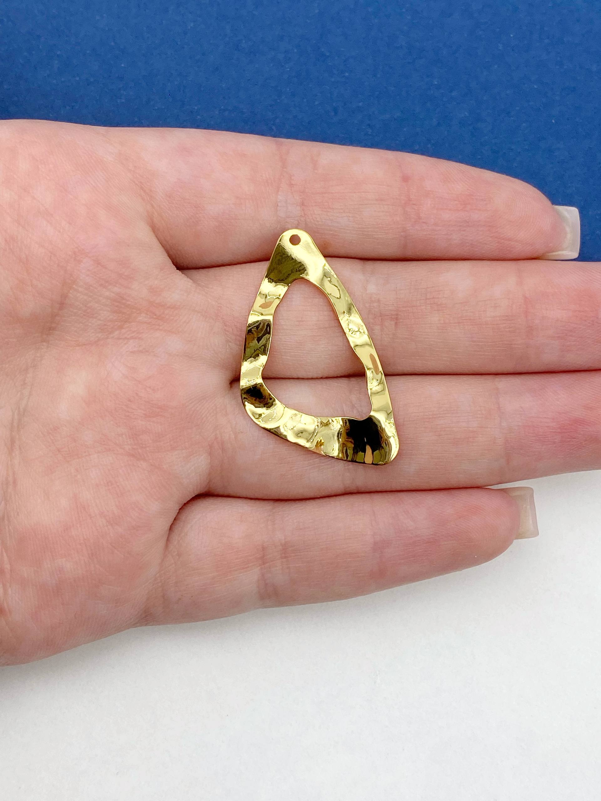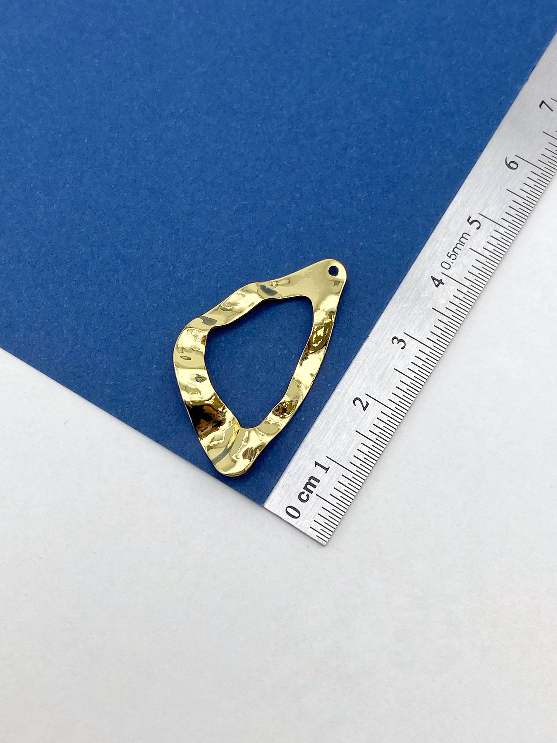-Подвеска треугольник абстракция, мятый металл, 33х19мм, позолота, Д508