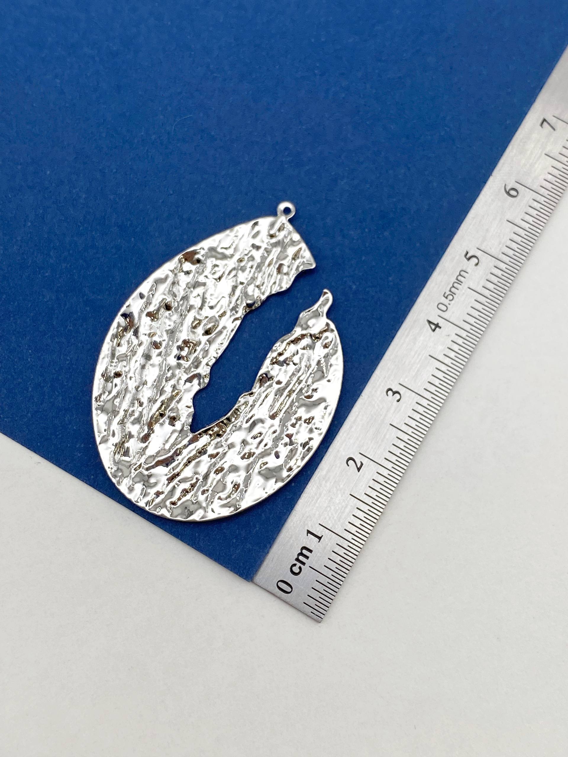 Подвеска капля абстракция, мятый металл, 40х33мм, родий, Д503