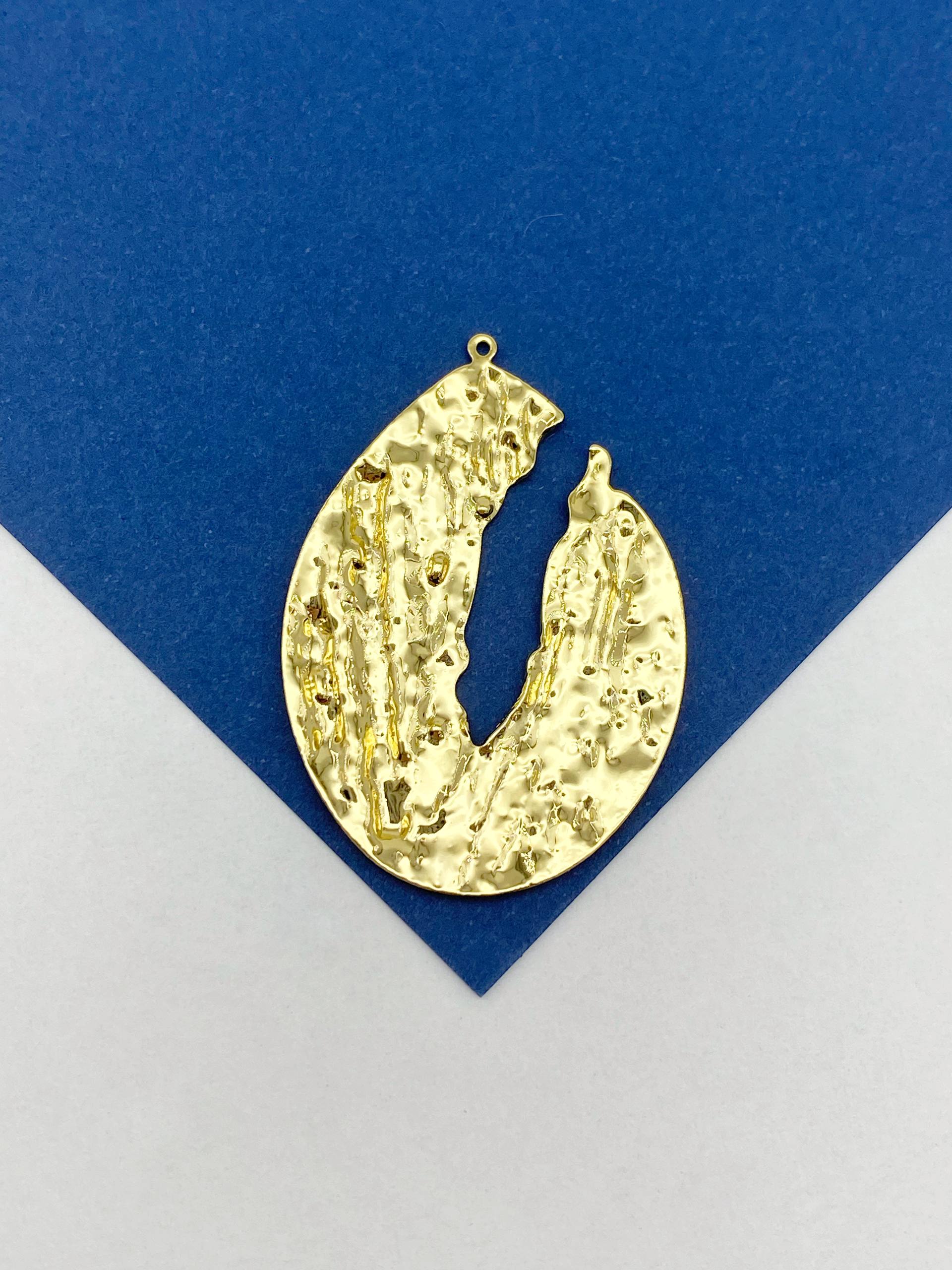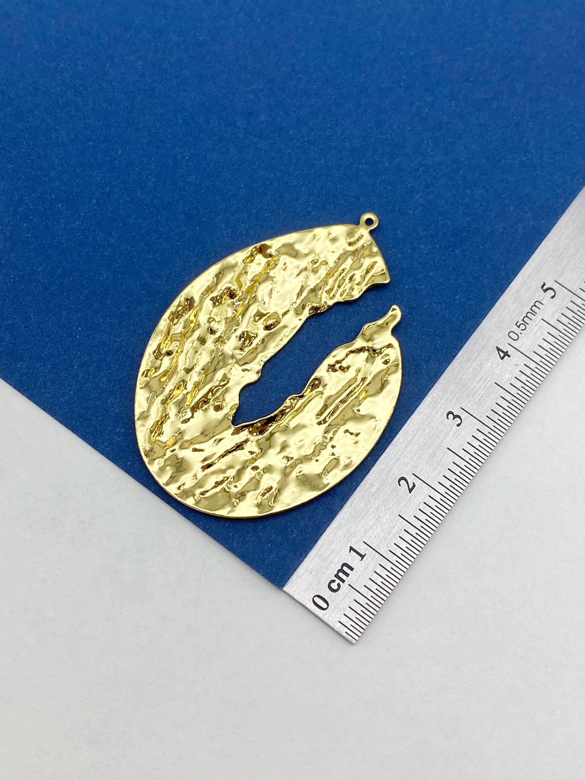 Подвеска абстракция, мятый металл, 40х33мм, позолота, Д509