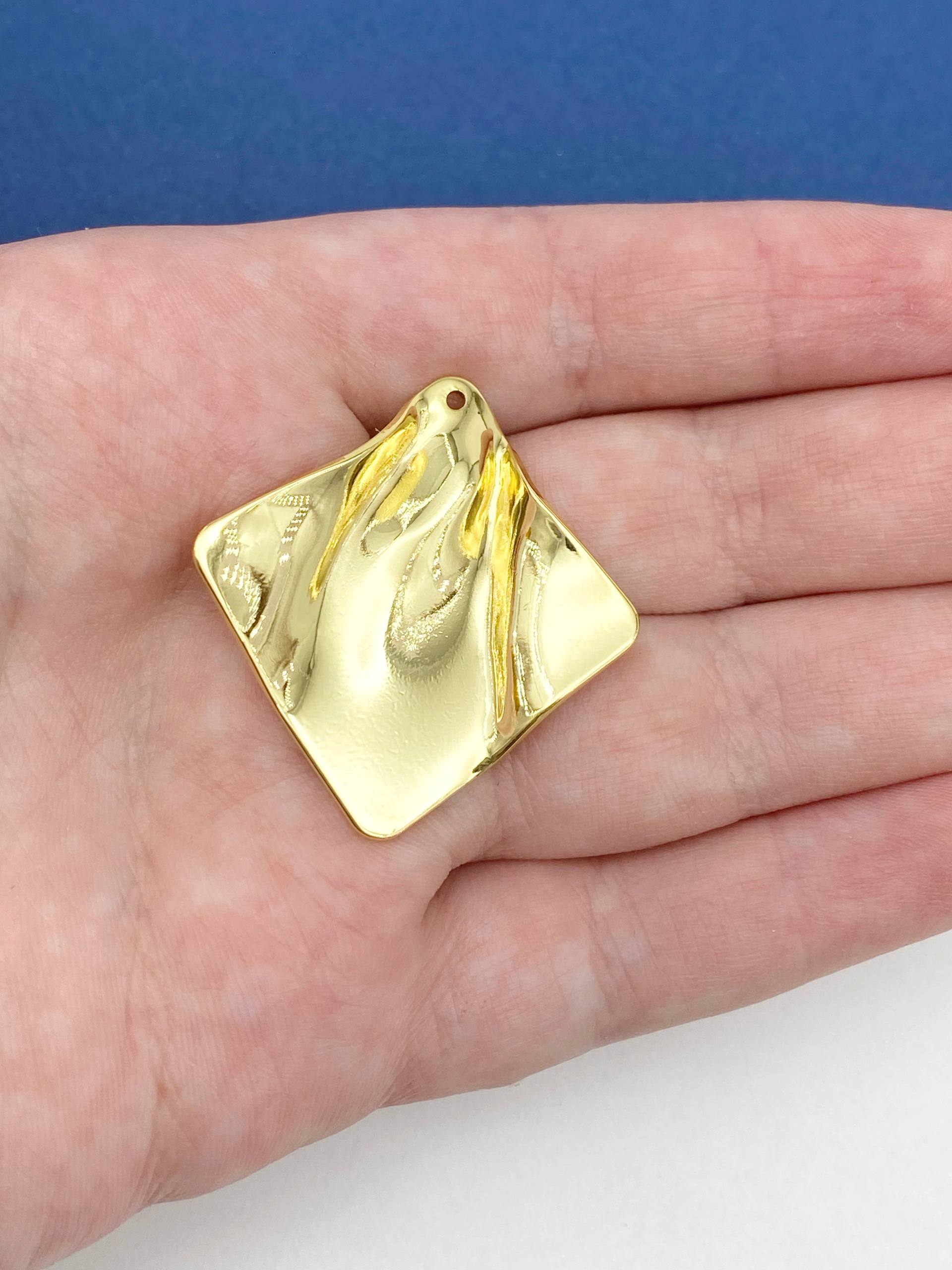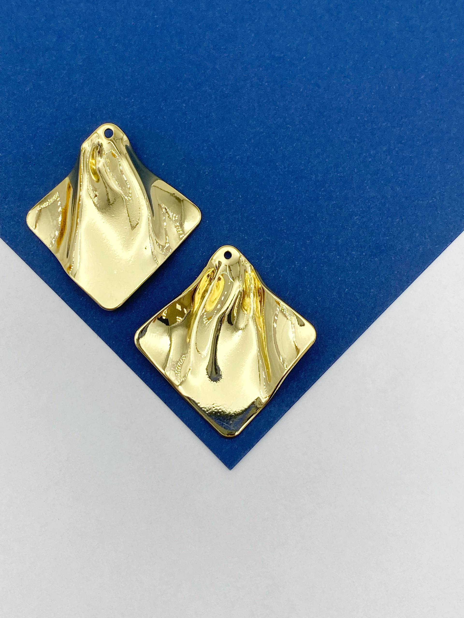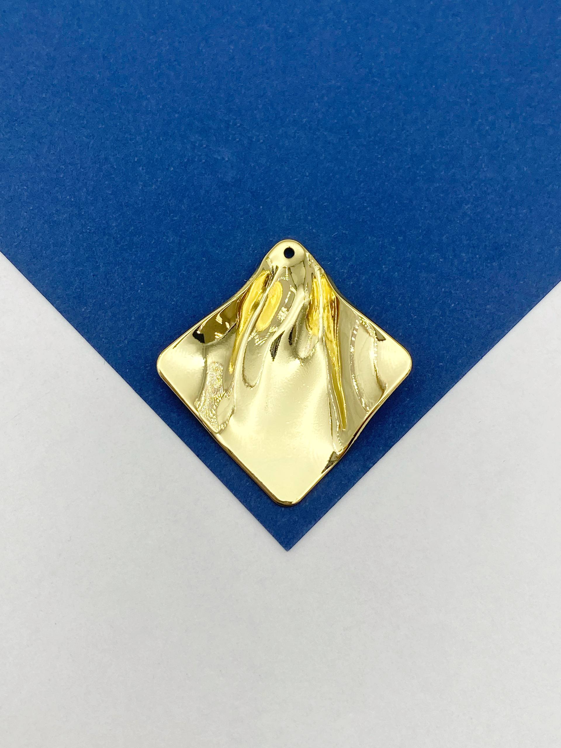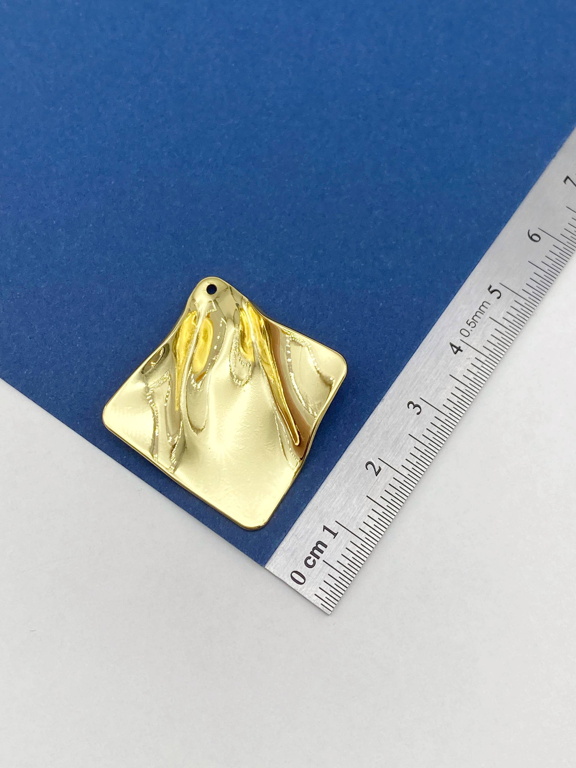 Подвеска квадрат ромб, мятый металл, 25х25мм, позолота, Д510