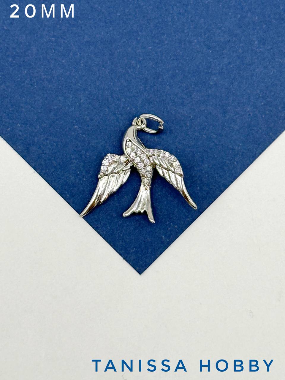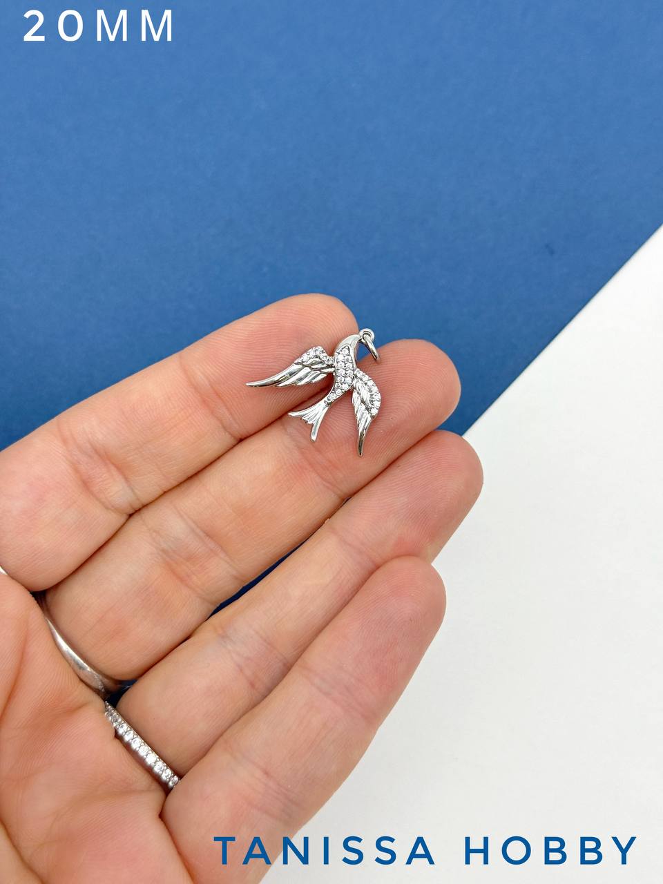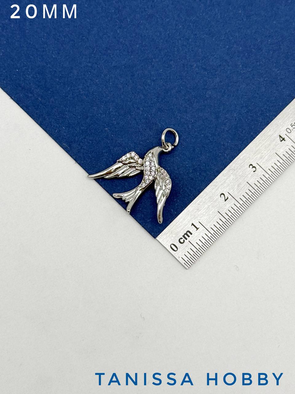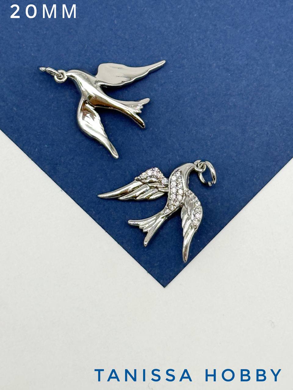 Подвеска птица ласточка, 18х21мм, родий, Д506