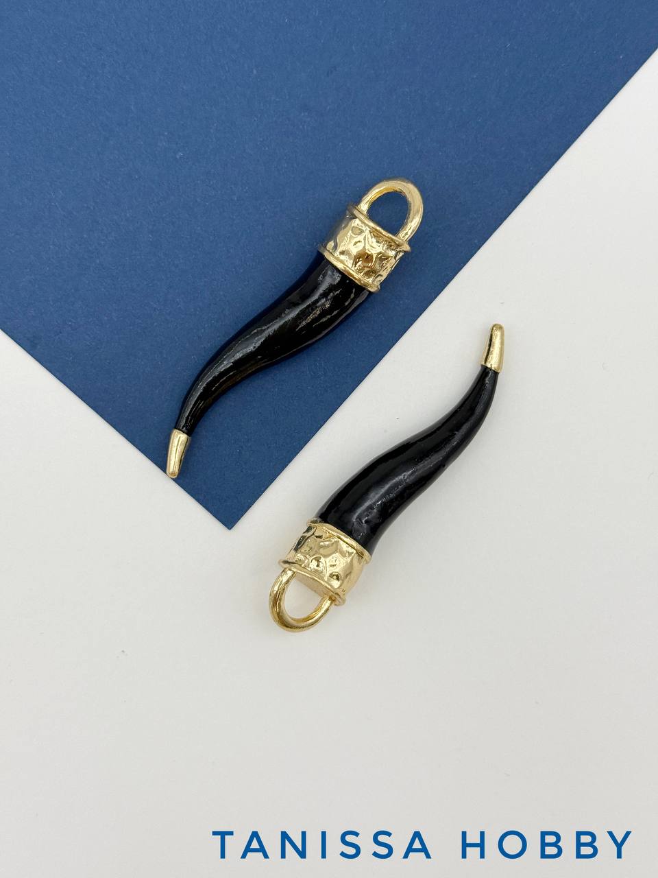 Подвеска перец Чили, черный, 65х13мм, позолота, Д521