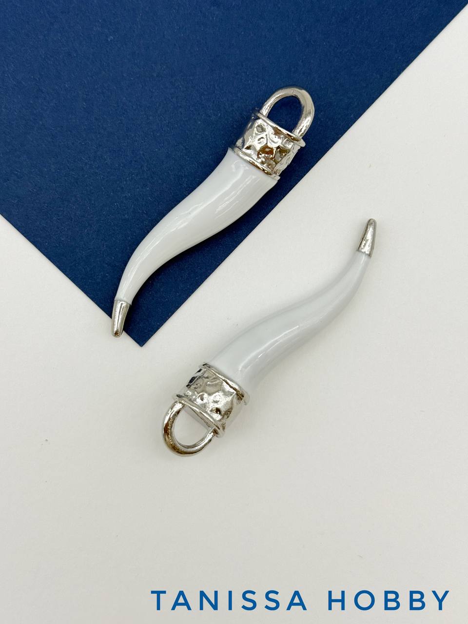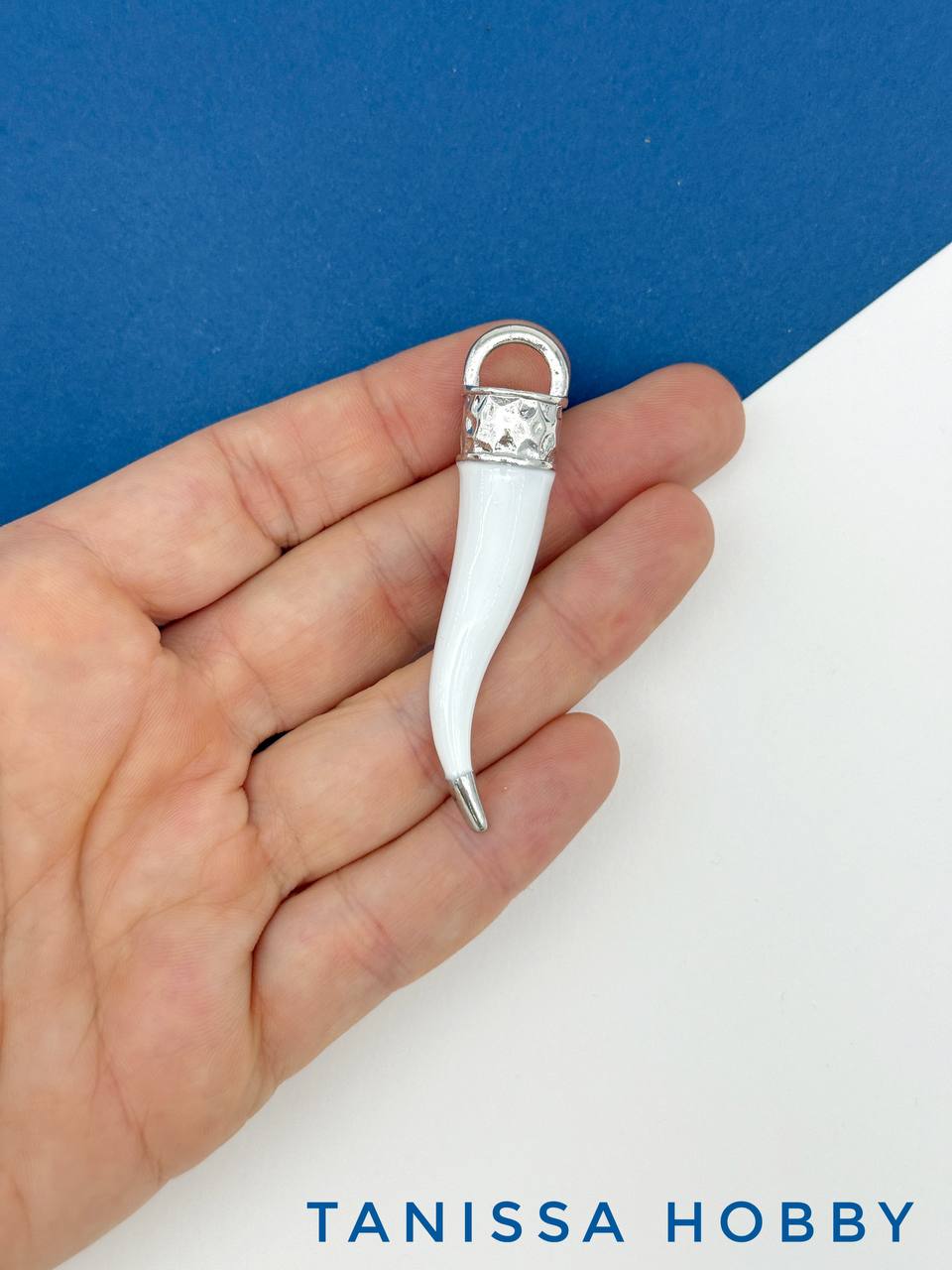 Подвеска перец Чили, белый, 65х13мм, родий, Д516