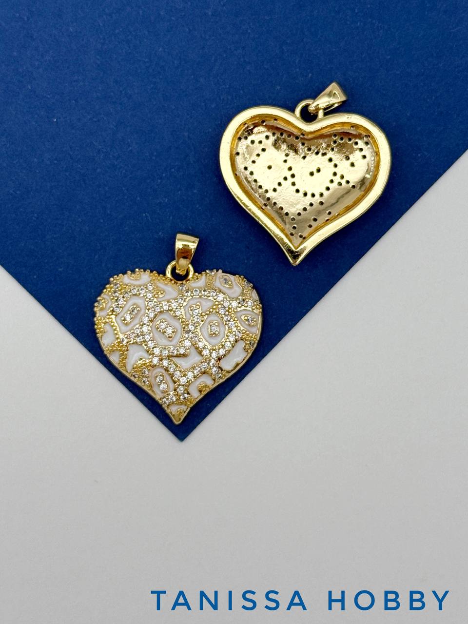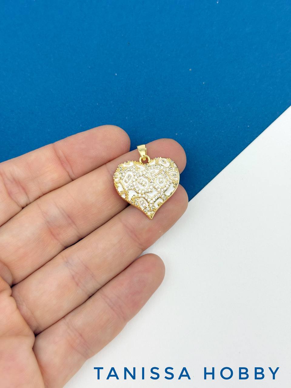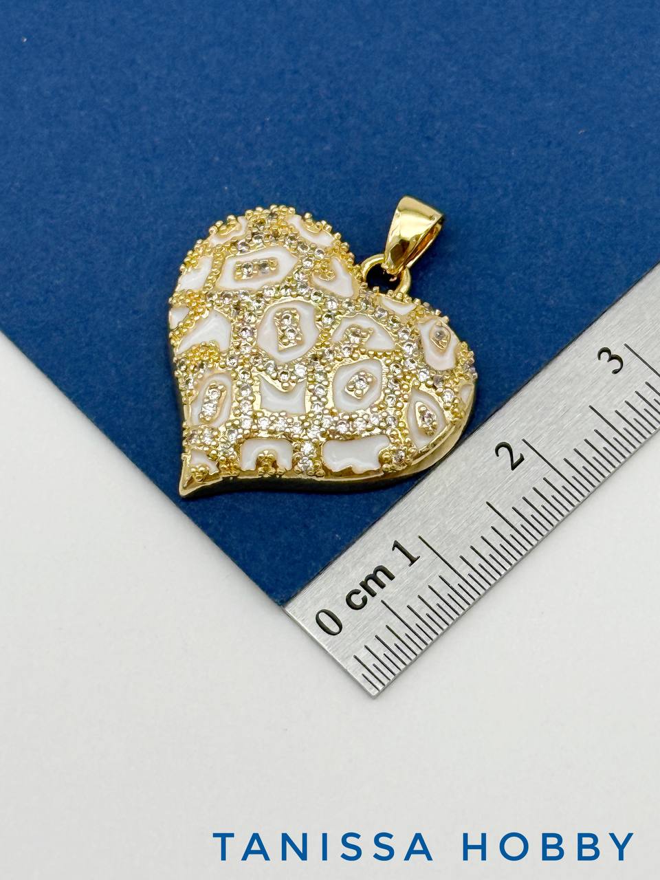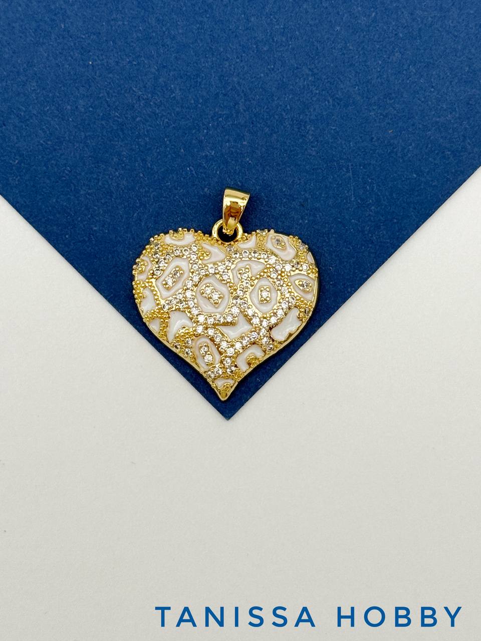 Подвеска сердце леопард белый с фианитами, 23мм, позолота, Д532