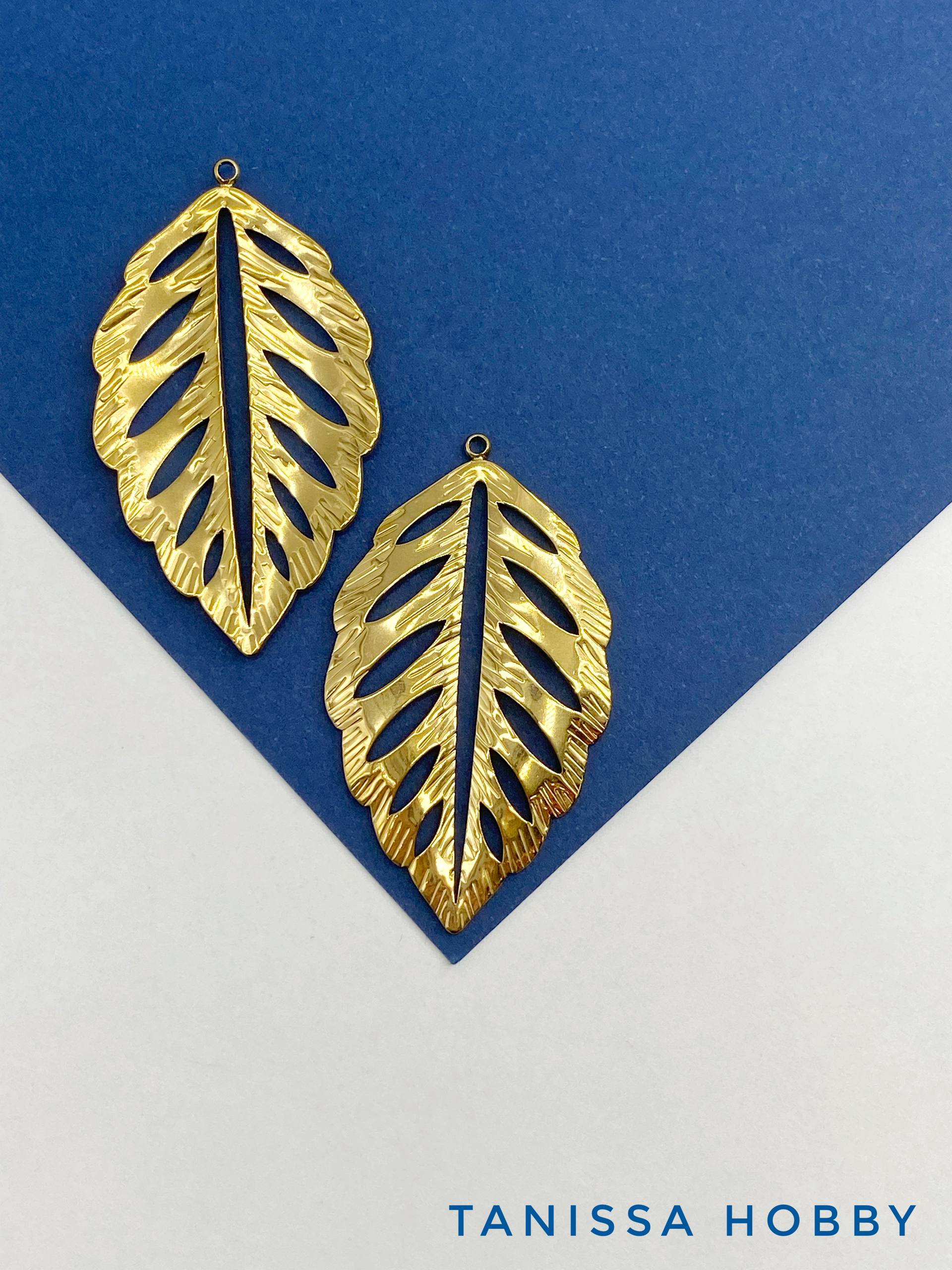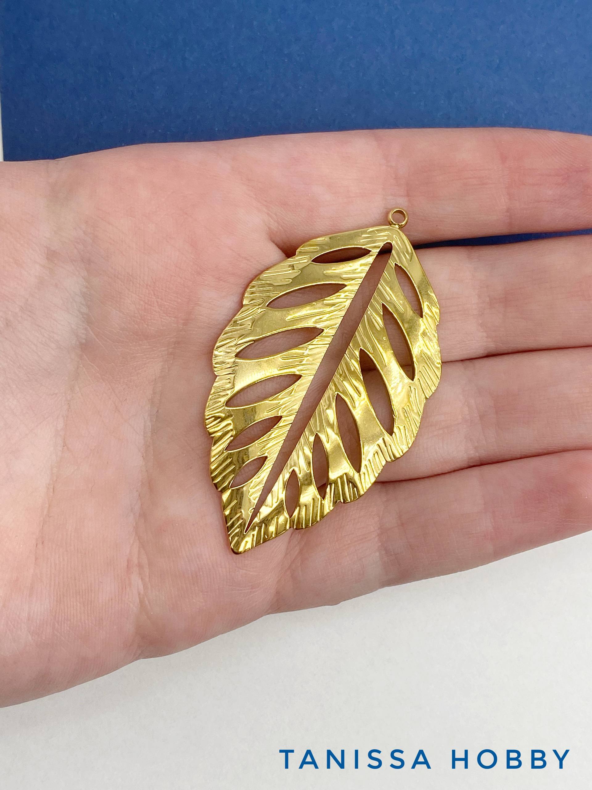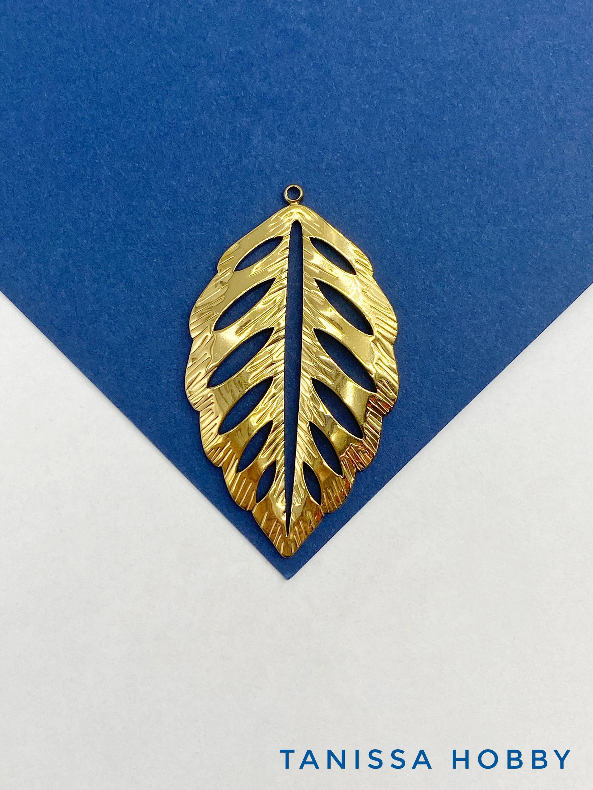 Подвеска листик, 53х31мм, сталь, позолота, Ш334