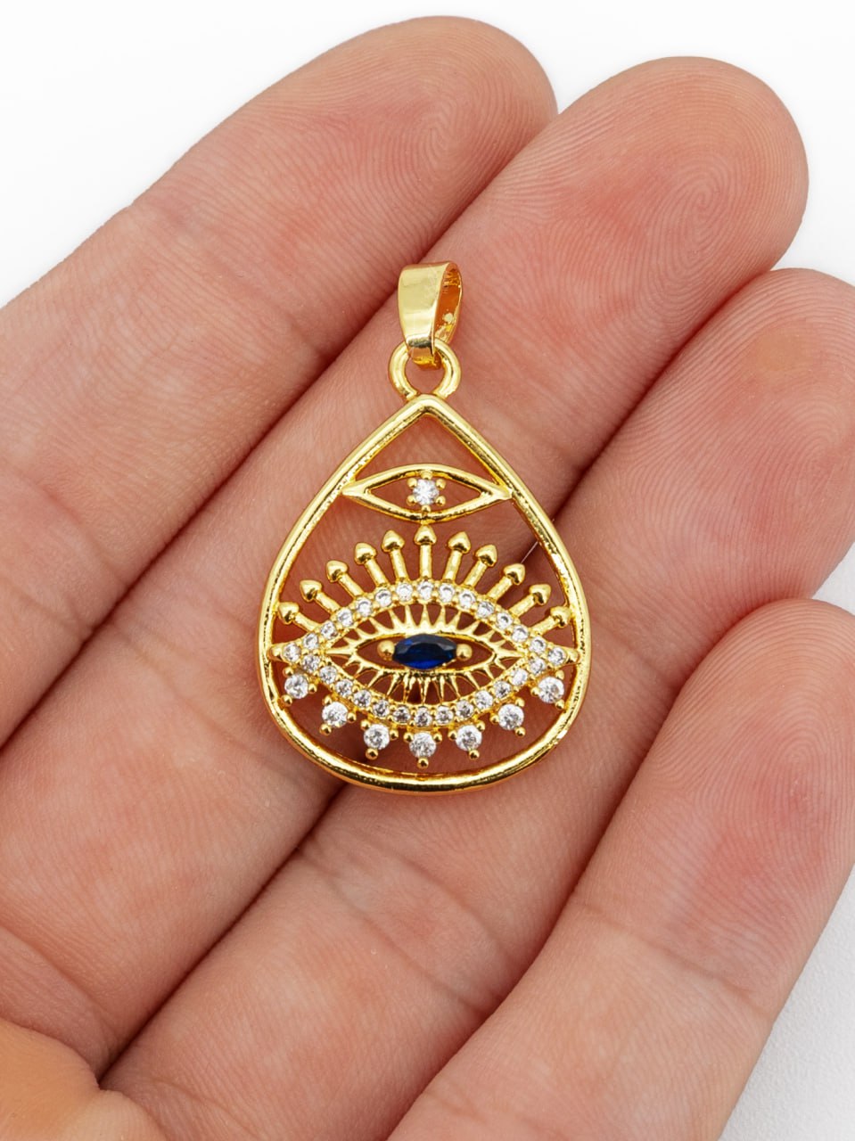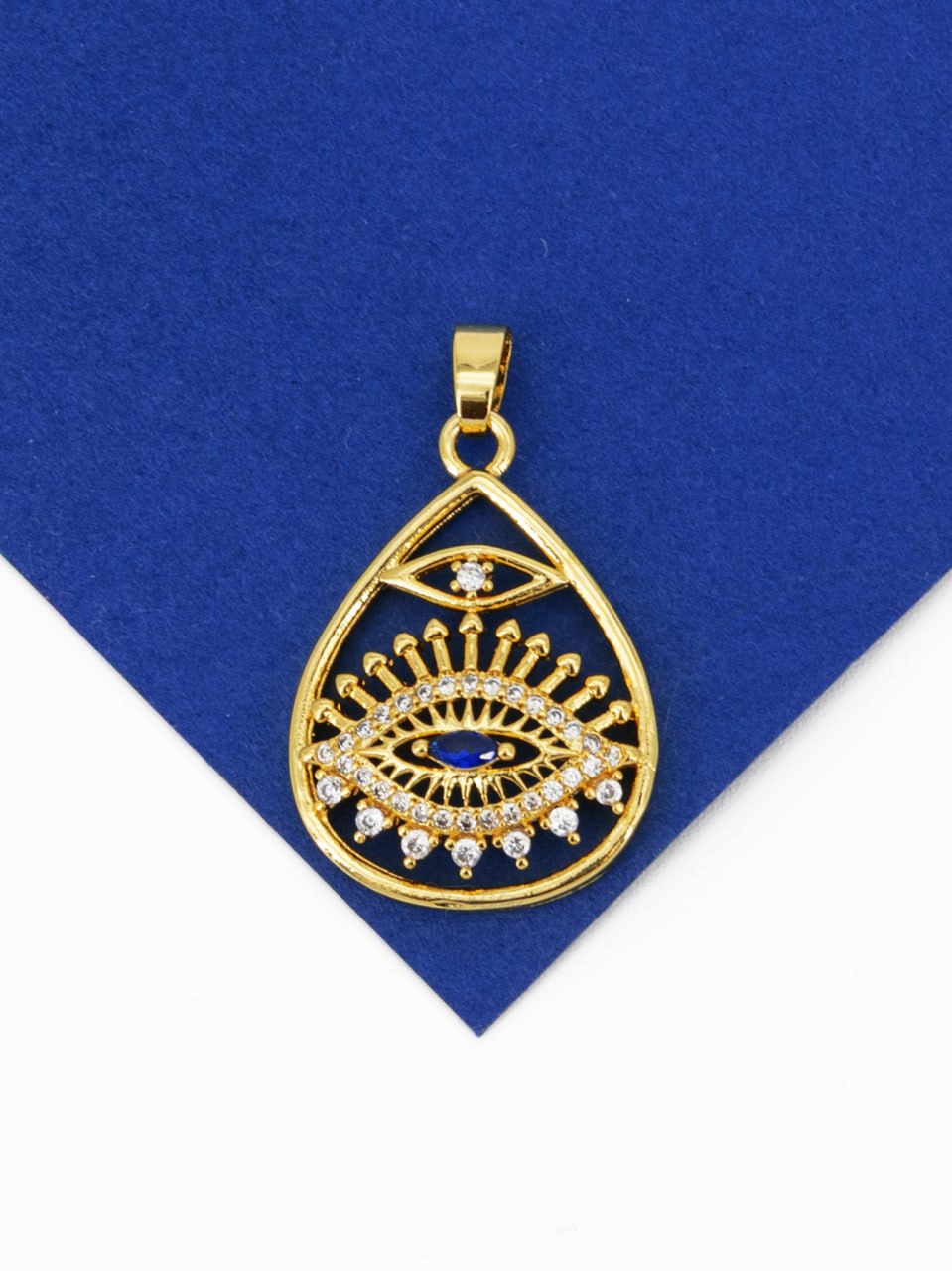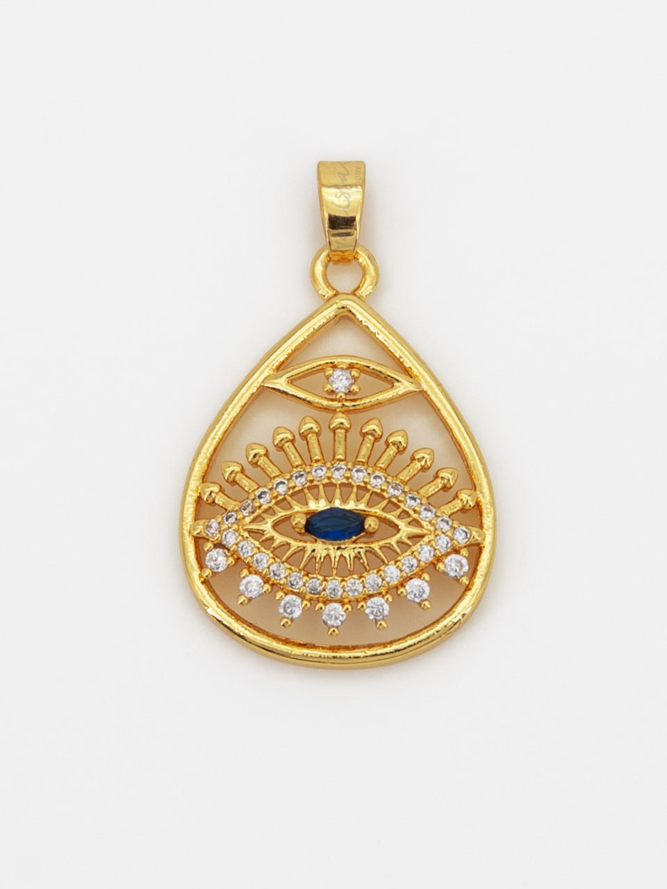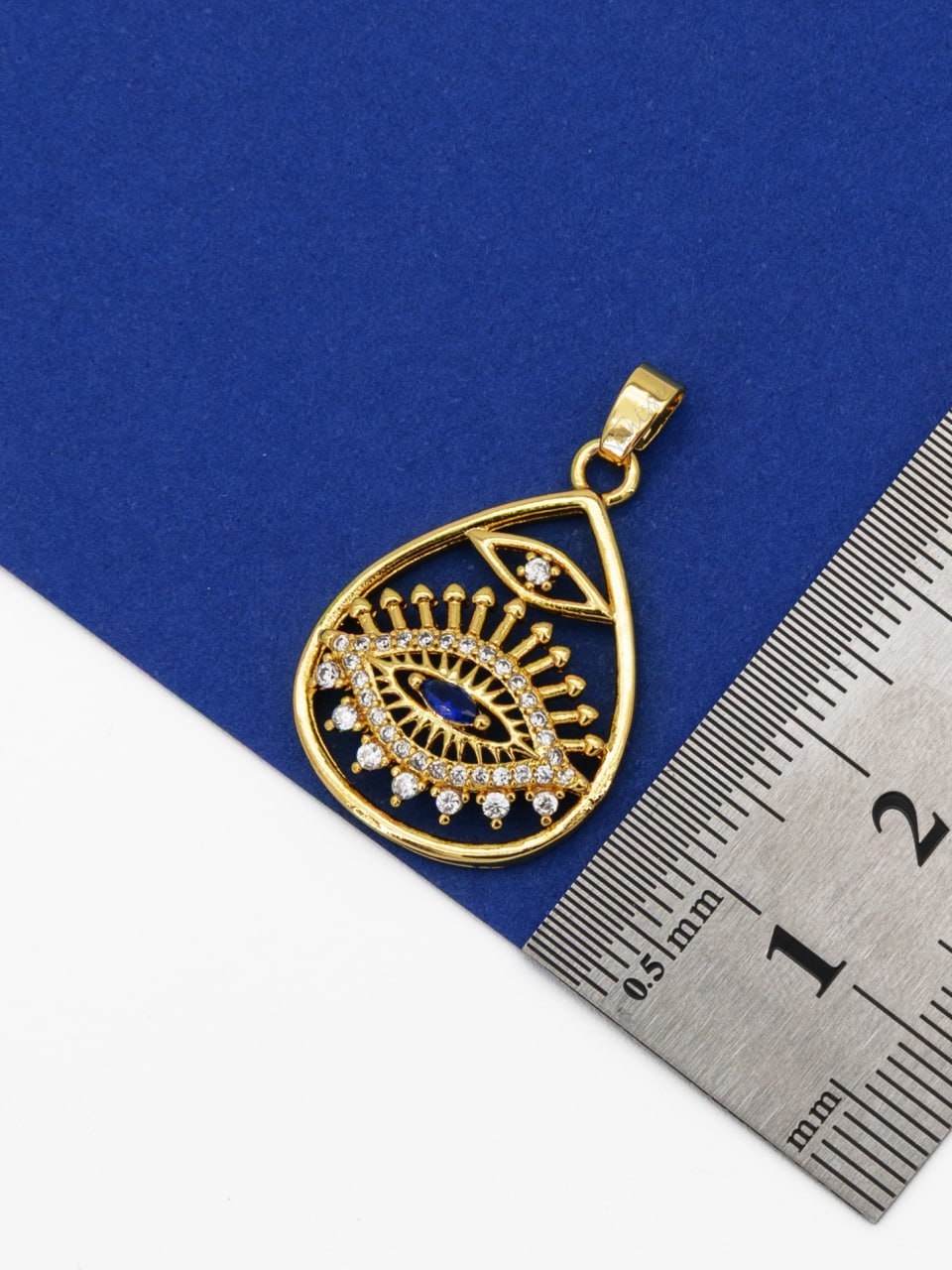 Подвеска капля глаз с фианитами, 26х19мм, позолота, С211