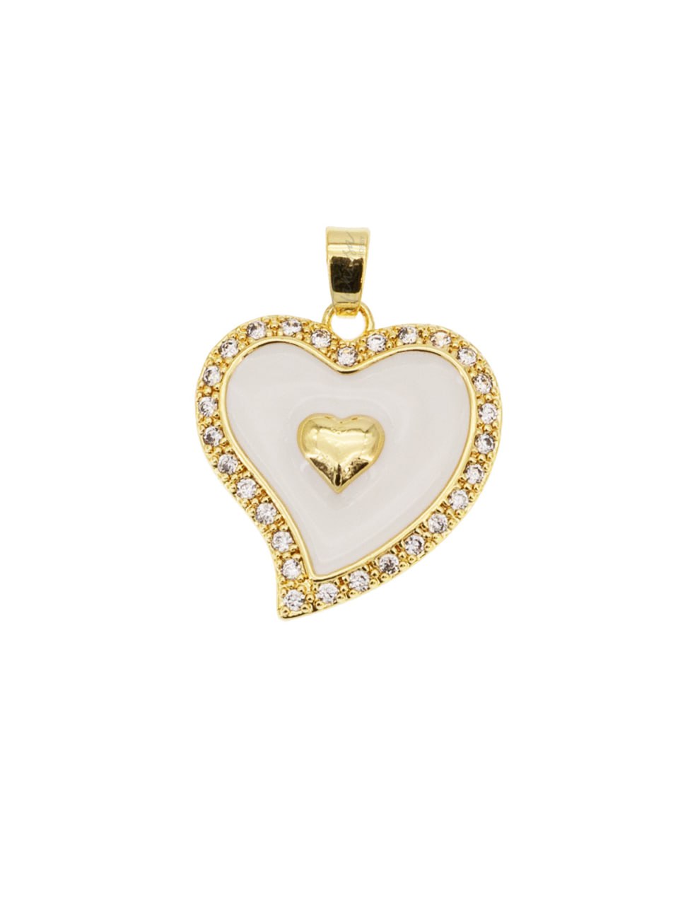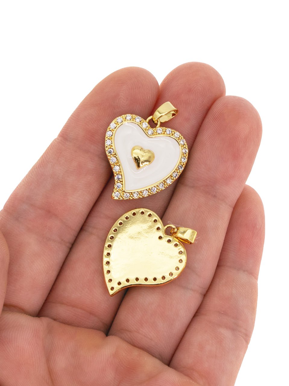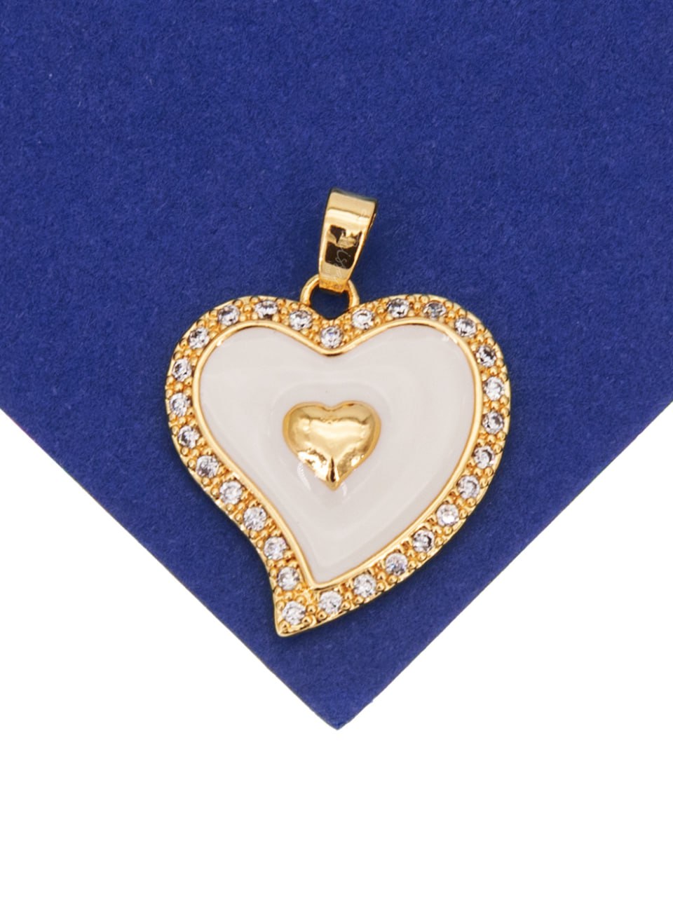 Подвеска сердце белая эмаль, 22мм, позолота, С521