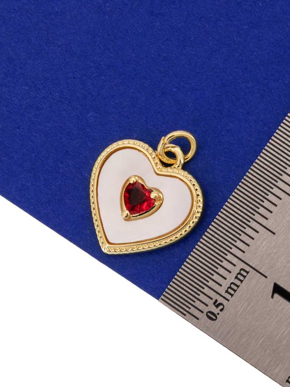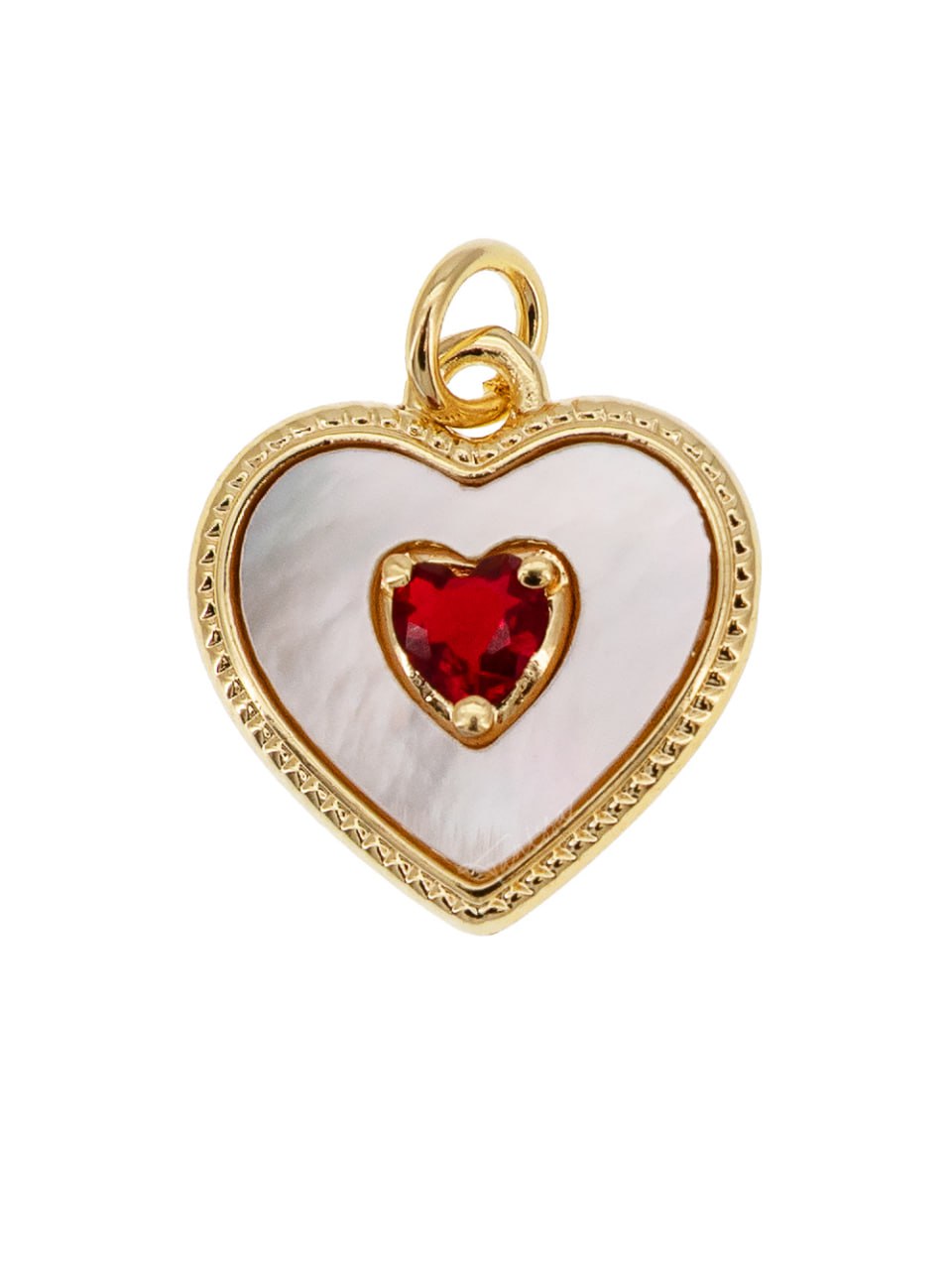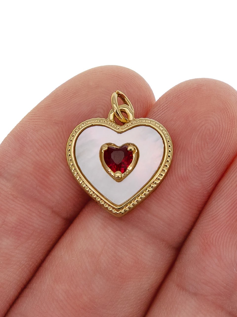 Подвеска сердце перламутр красный фианит, 15мм, позолота, Ю219
