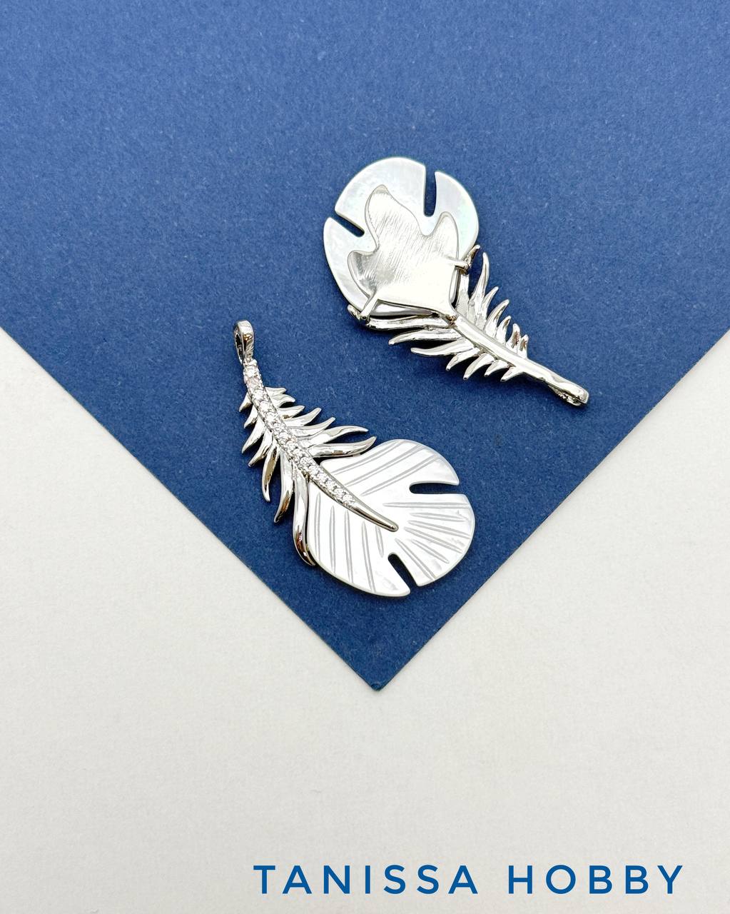 Подвеска перо, перышко, перламутр, родий, Д528