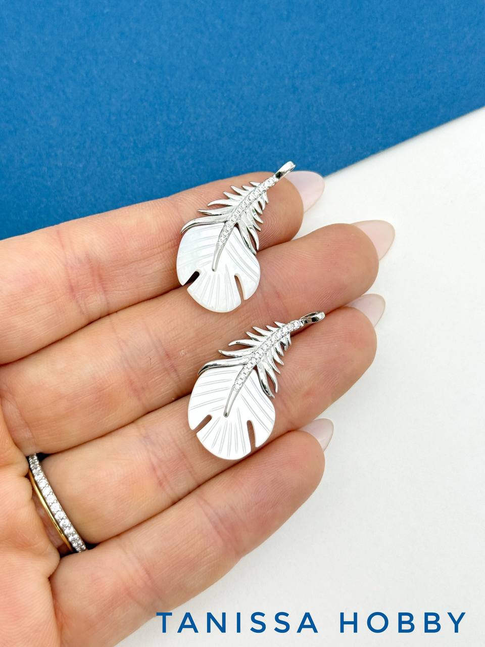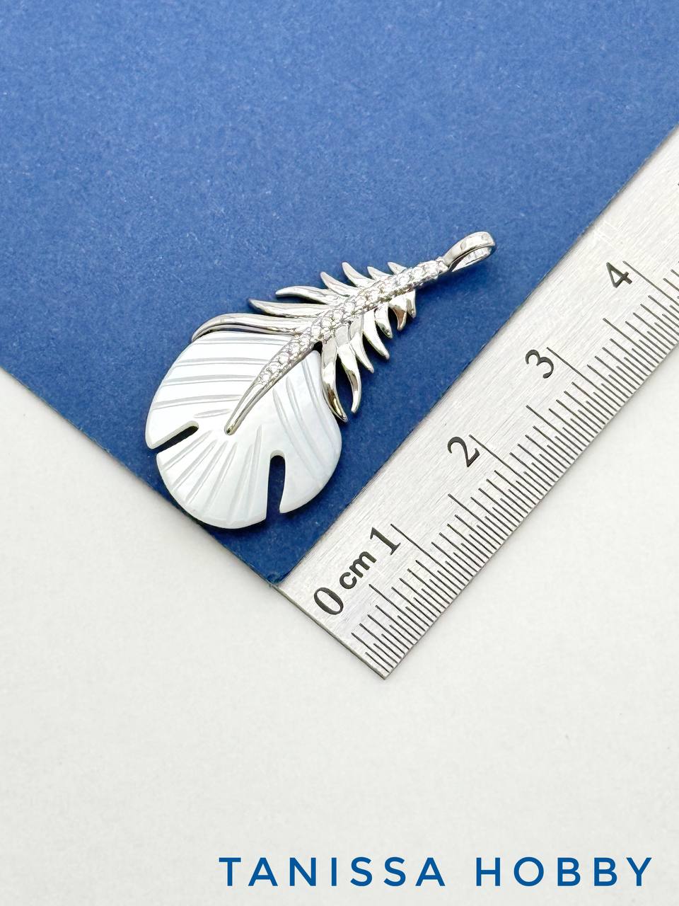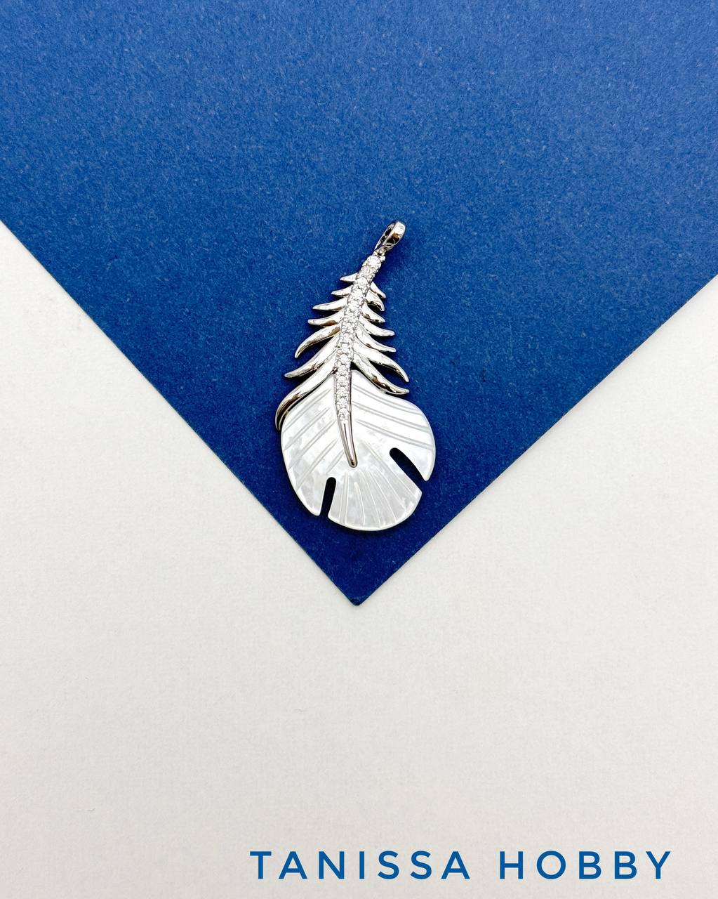 -Подвеска перо, перышко, перламутр, родий, Д528