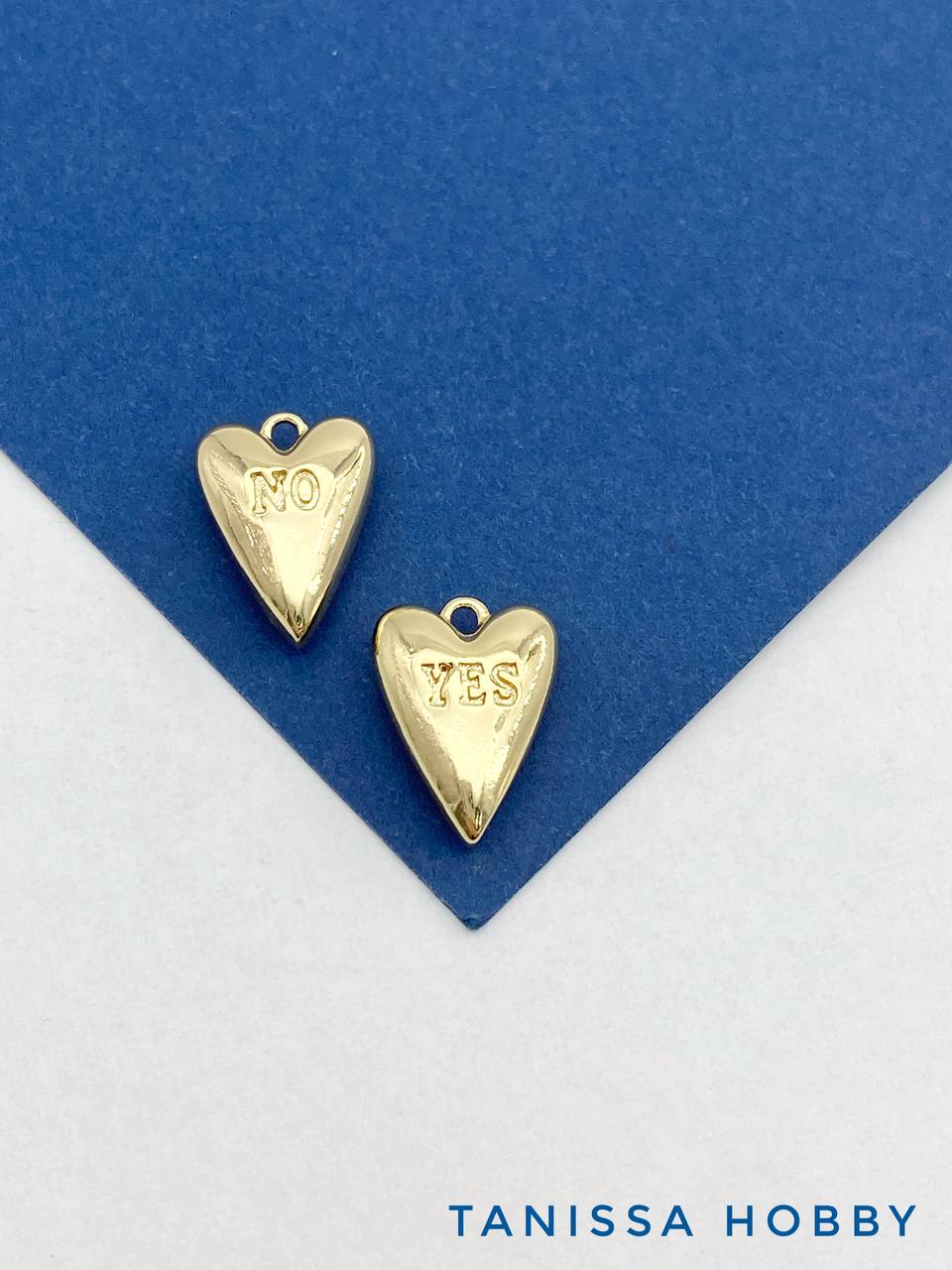 Подвеска сердце YES/NO, 16х11мм, позолота, А107