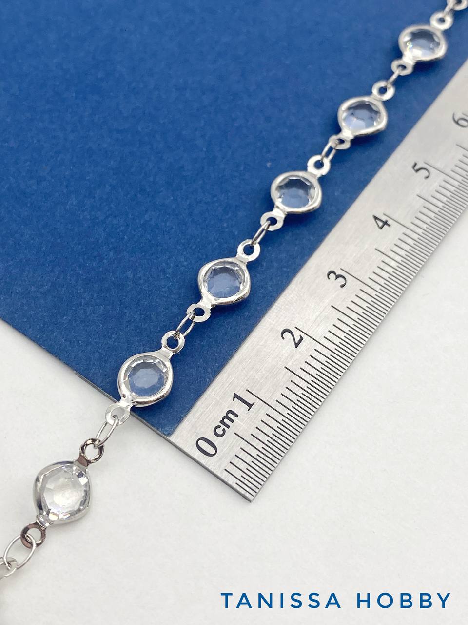 Цепочка тонкая, хрусталь 7мм, прозрачный, 50см, родий, СН238