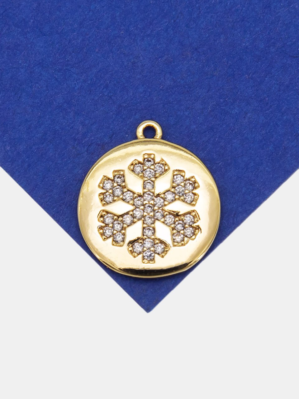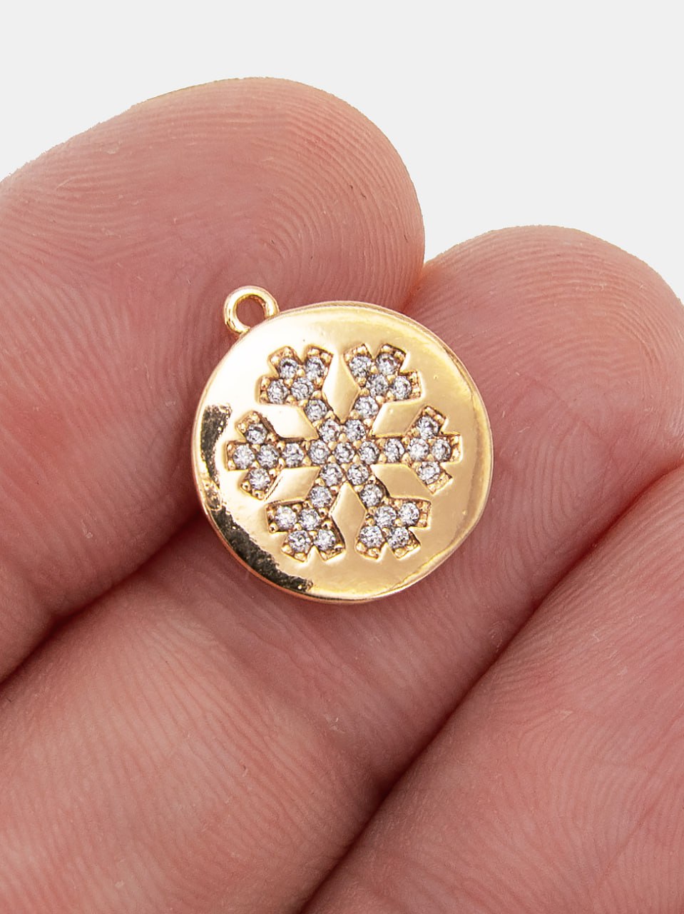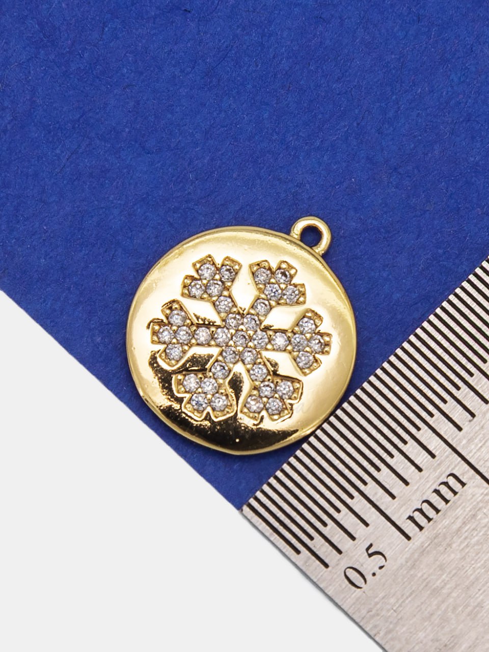 Подвеска снежинка с фианитами, 12мм, позолота, А133