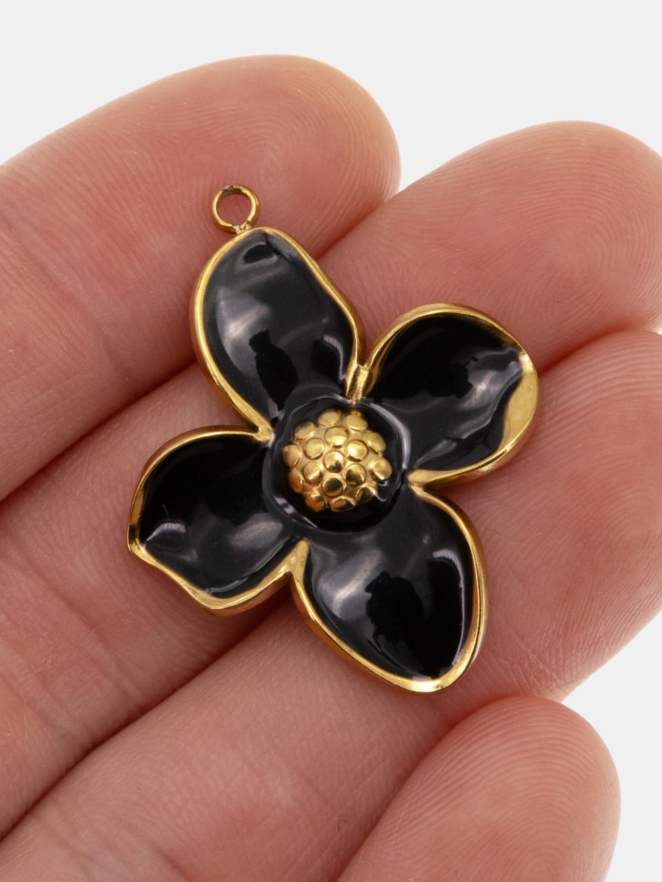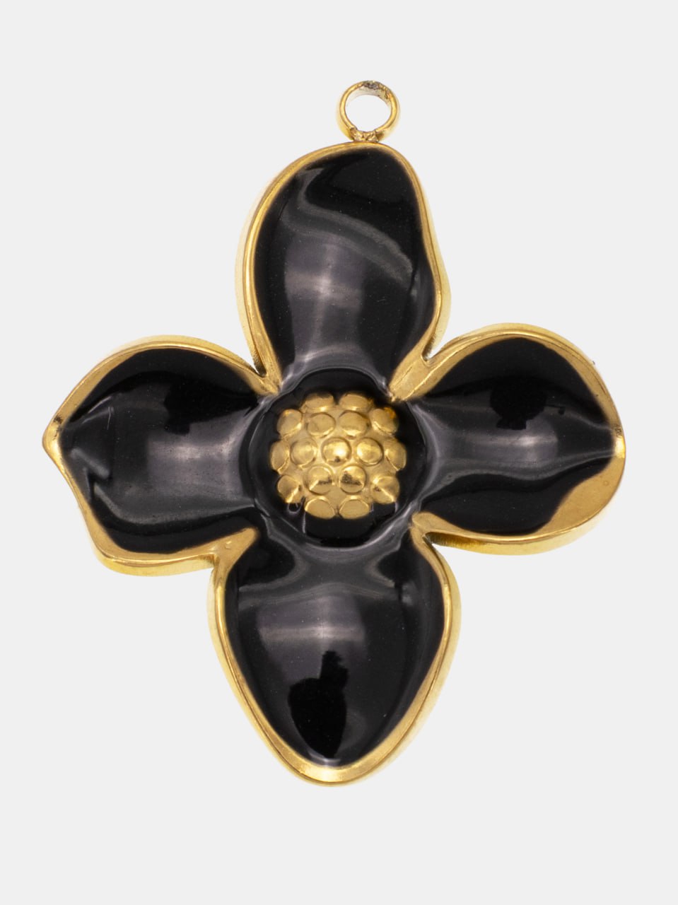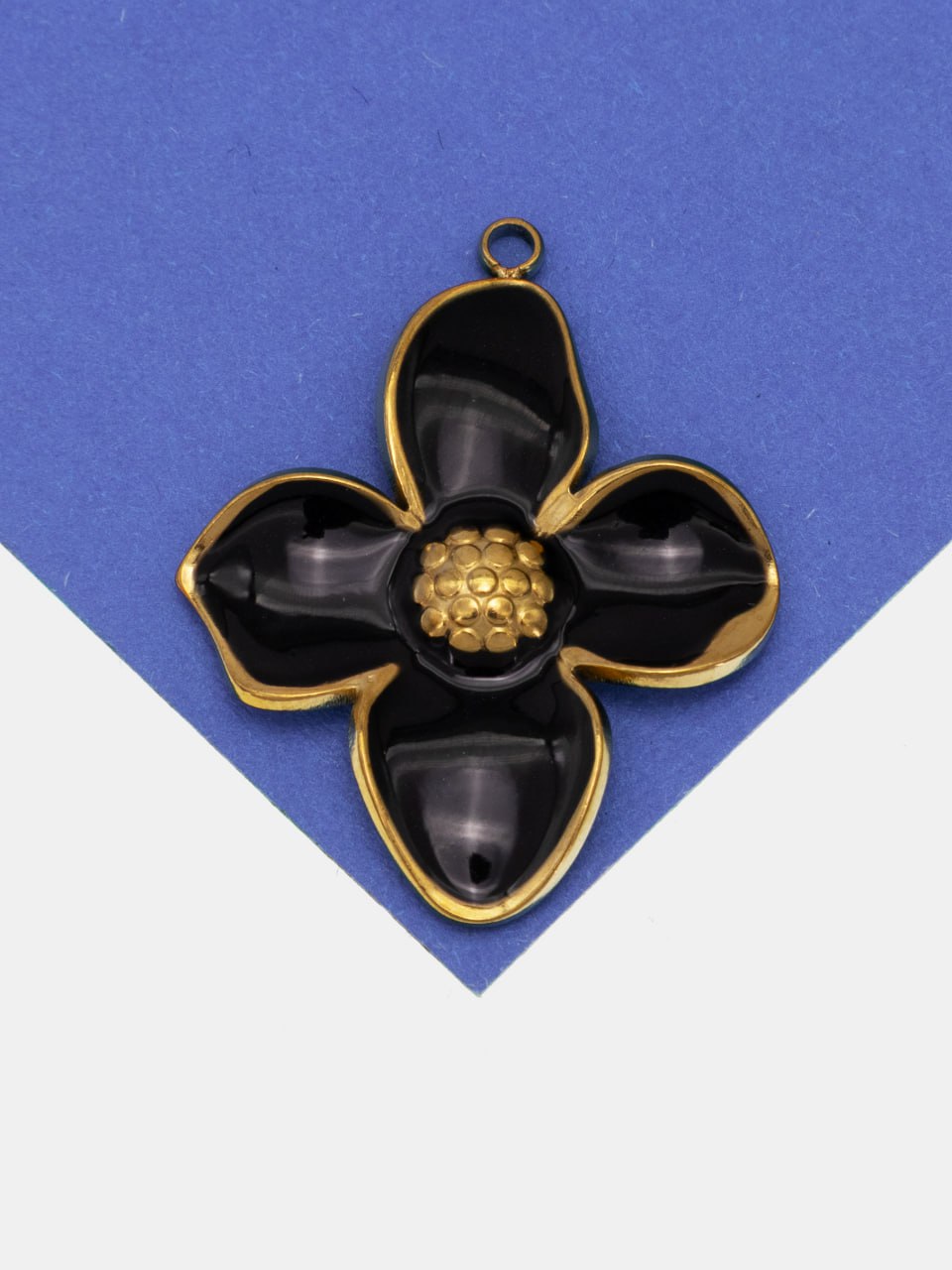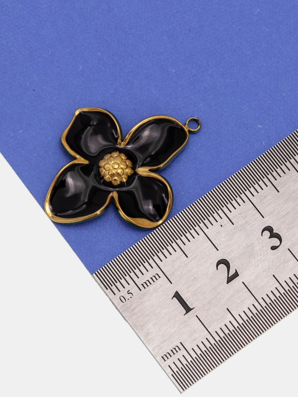 -Подвеска цветок, черная эмаль, сталь, позолота, Ш507