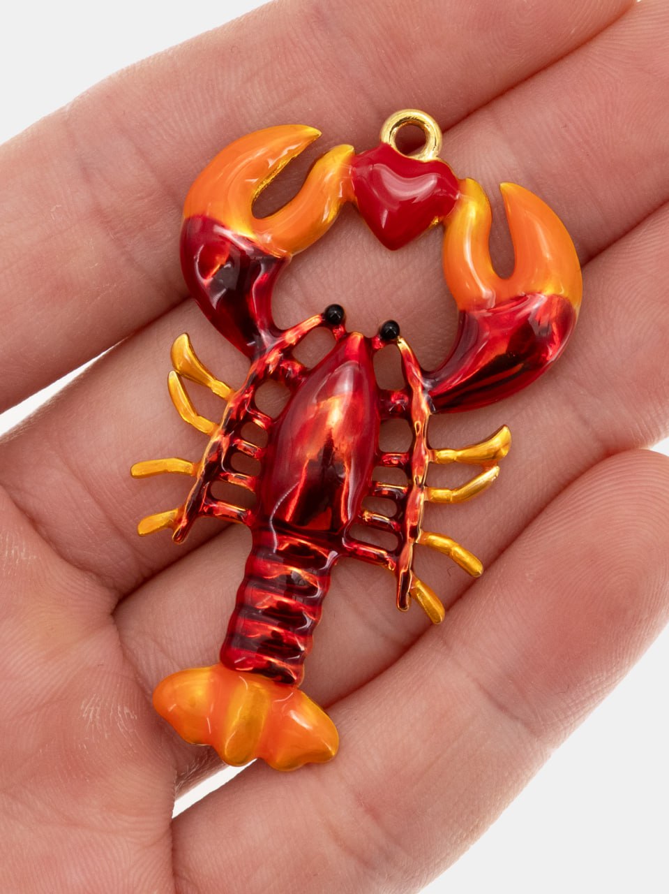 Подвеска лобстер, красная эмаль, сталь, позолота, Ш508