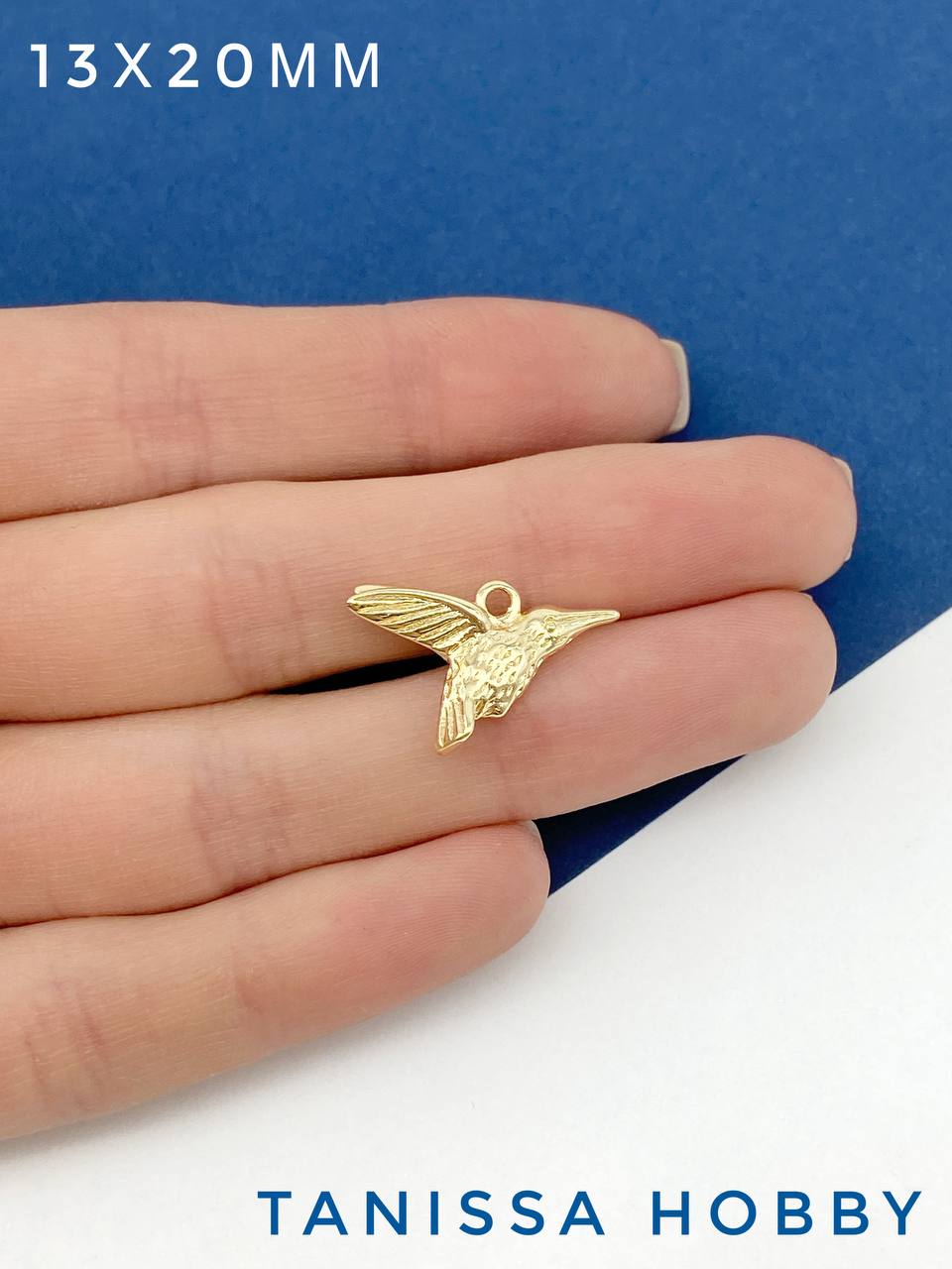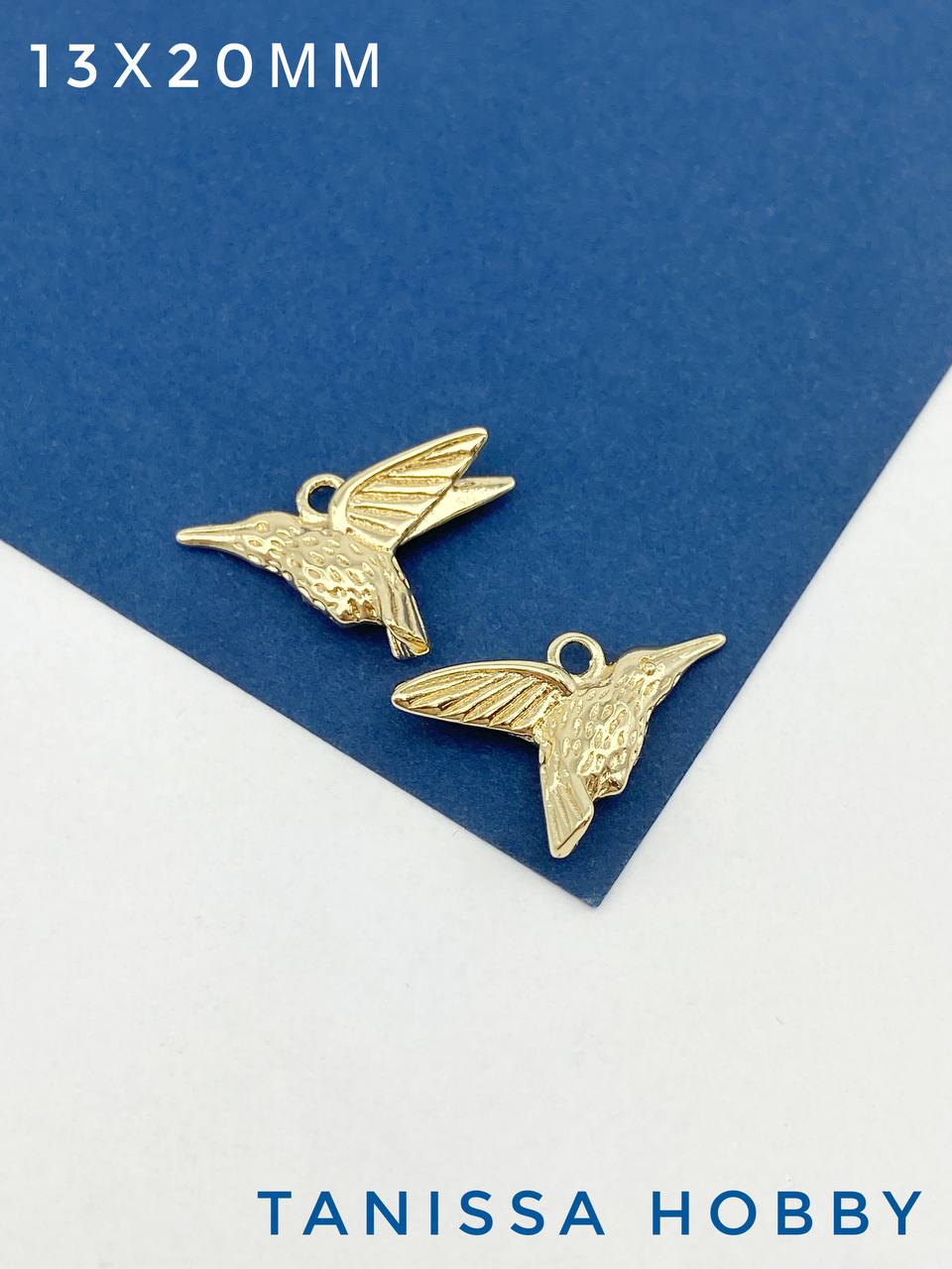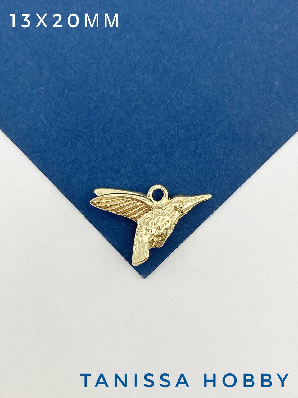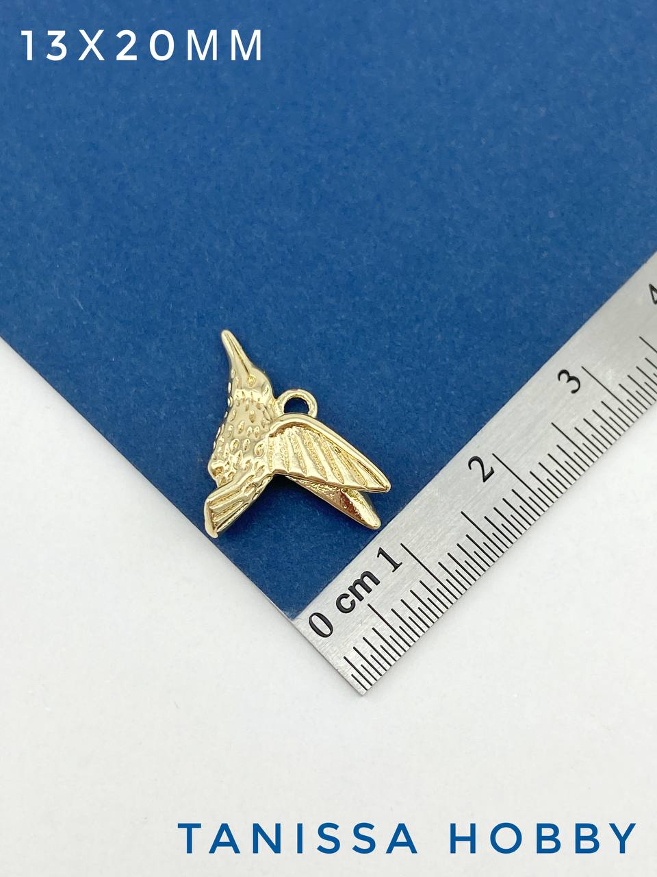 Подвеска колибри, птица 13х20 мм, позолота, А011