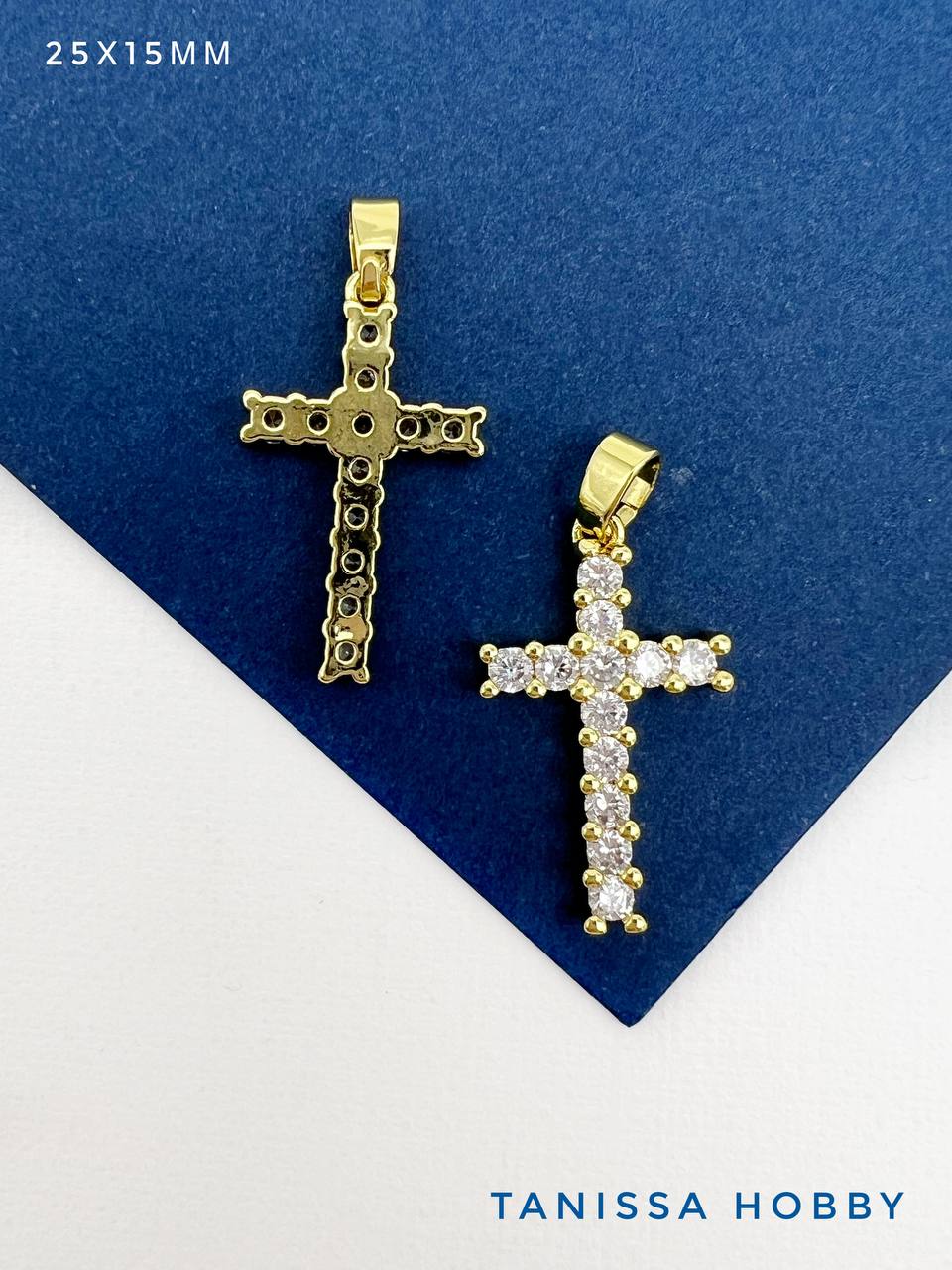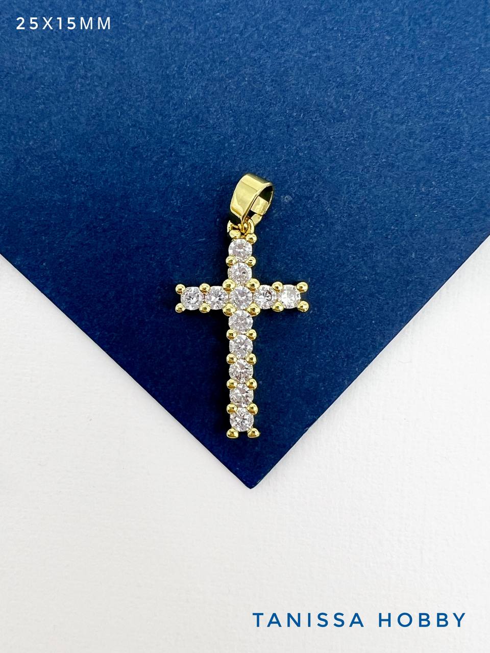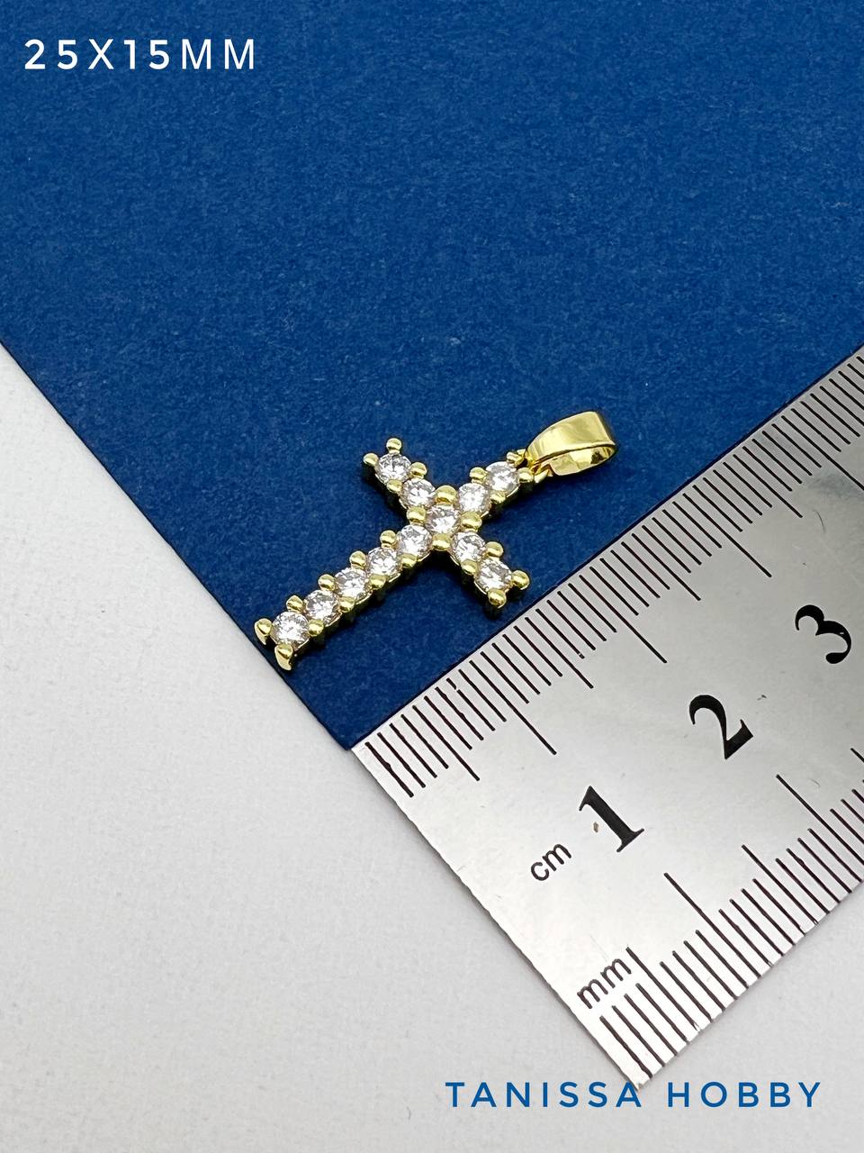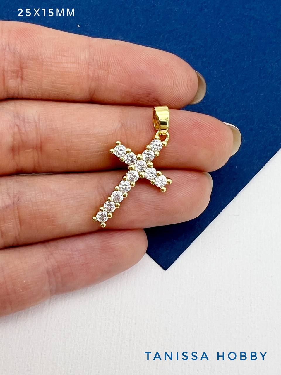 Подвеска крест с фианитами 25х15мм, позолота, Д311