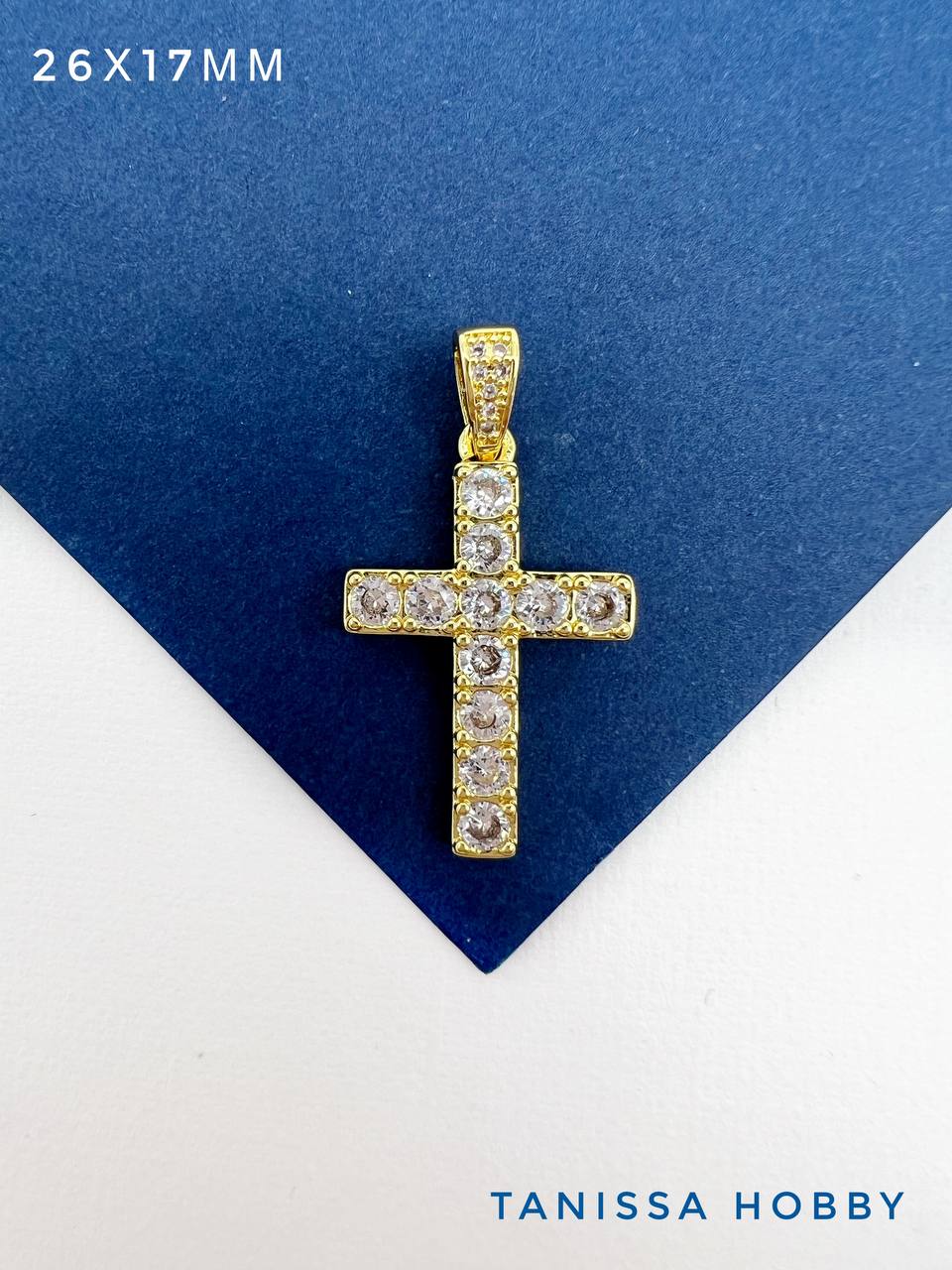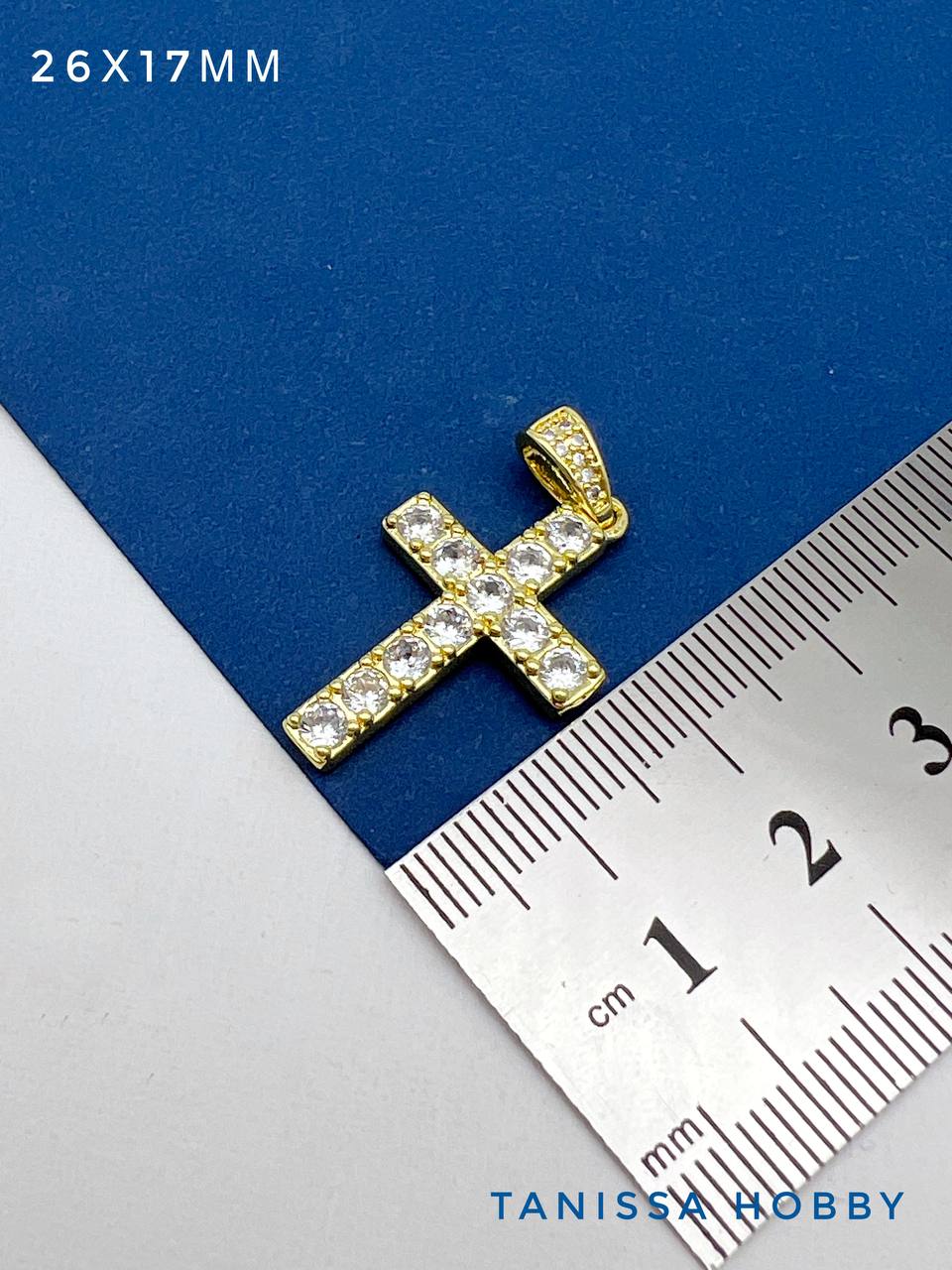 Подвеска крест с фианитами, 26х17мм, позолота, Д318
