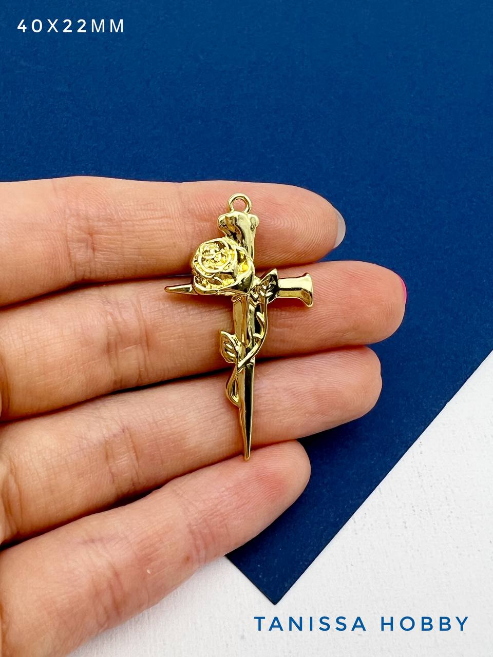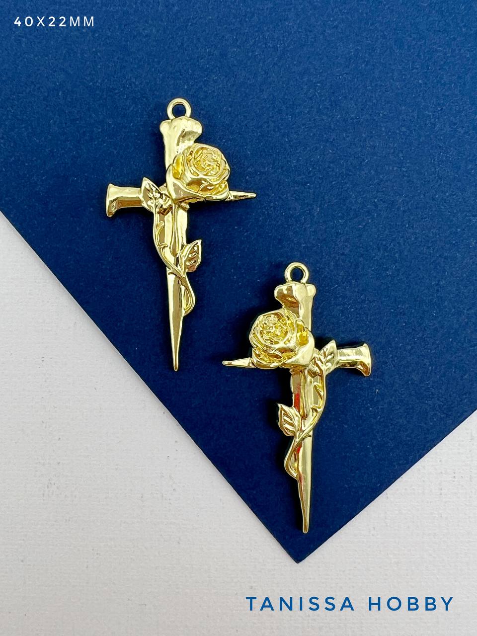 Подвеска готика крест и роза, позолота, С232